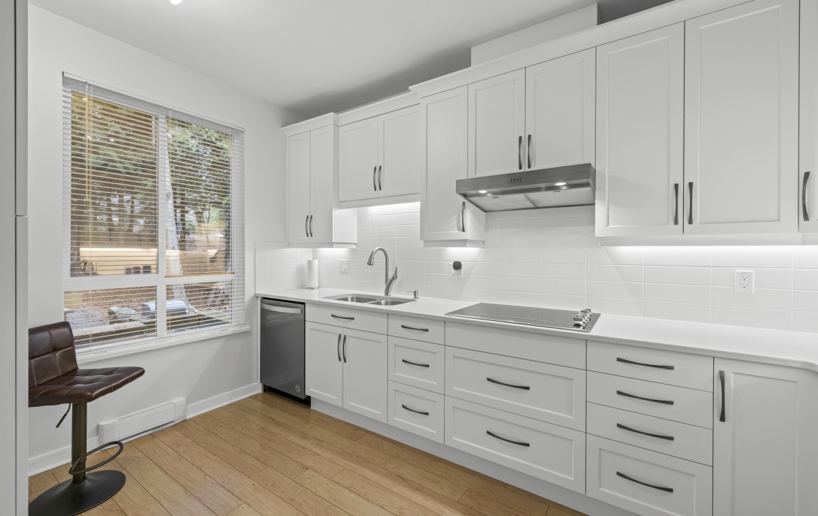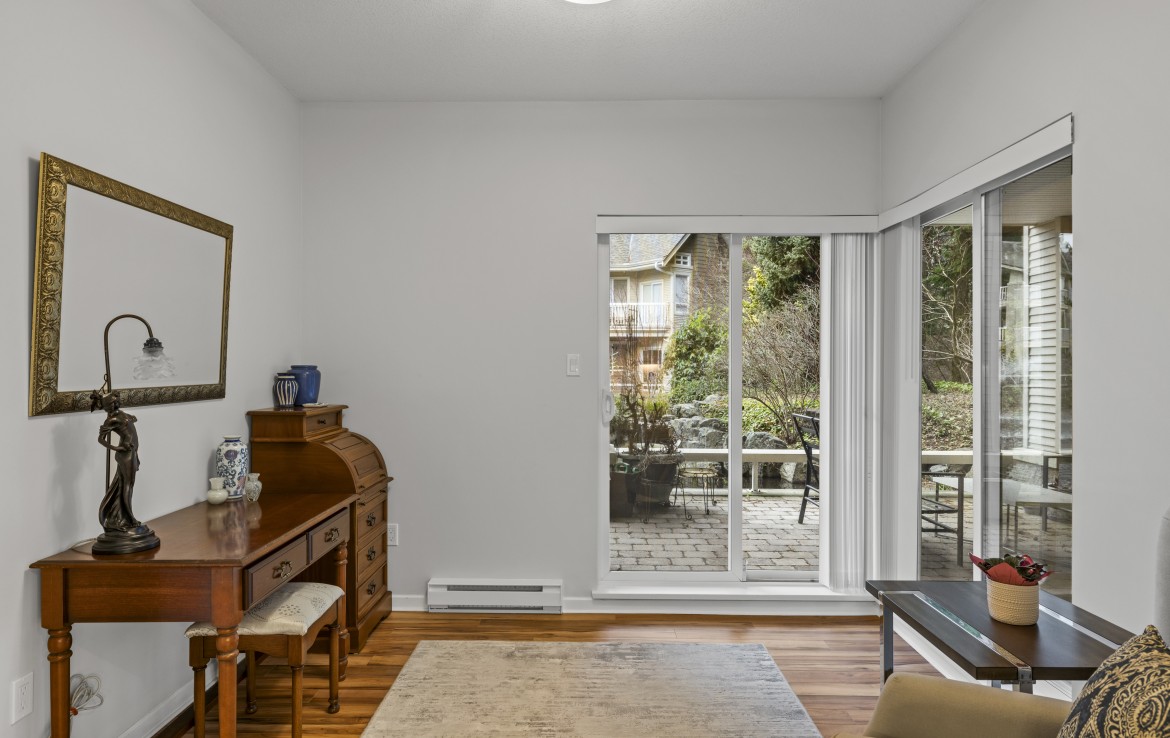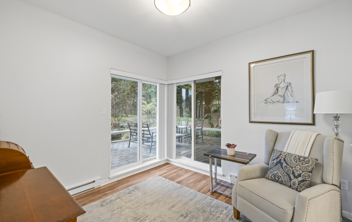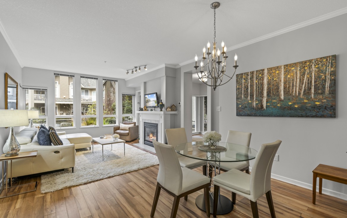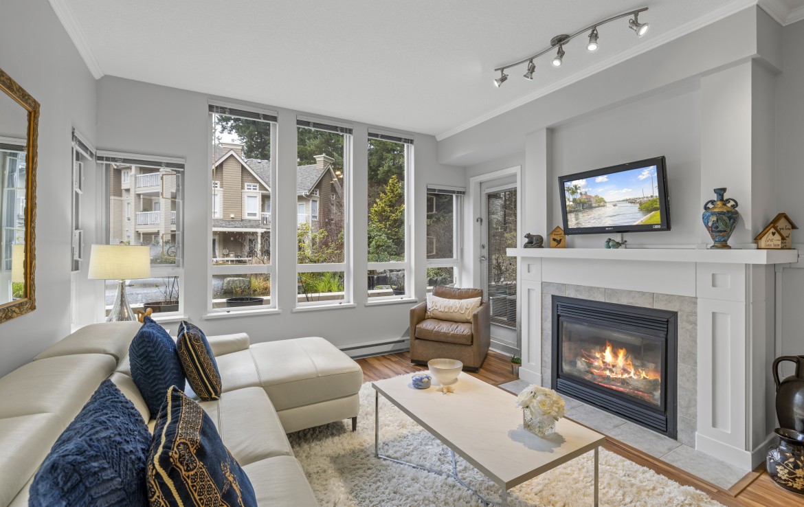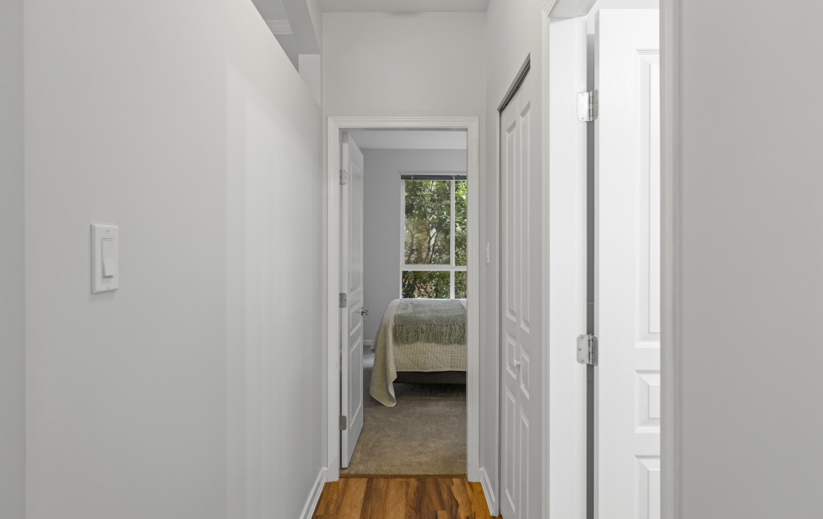 The primary bedroom also enjoys pond views and includes a walk-in closet and updated three-piece ensuite. A second bedroom and additional three-piece bathroom provide flexibility. Full-size in-unit laundry, a storage room, and two separate storage lockers add convenience. Residents enjoy park-like grounds, a clubhouse, workshop, underground parking, gas included, and one dog up to 10 kg or one cat allowed.