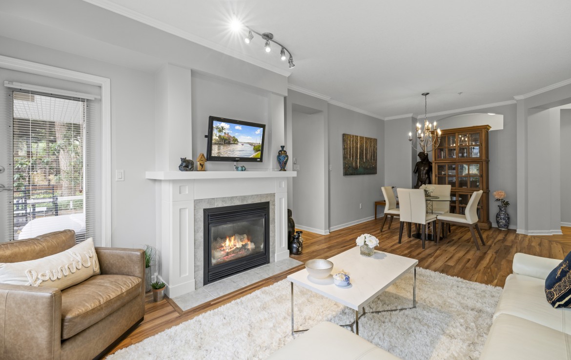 This beautifully updated home offers a rare and tranquil setting directly overlooking the serene pond. Enjoy the spacious, partly covered patio located right at the water’s edge. Inside, the fully renovated kitchen features abundant white cabinetry and stainless appliances including a wall oven and cooktop, with a family room conveniently located off the kitchen. The living room offers a gas fireplace and a wall of windows capturing calming pond views, with an adjoining dining room ideal for entertaining.