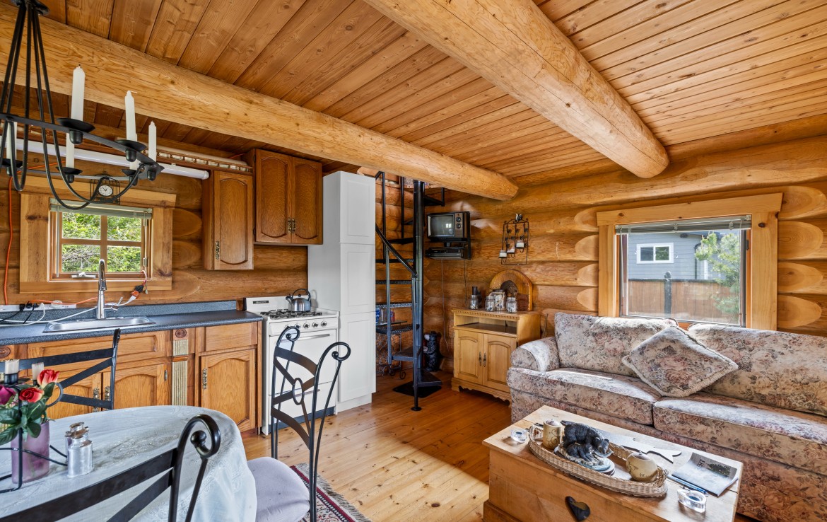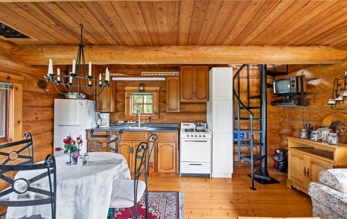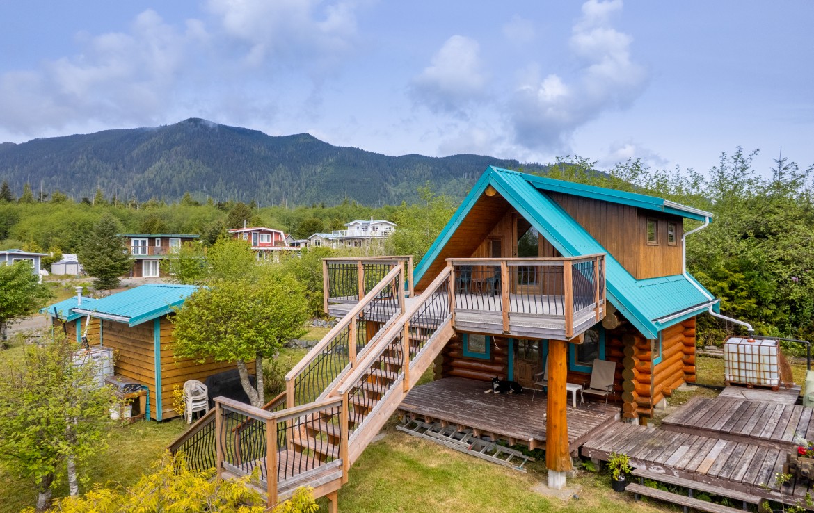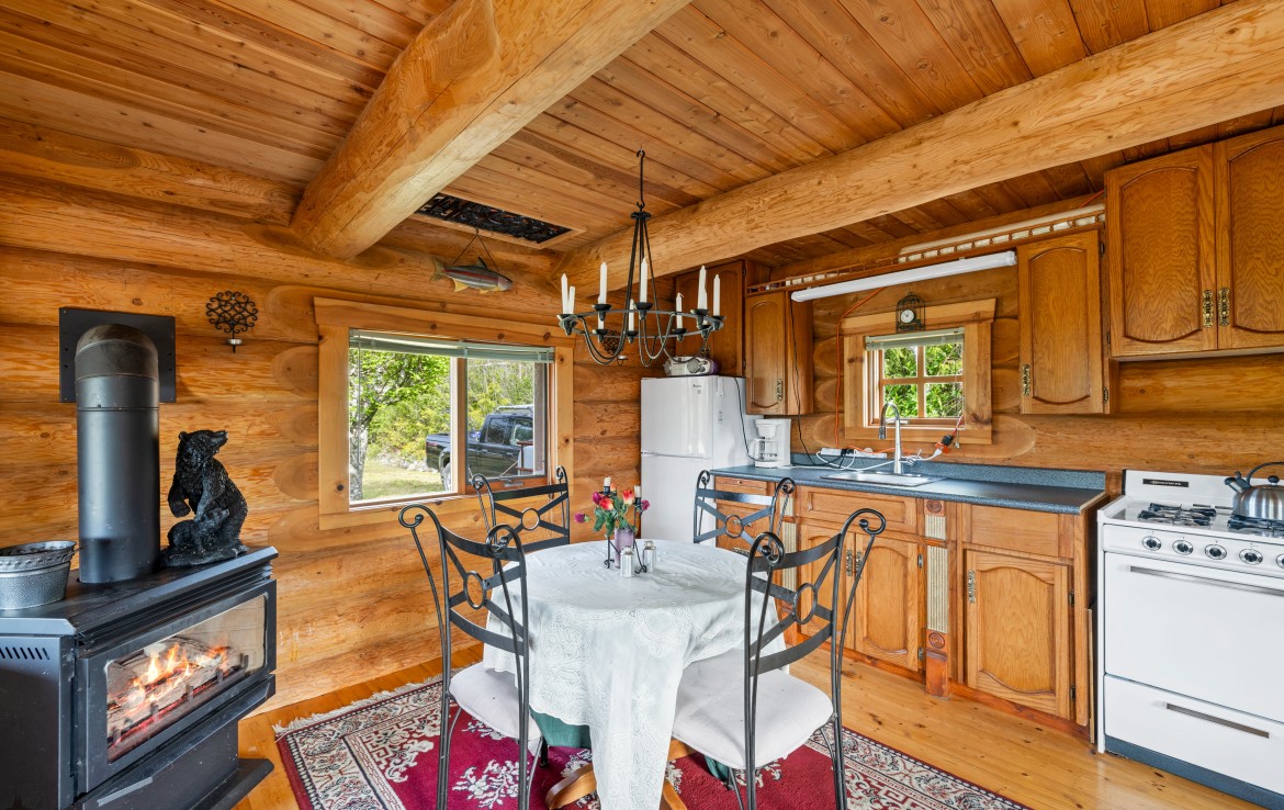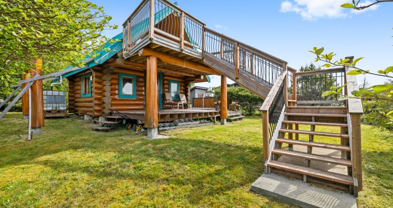 Escape to nature with this enchanting two-storey log cabin, perfectly situated in the village of Salmon Beach. Designed for outdoor enthusiasts, this rustic retreat offers sweeping ocean views and is just a short walk to the boat launch and sandy beach—ideal for kayaking, fishing, and beachcombing. The cabin’s warm and inviting interior features a cozy propane fireplace and a spiral staircase leading to a loft-style bedroom. A separate three-piece bathhouse, complete with propane-fueled on-demand hot water, adds convenience while maintaining the authentic cabin experience. Enjoy your morning coffee or evening sunsets from the expansive upper view deck, or unwind on the covered lower deck after a day of adventure. Located just a short drive from Ucluelet, Tofino, and Pacific Rim National Park, this unique property offers the perfect balance of seclusion and access to world-class surfing, hiking, and dining. All data and measurements are approx and must be verified if fundamental.