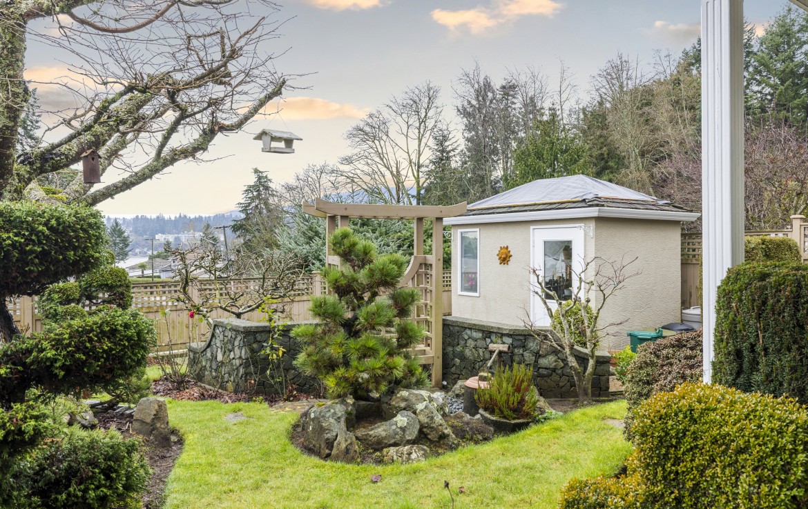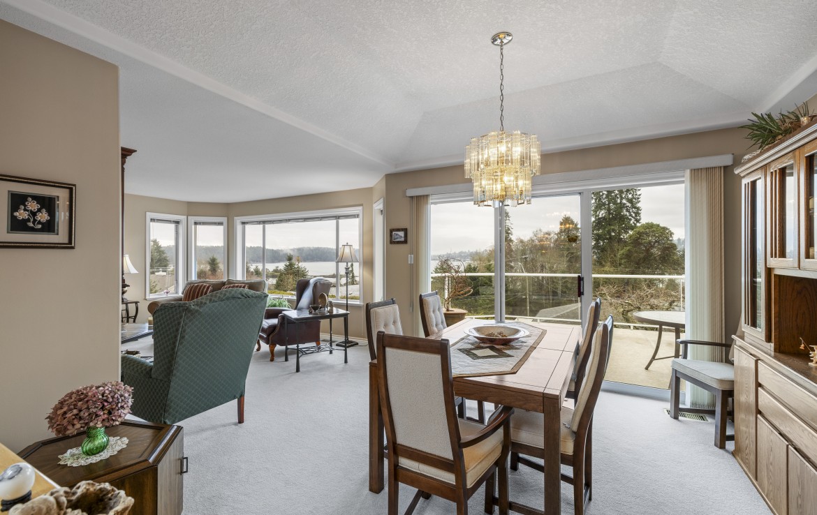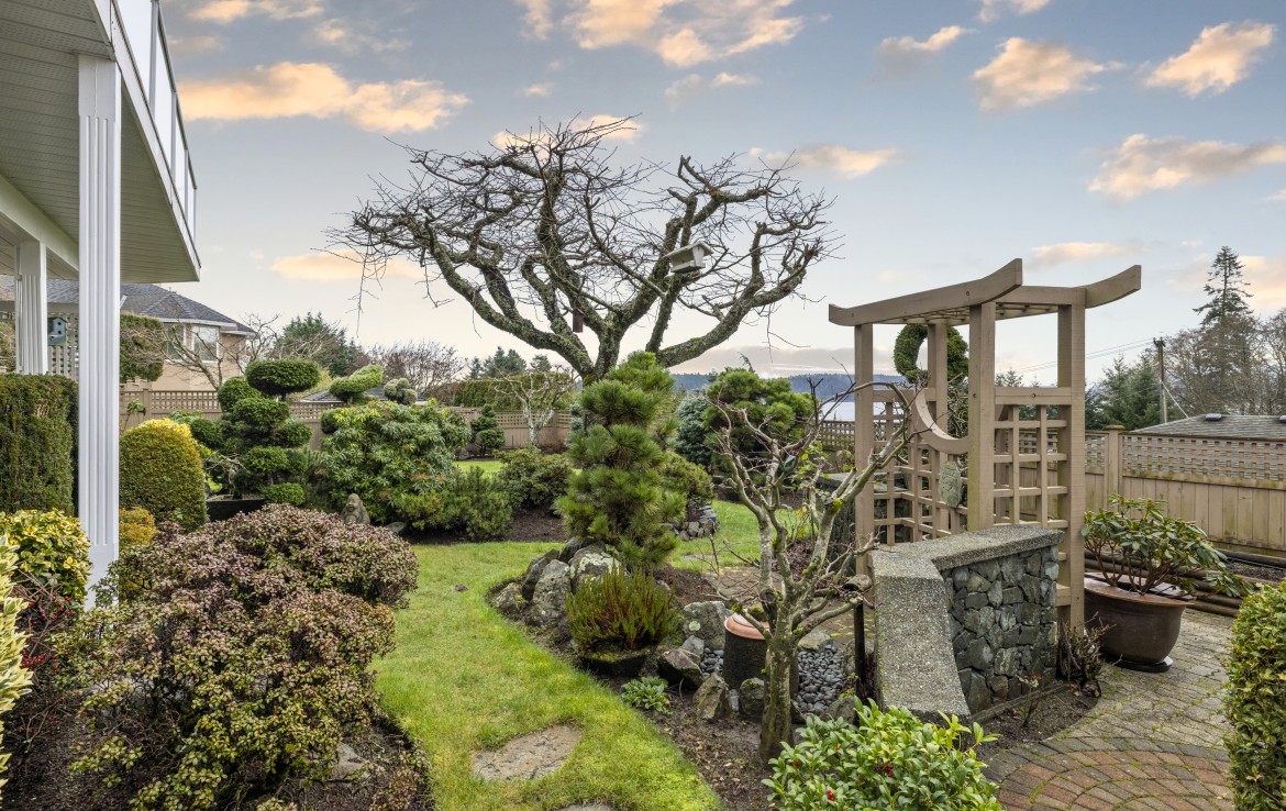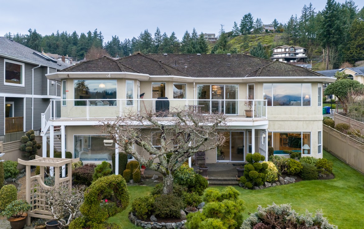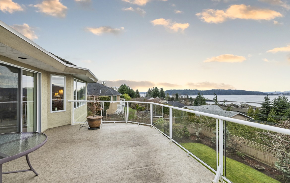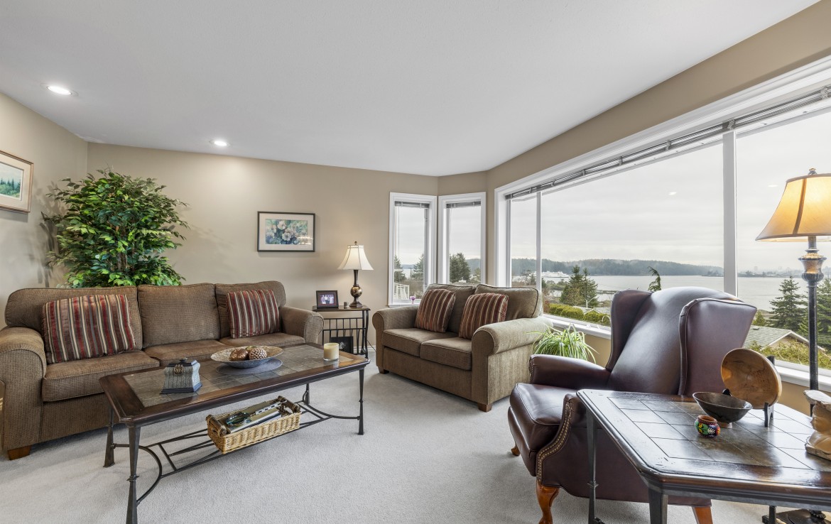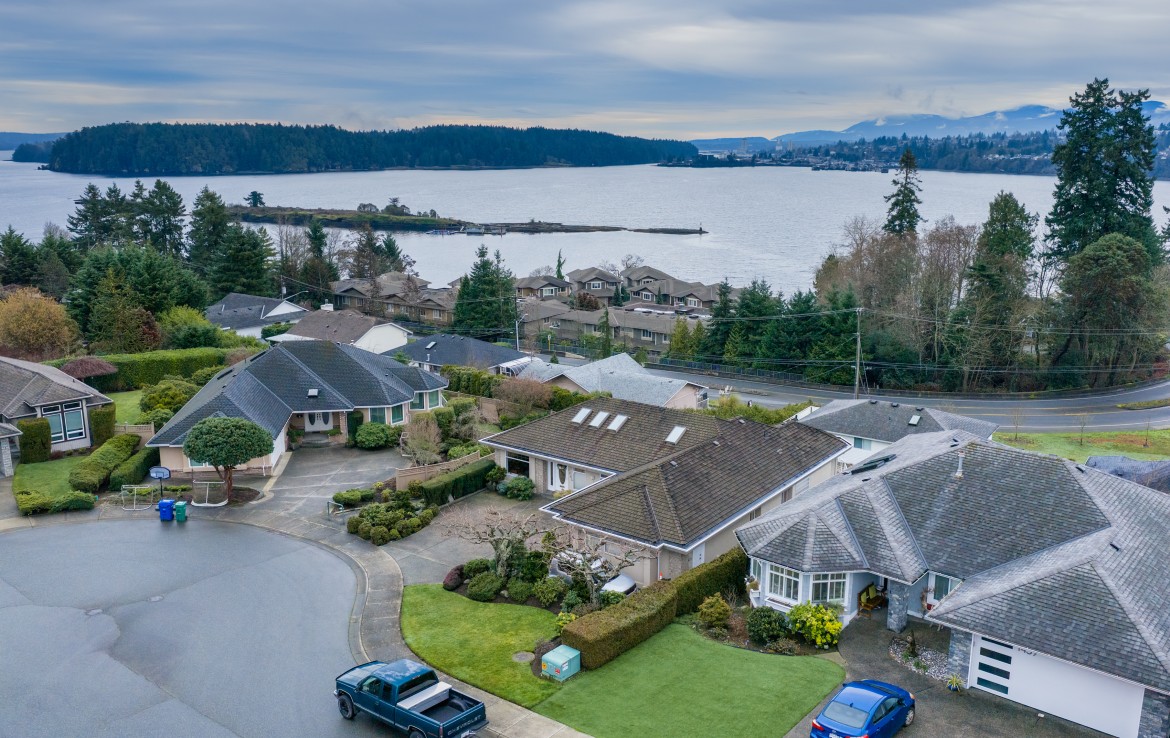 Tucked away on a desirable cul-de-sac, this immaculate one-owner home offers southern exposure and ocean views over Departure Bay. The back deck has stairs to a park-like backyard with covered patio, gardens and detached shed. The kitchen enjoys bay views and features a wall oven, eating bar, plus an adjoining nook and family room with gas fireplace. Thoughtfully designed to maximize views, the separate living and dining room enjoys sweeping vistas.