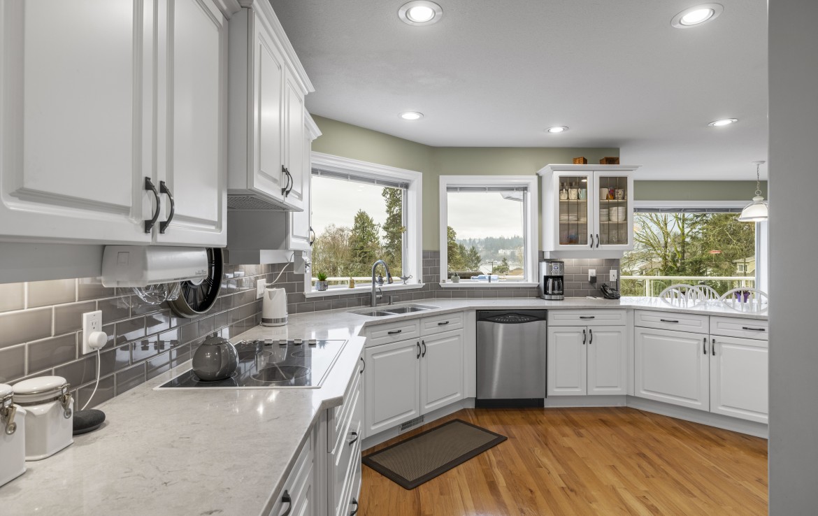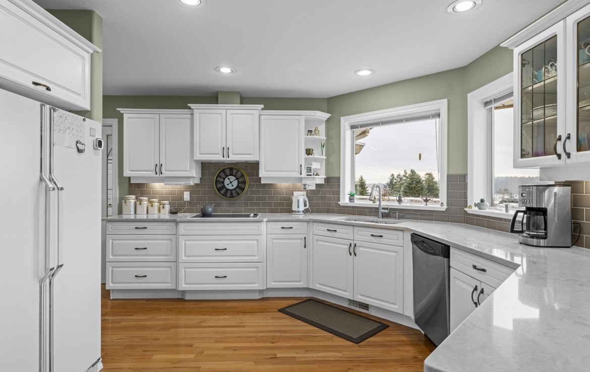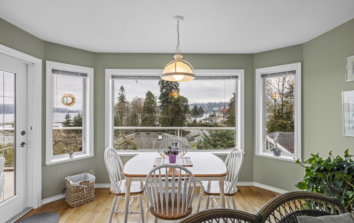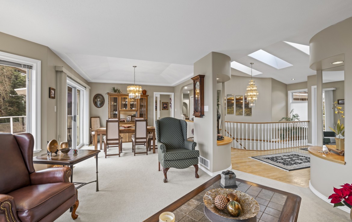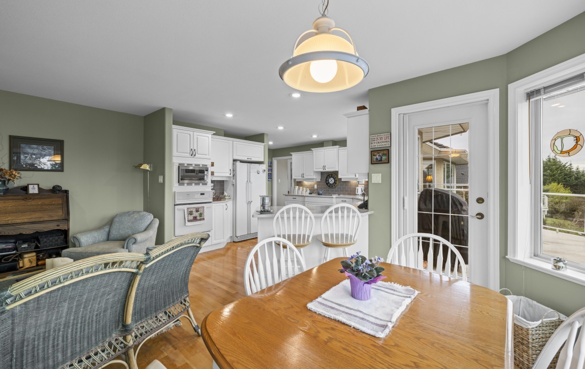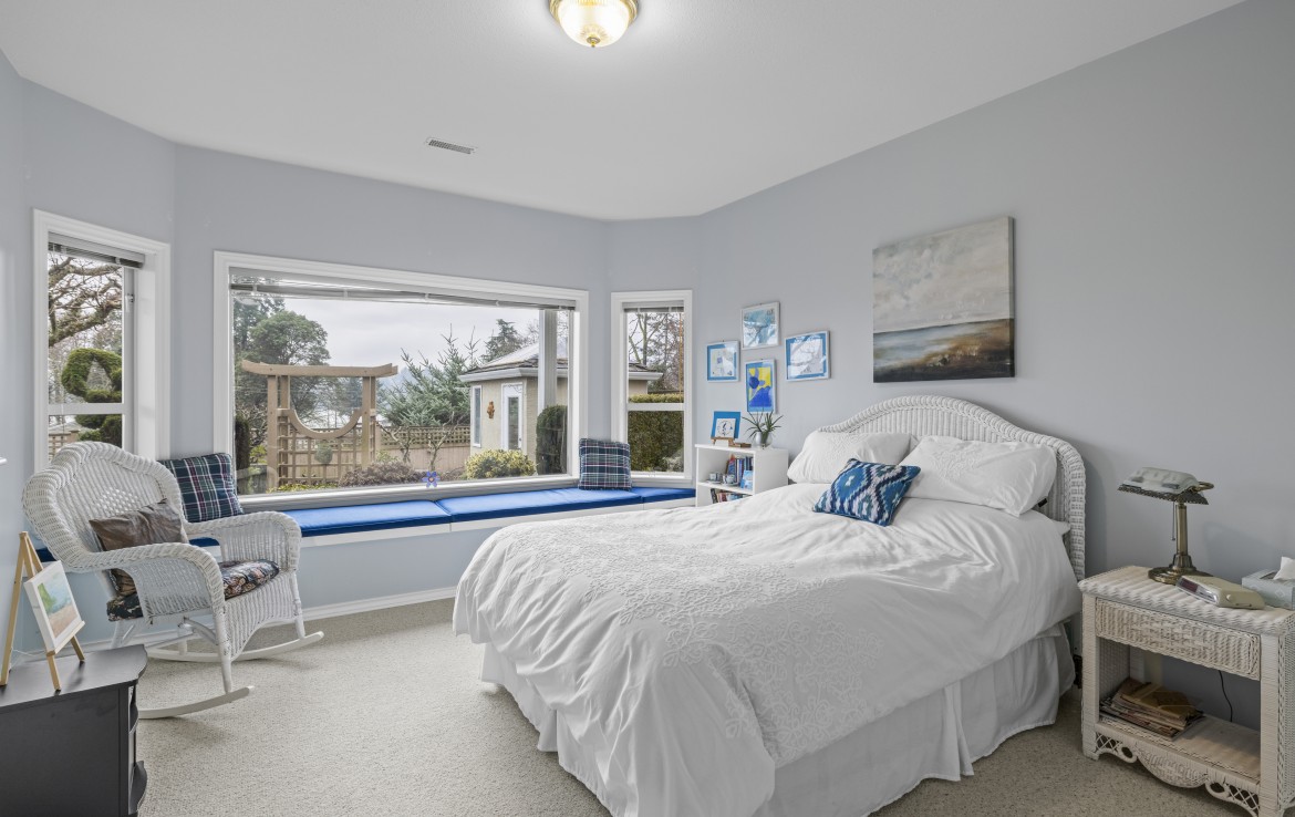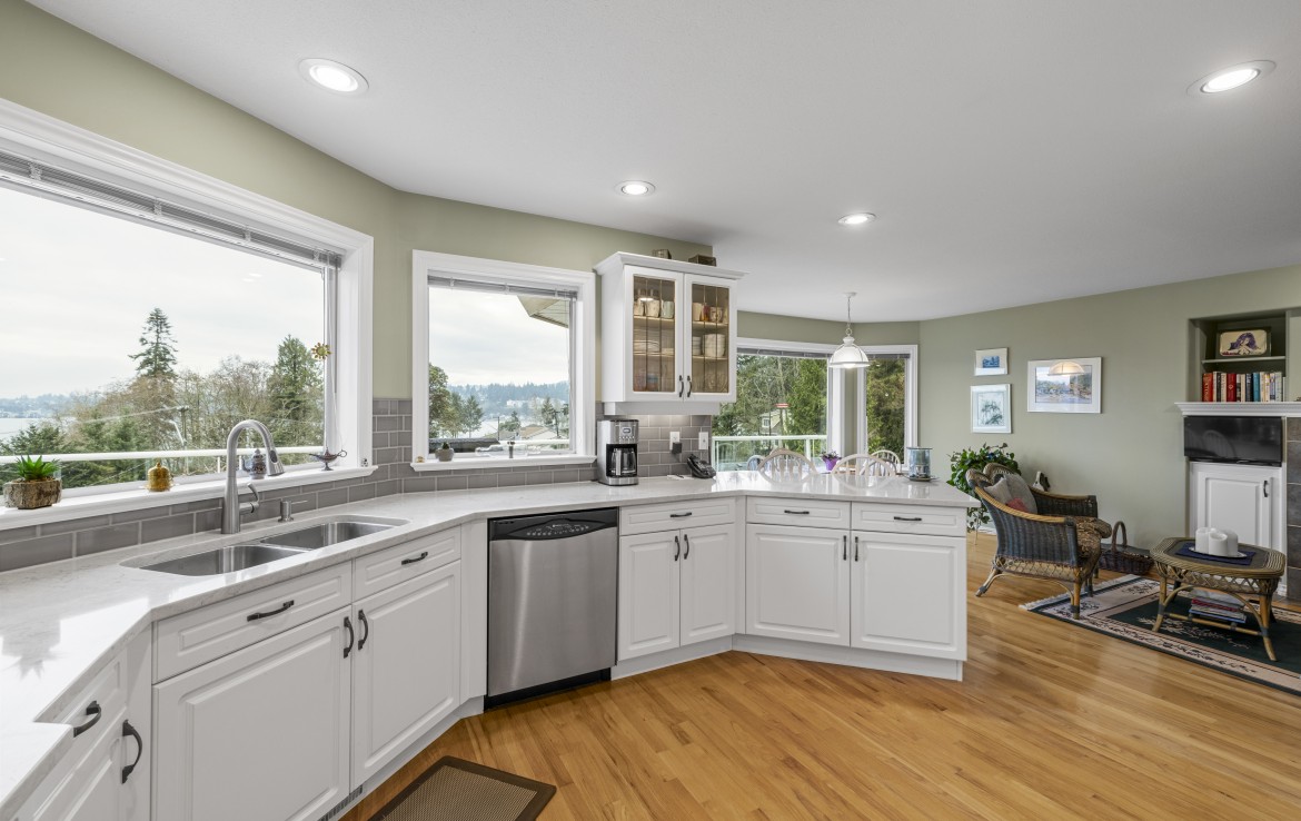 Tucked away on a desirable cul-de-sac, this immaculate one-owner home offers southern exposure and ocean views over Departure Bay. The back deck has stairs to a park-like backyard with covered patio, gardens and detached shed. The kitchen enjoys bay views and features a wall oven, eating bar, plus an adjoining nook and family room with gas fireplace. Thoughtfully designed to maximize views, the separate living and dining room enjoys sweeping vistas.