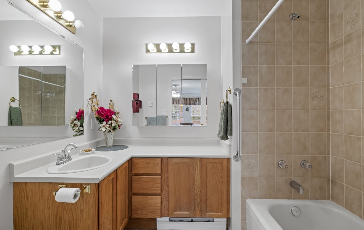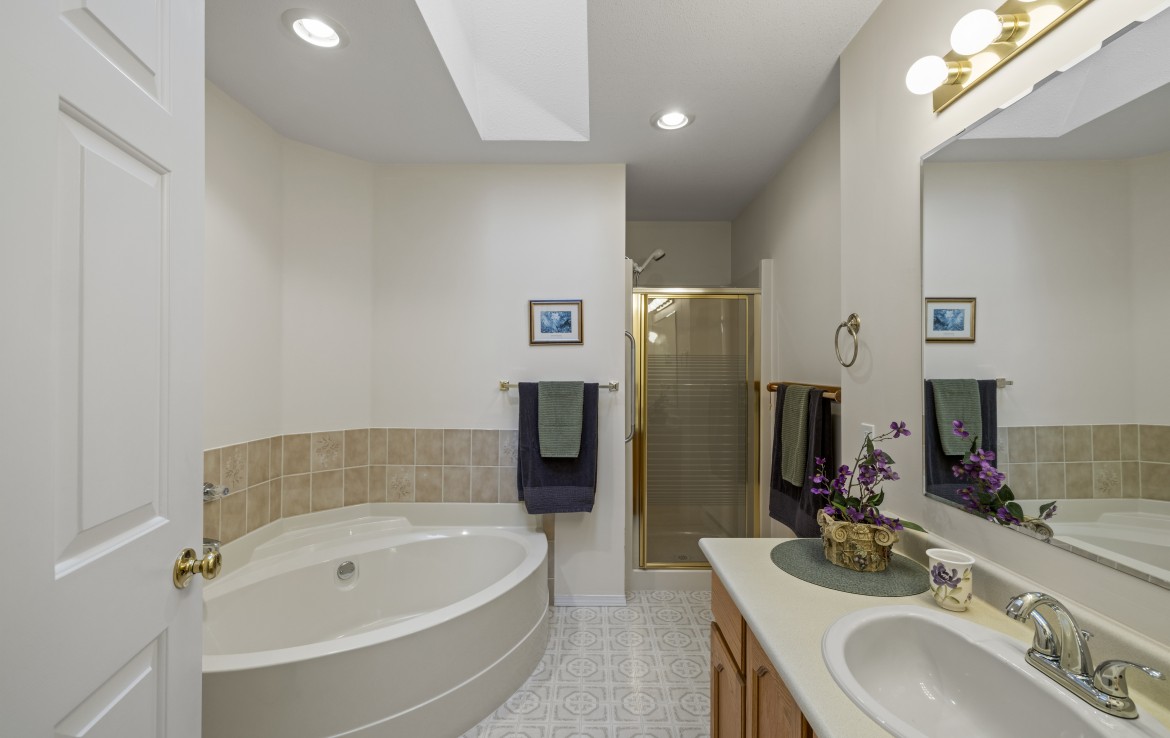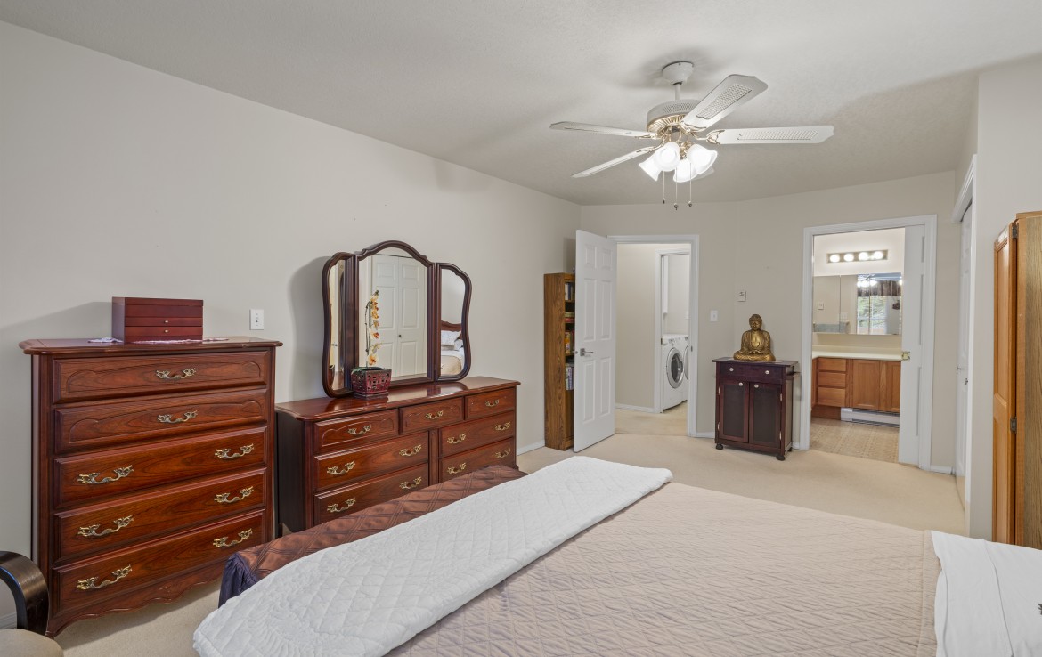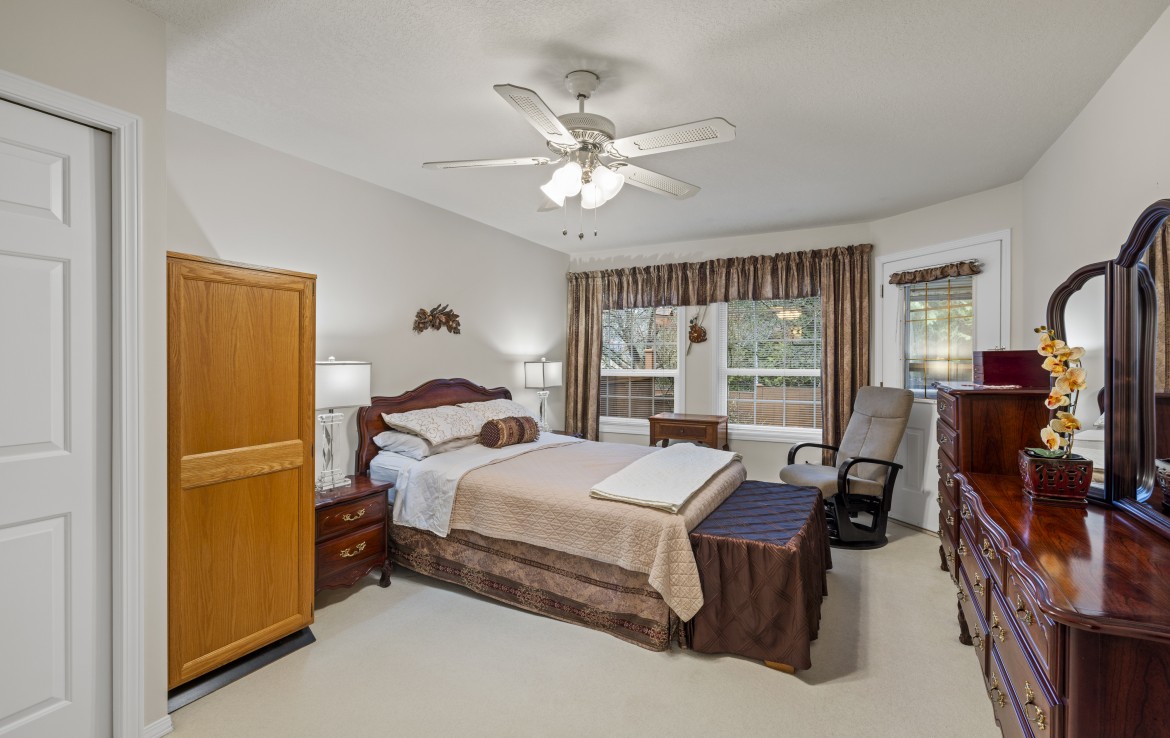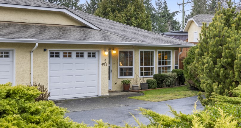 The generous primary bedroom includes a four-piece ensuite and direct patio access. A second bedroom and a four-piece main bathroom with an oversized soaker tub provide comfortable accommodation for guests or family. Additional features include in-unit laundry and an attached garage. The complex that allows one small pet up to 22 lbs. A fantastic opportunity for low-maintenance living in a sought-after location.