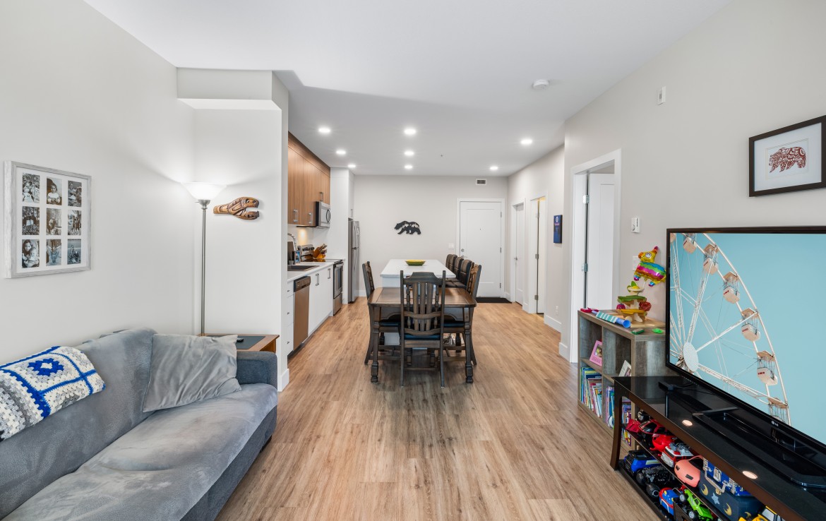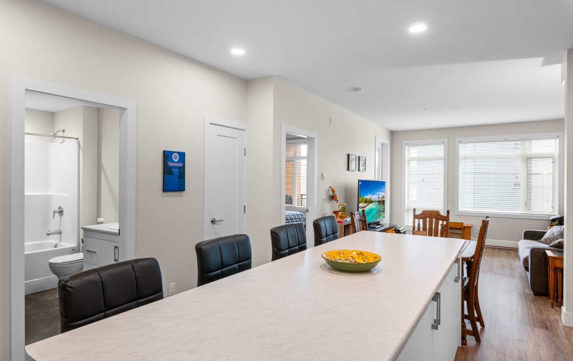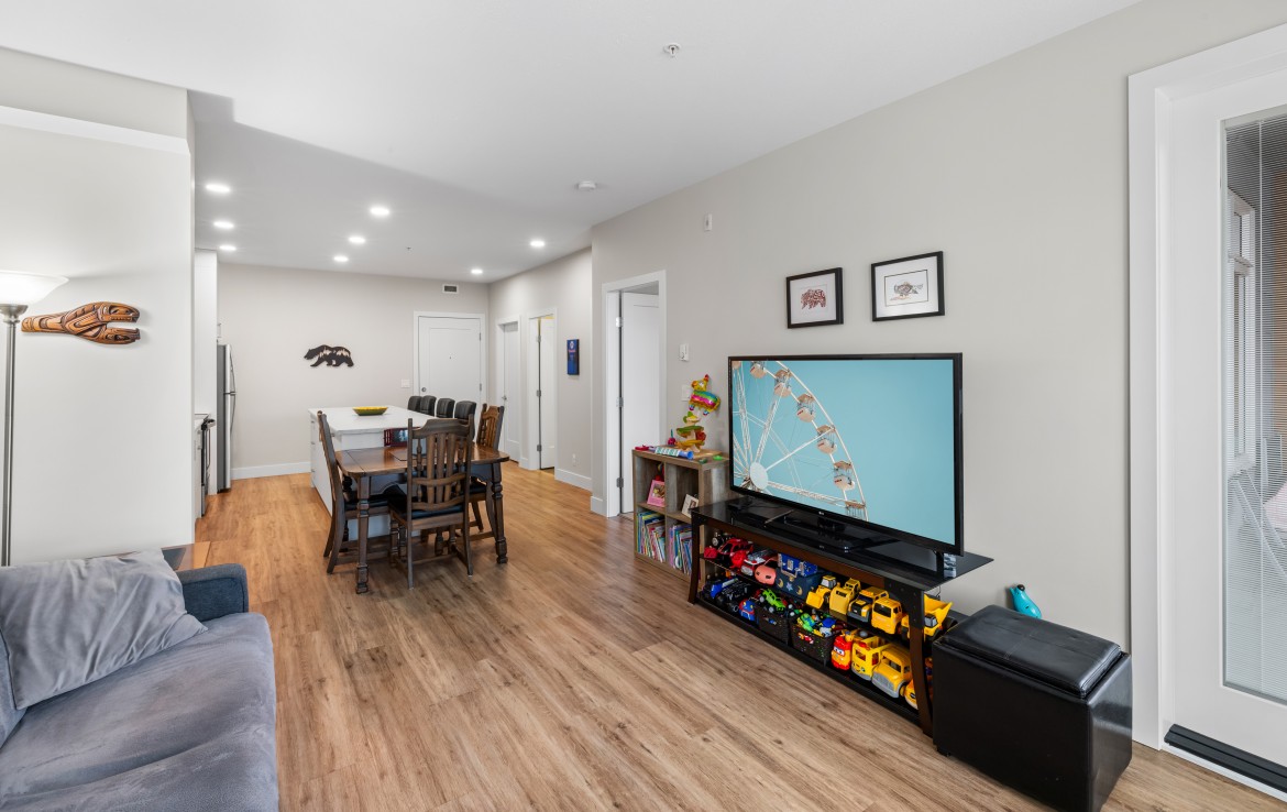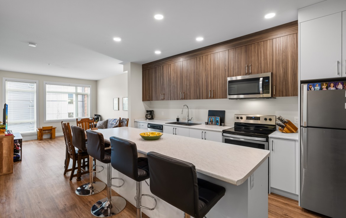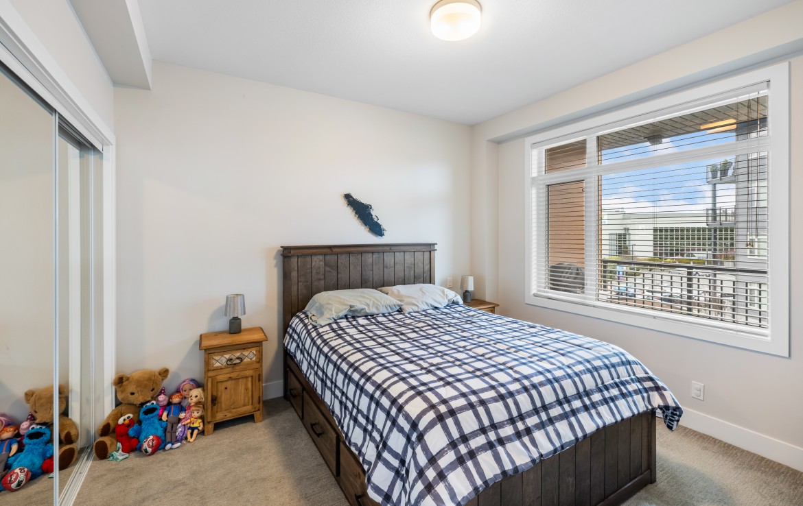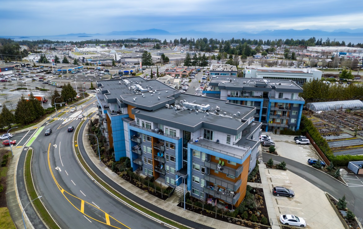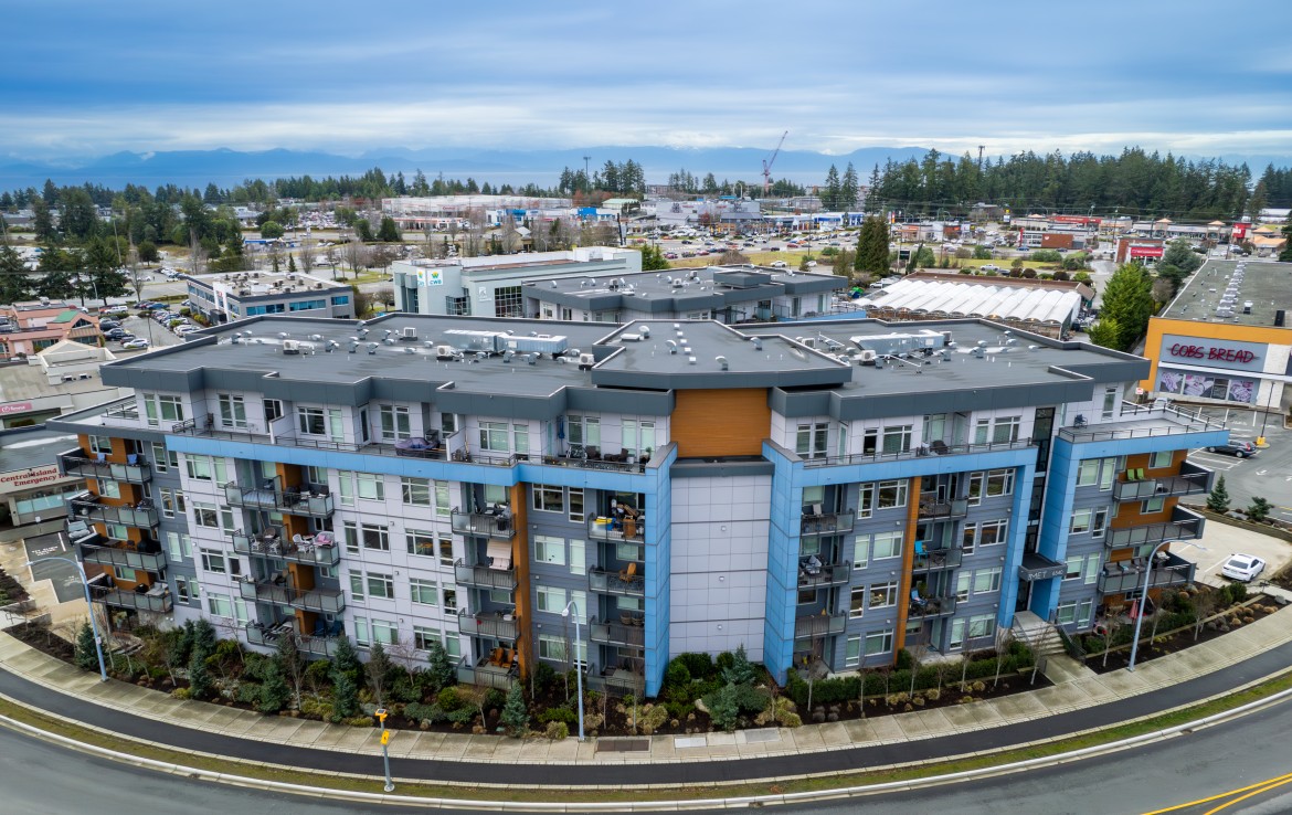 Welcome to this one bedroom condo in one of North Nanaimo’s newest buildings ‘The Met’. This unit is situated within walking distance of all amenities, Woodgrove Mall, and many great restaurants. The kitchen features stylish two-tone cabinetry, large island with eating bar, and four stainless appliances. The open concept living and dining area offers large windows, plenty of natural light, and access to the covered balcony.