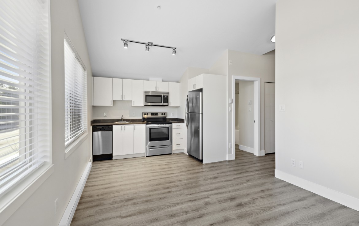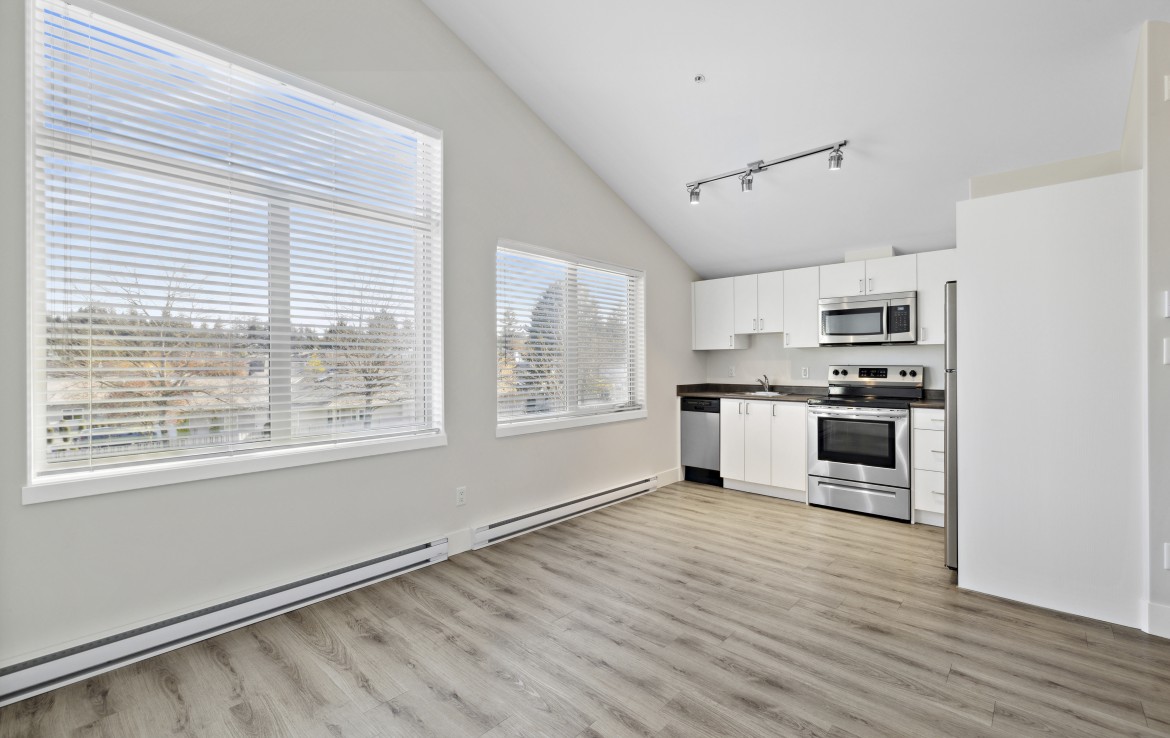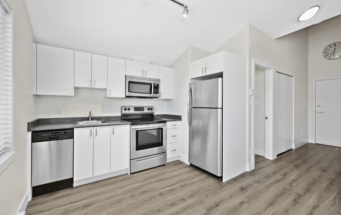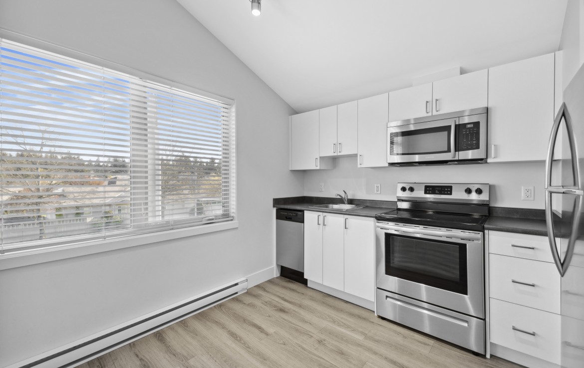 Welcome to this stylish one-bedroom condo, ideally located just steps from a wide range of amenities. This bright and airy unit features vaulted ceilings. The kitchen is equipped with four stainless steel appliances, while the four-piece bathroom conveniently includes a stacking washer and dryer. The complex is pet-friendly, allowing one dog or cat. Situated near Nanaimo North Town Centre, this fantastic location provides easy access to shopping, dining, and transit options. For more information, see the 3D tour, video and floor plan. All data and measurements are approx. and must be verified if fundamental.