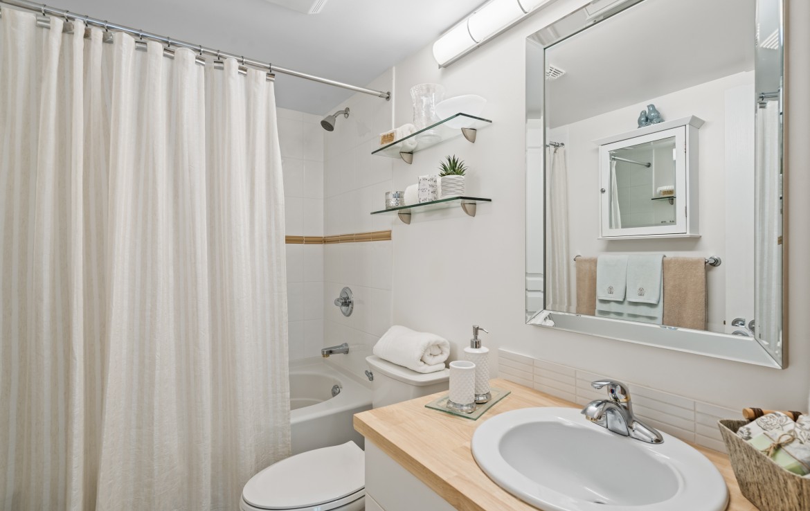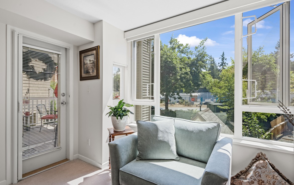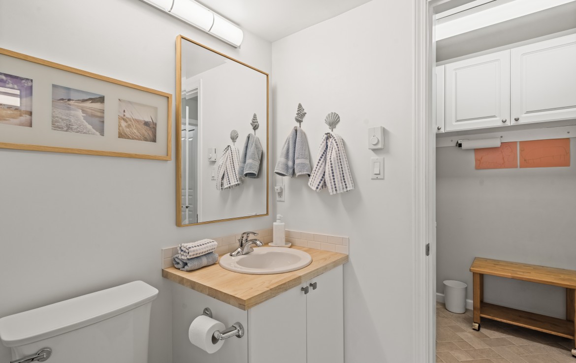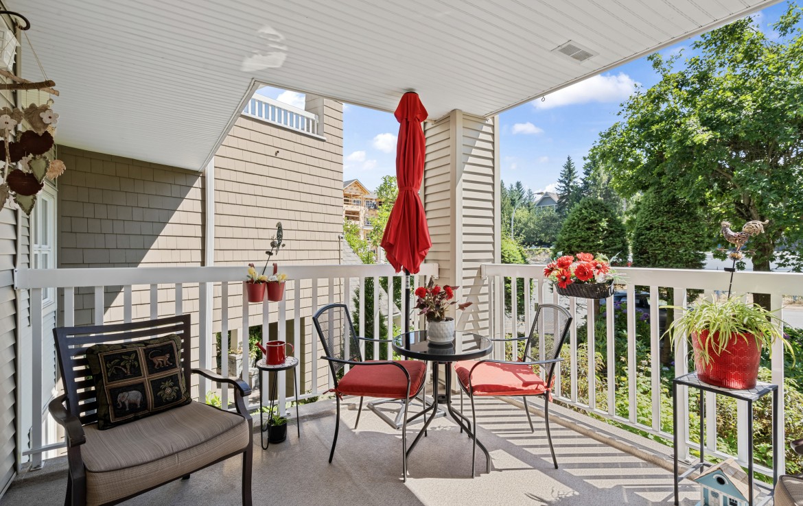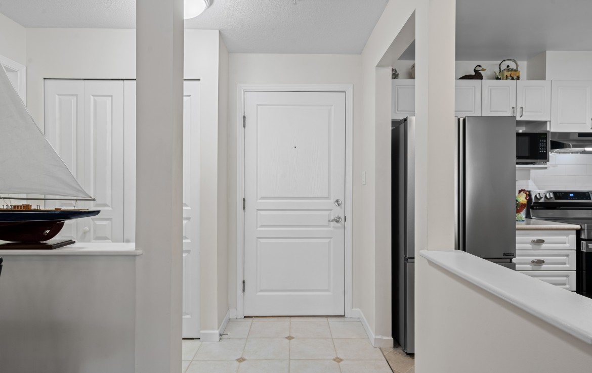 The primary bedroom offers a sliding door to the deck, dual closets and a four-piece ensuite. The second bedroom has access to the main three-piece bathroom. There is also an in-unit laundry room with storage and two separate storage lockers.