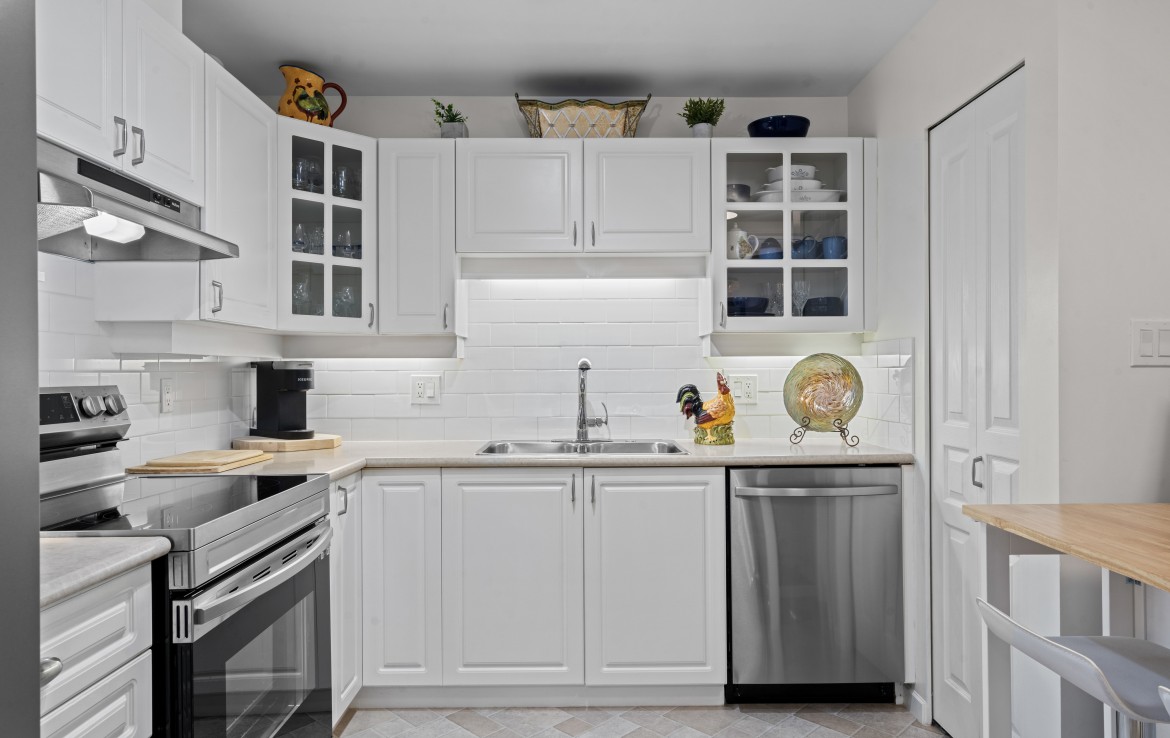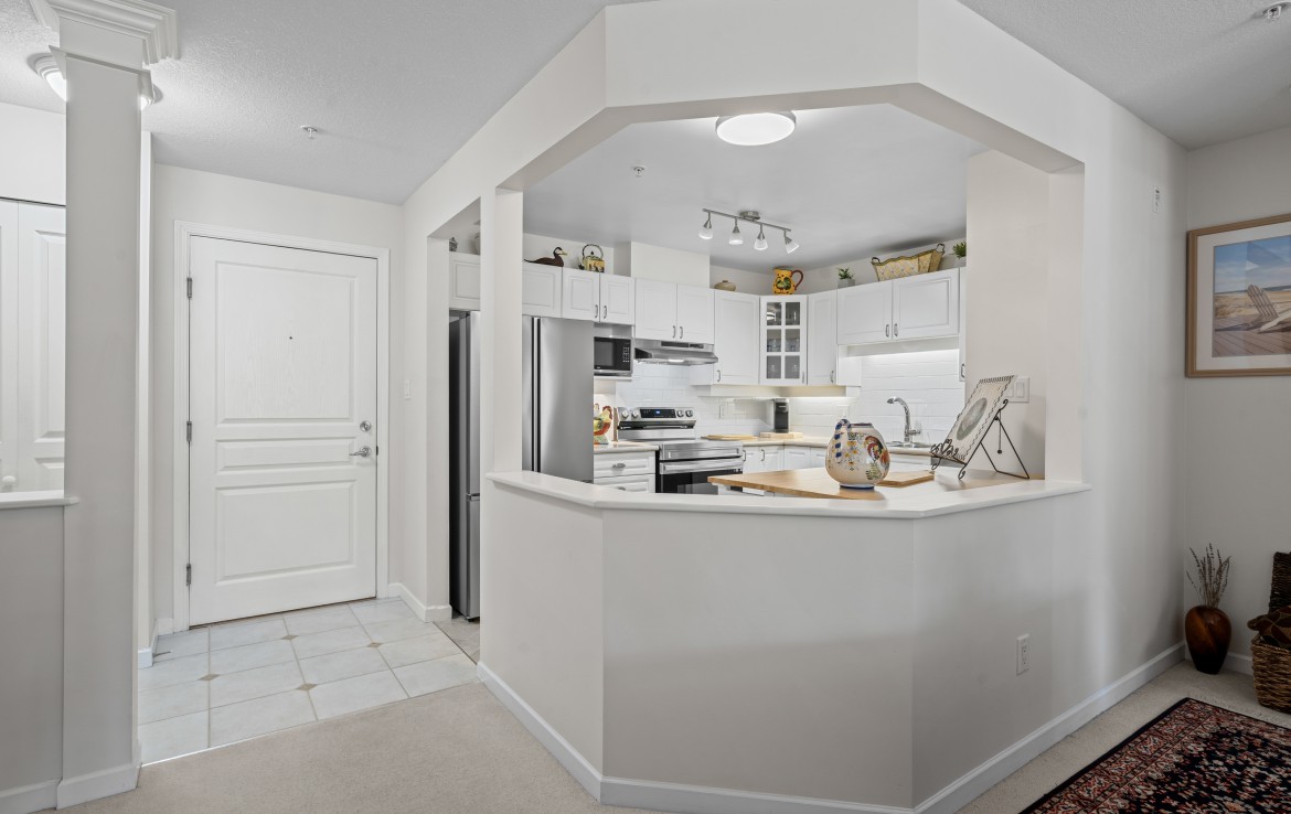 Beautiful, park-like grounds and a clubhouse with guest suites, billiard room and gym. The building also includes a workshop, car wash station, and underground parking. Gas is included and one dog up to 10 kg or one cat is allowed. Enjoy peaceful living and amenities within walking distance.