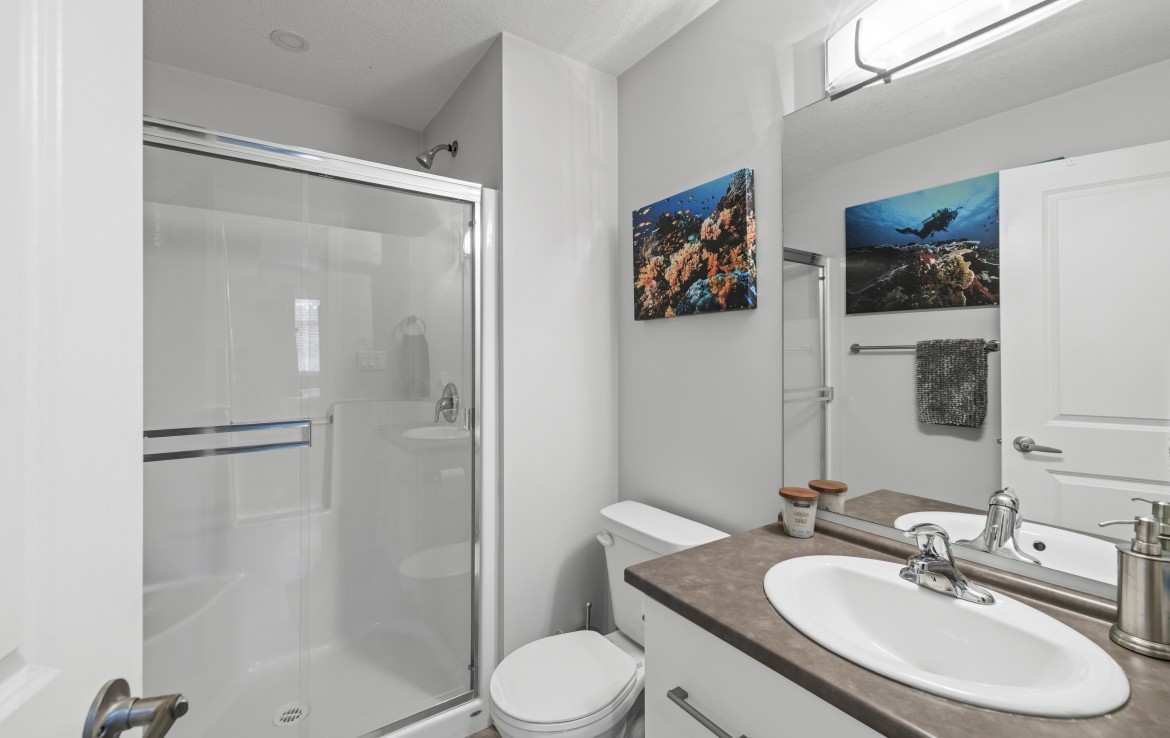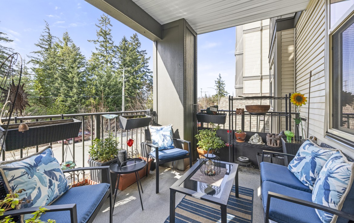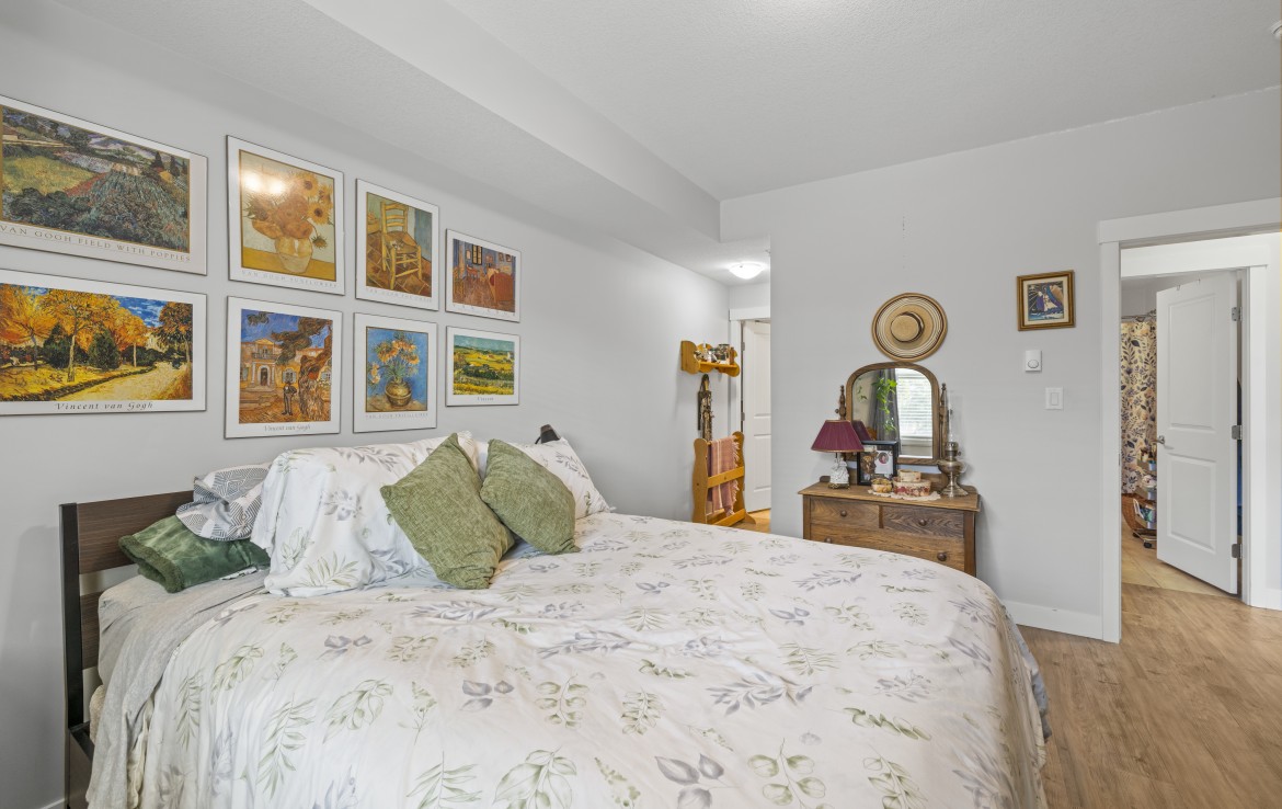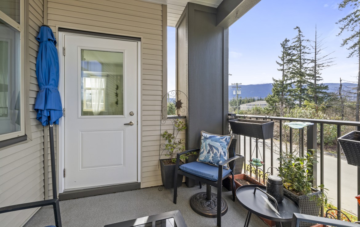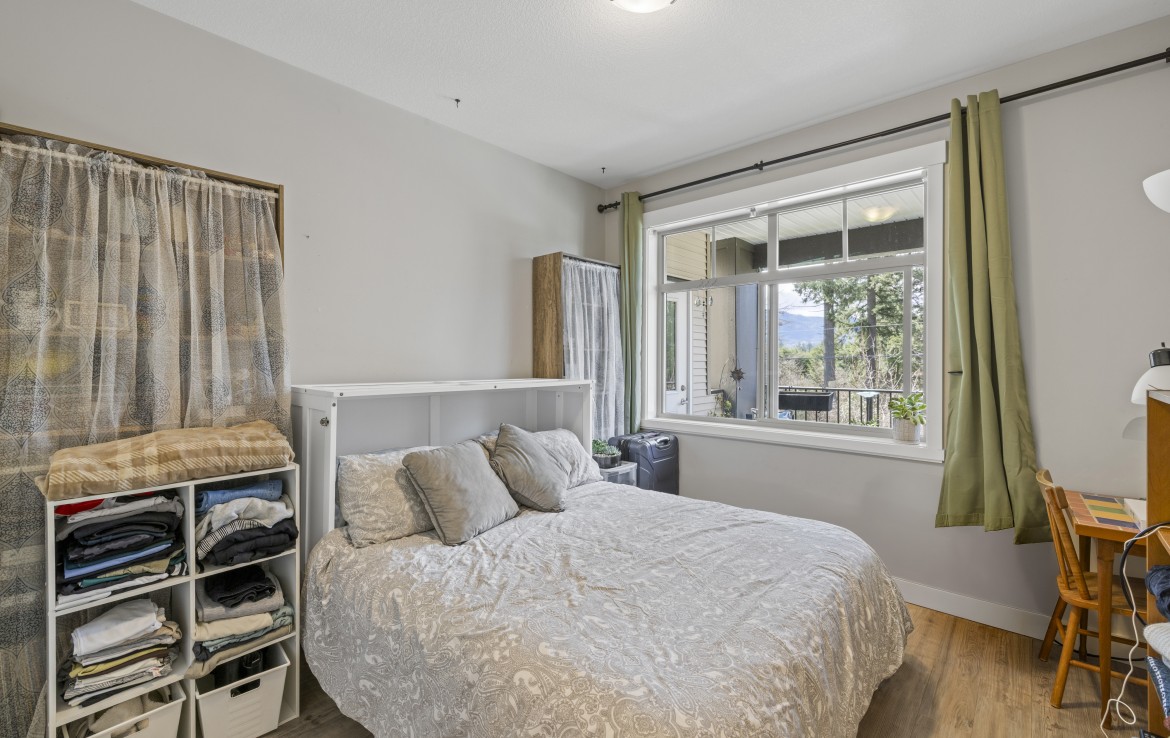 This well-designed unit with mountain views offers two bedrooms plus a spacious den, ideal for a home office. The open-concept layout is both functional and inviting, featuring abundant storage and a covered balcony for year-round enjoyment. The kitchen is equipped with four stainless steel appliances, ample white cabinetry, and great workspace. The primary bedroom includes a walk-in closet and a private three-piece ensuite.