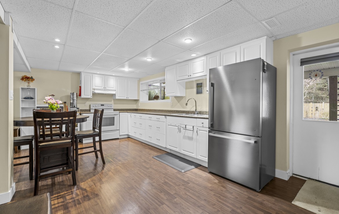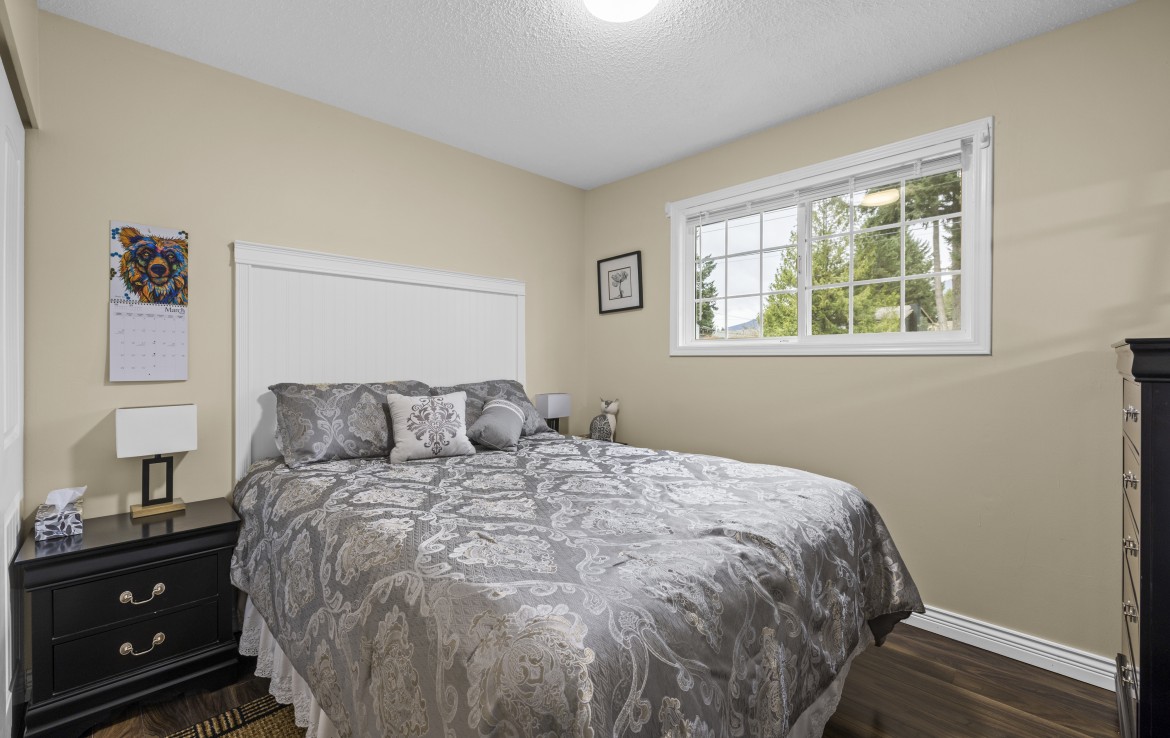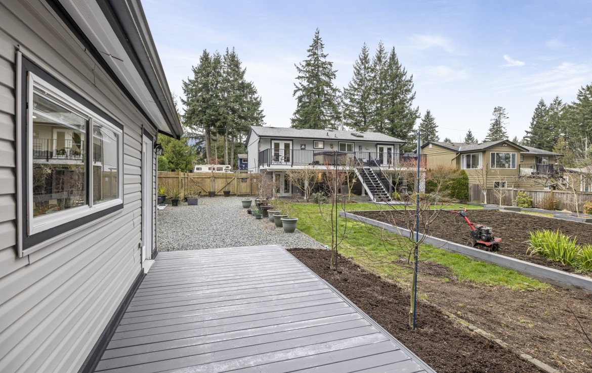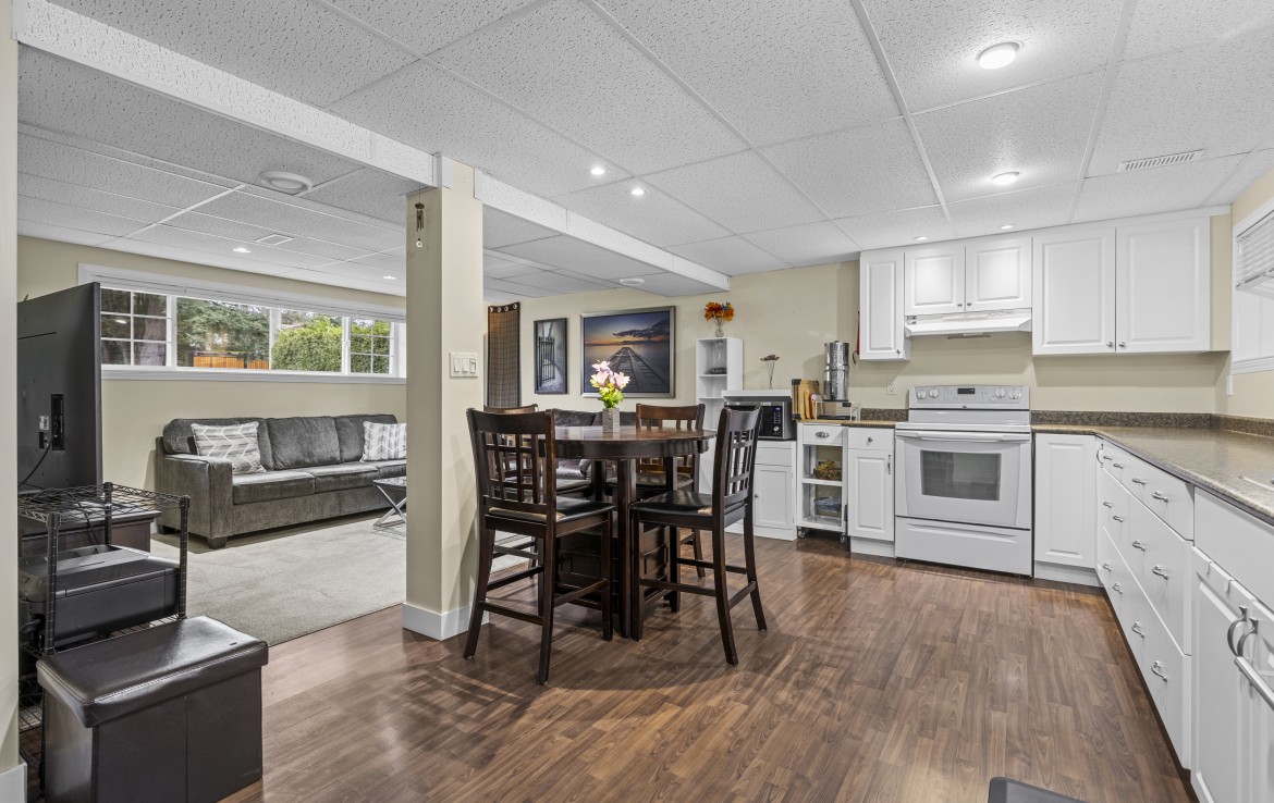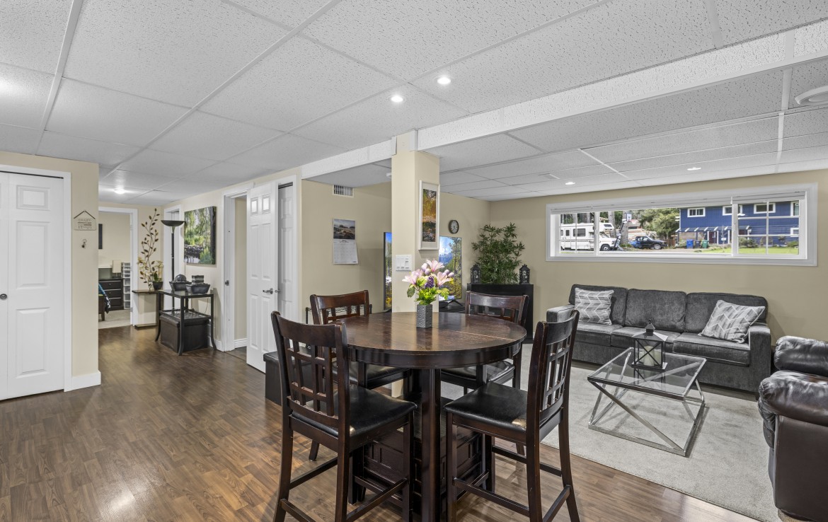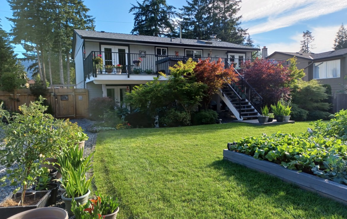 Backing onto Diver Lake Park on a quiet side street, this meticulously maintained home sits on a third of an acre and offers lake views. The main level features three bedrooms, a four piece bathroom, and a bright kitchen with abundant cabinetry and three stainless appliances. The expansive back deck with hot tub is the perfect place to relax while enjoying views of Diver Lake. The fully fenced yard features beautiful landscaping, a large garden area, fruit trees, and berry plants. A spacious one bedroom unauthorized suite on the lower level offers flexibility.