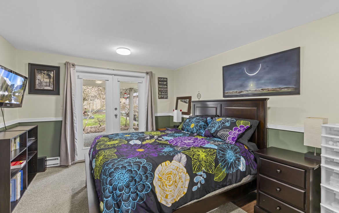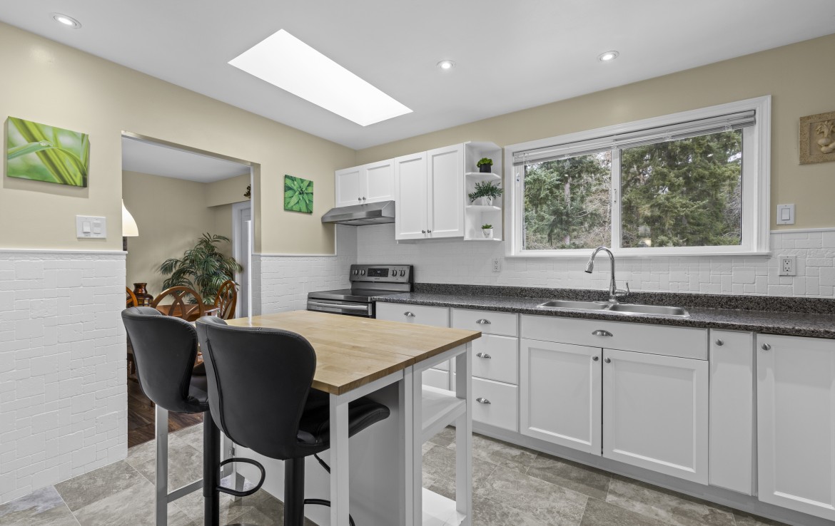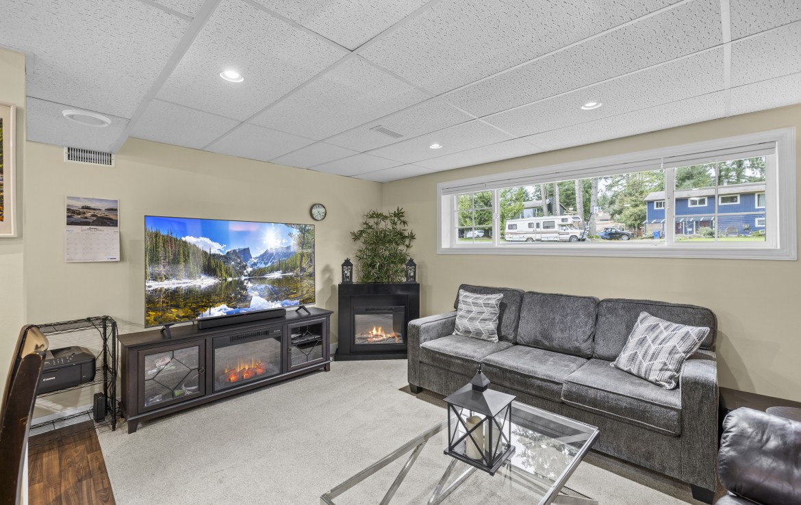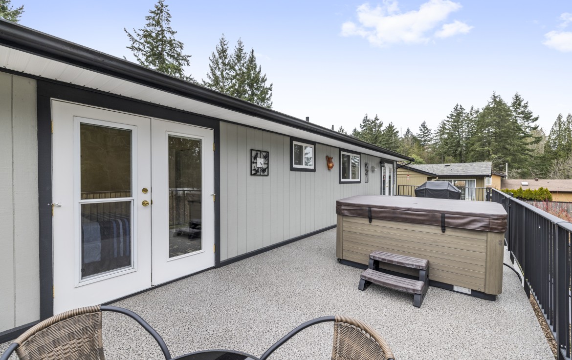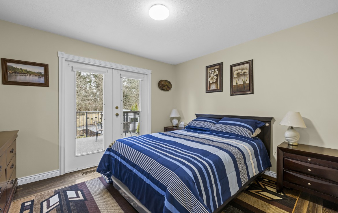 Backing onto Diver Lake Park on a quiet side street, this meticulously maintained home sits on a third of an acre and offers lake views. The main level features three bedrooms, a four piece bathroom, and a bright kitchen with abundant cabinetry and three stainless appliances. The expansive back deck with hot tub is the perfect place to relax while enjoying views of Diver Lake. The fully fenced yard features beautiful landscaping, a large garden area, fruit trees, and berry plants. A spacious one bedroom unauthorized suite on the lower level offers flexibility.