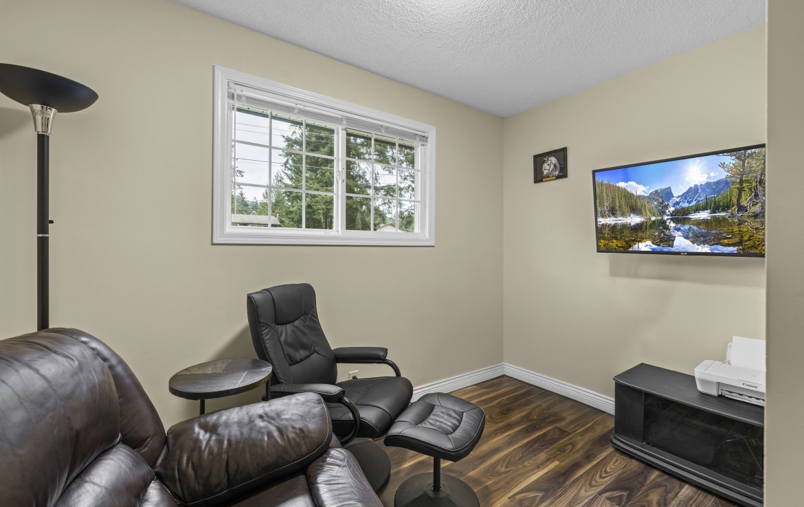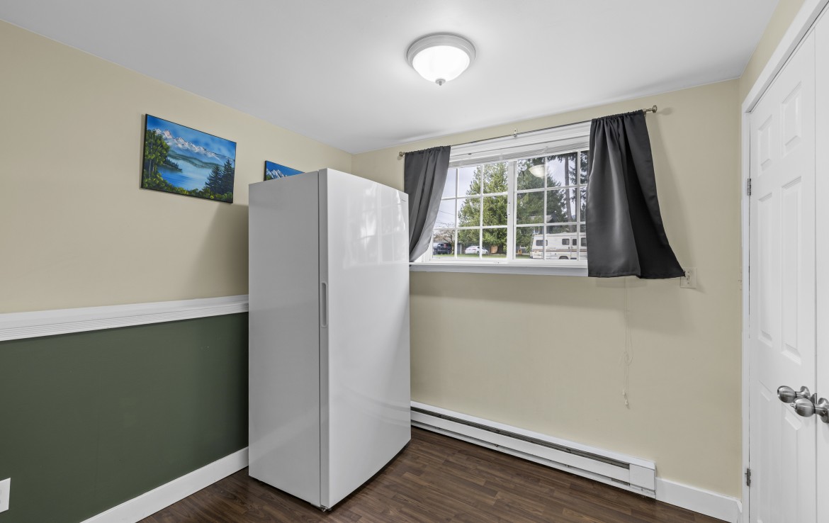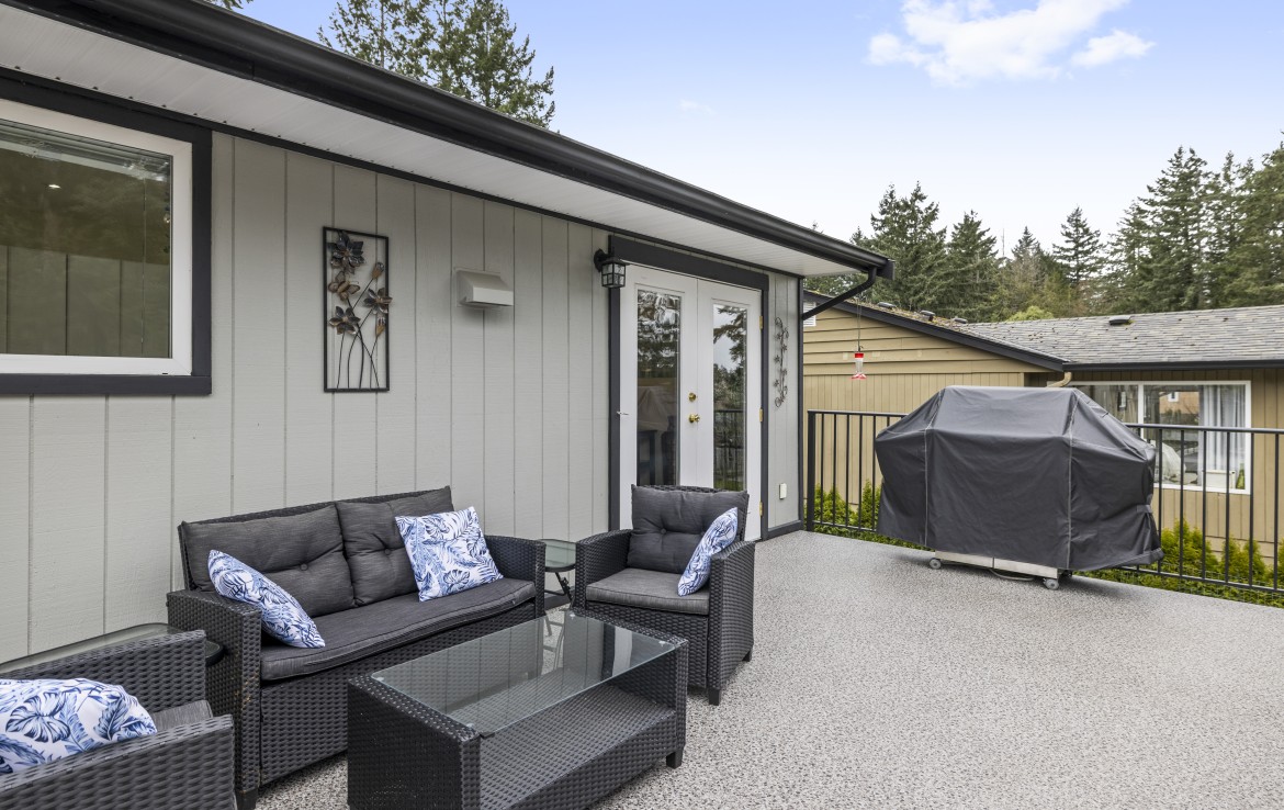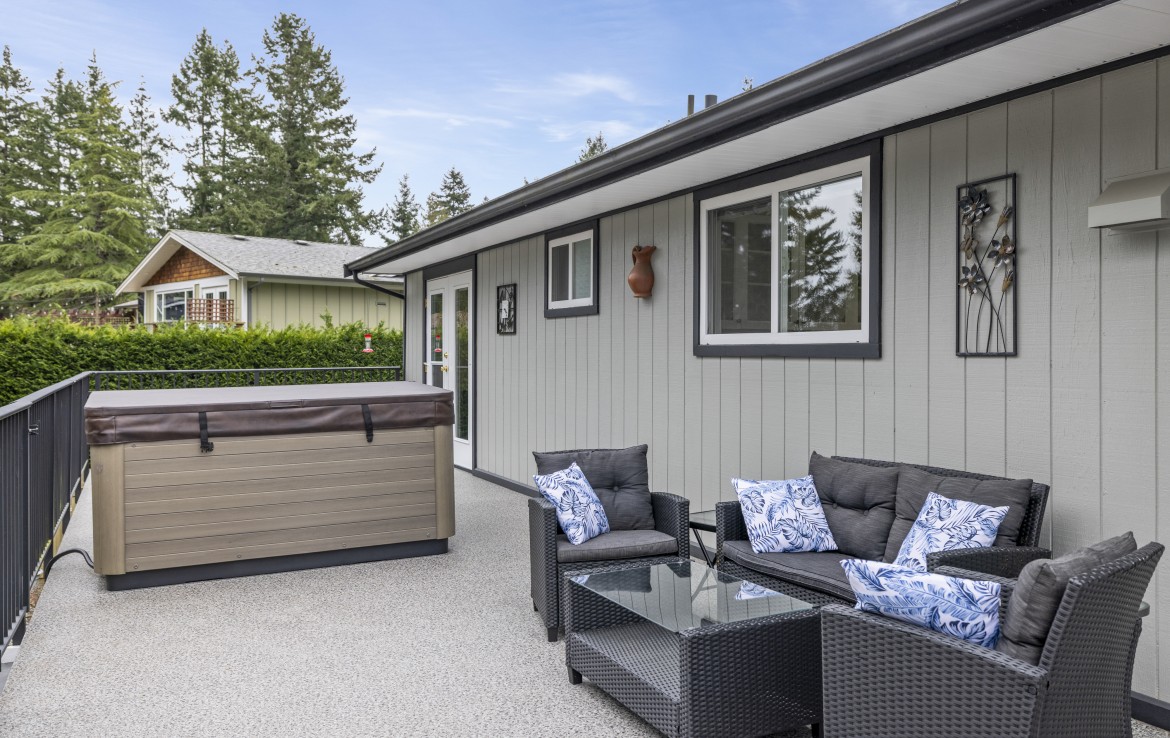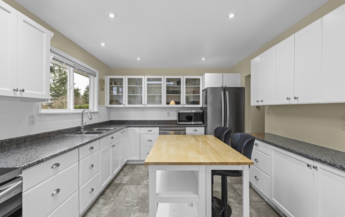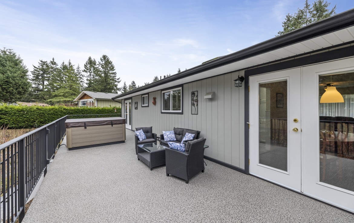 Backing onto Diver Lake Park on a quiet side street, this meticulously maintained home sits on a third of an acre and offers lake views. The main level features three bedrooms, a four piece bathroom, and a bright kitchen with abundant cabinetry and three stainless appliances. The expansive back deck with hot tub is the perfect place to relax while enjoying views of Diver Lake. The fully fenced yard features beautiful landscaping, a large garden area, fruit trees, and berry plants. A spacious one bedroom unauthorized suite on the lower level offers flexibility.