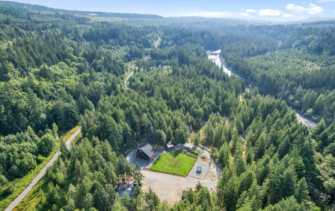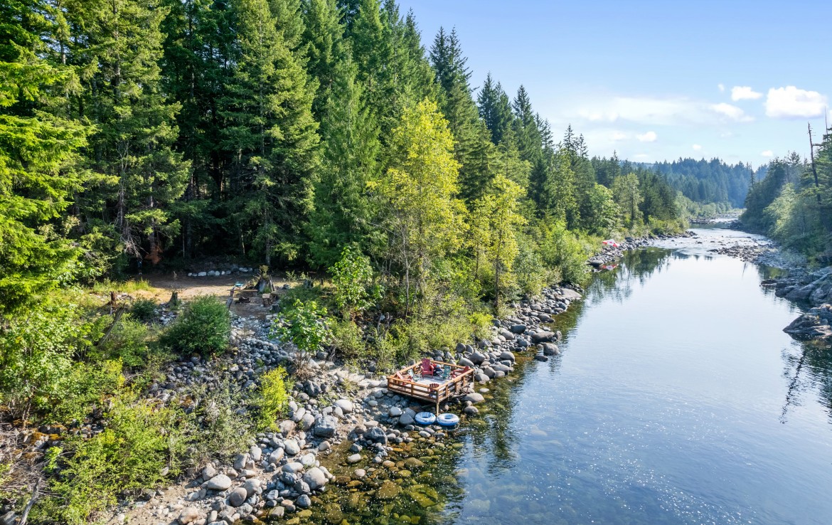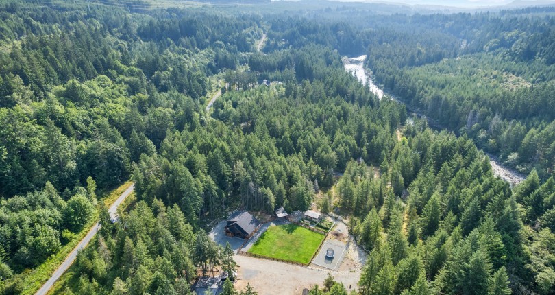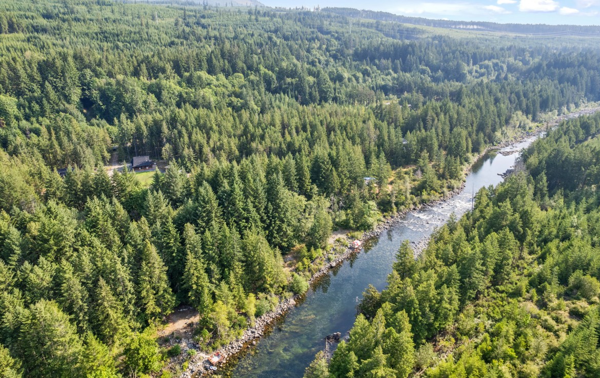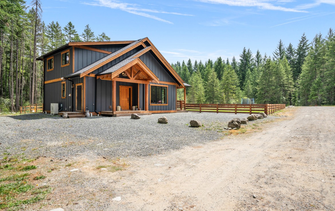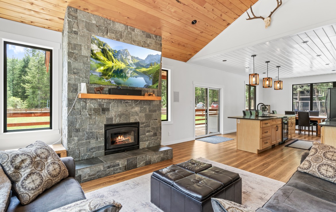 Welcome to your private 15.8-acre retreat with 600 feet of slow-moving riverfront, complete with peaceful swimming holes and the soothing sounds of nature. This custom-built three bedroom, three bathroom home offers modern comfort in a park-like setting. Designed with quality and efficiency in mind, it features a Pacific Energy wood-burning fireplace with floor-to-ceiling stone surround, a stunning kitchen with quartz countertops, 10’ island, and black stainless appliances, plus a main-level primary suite.