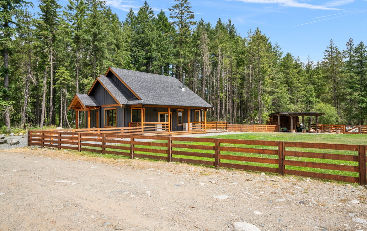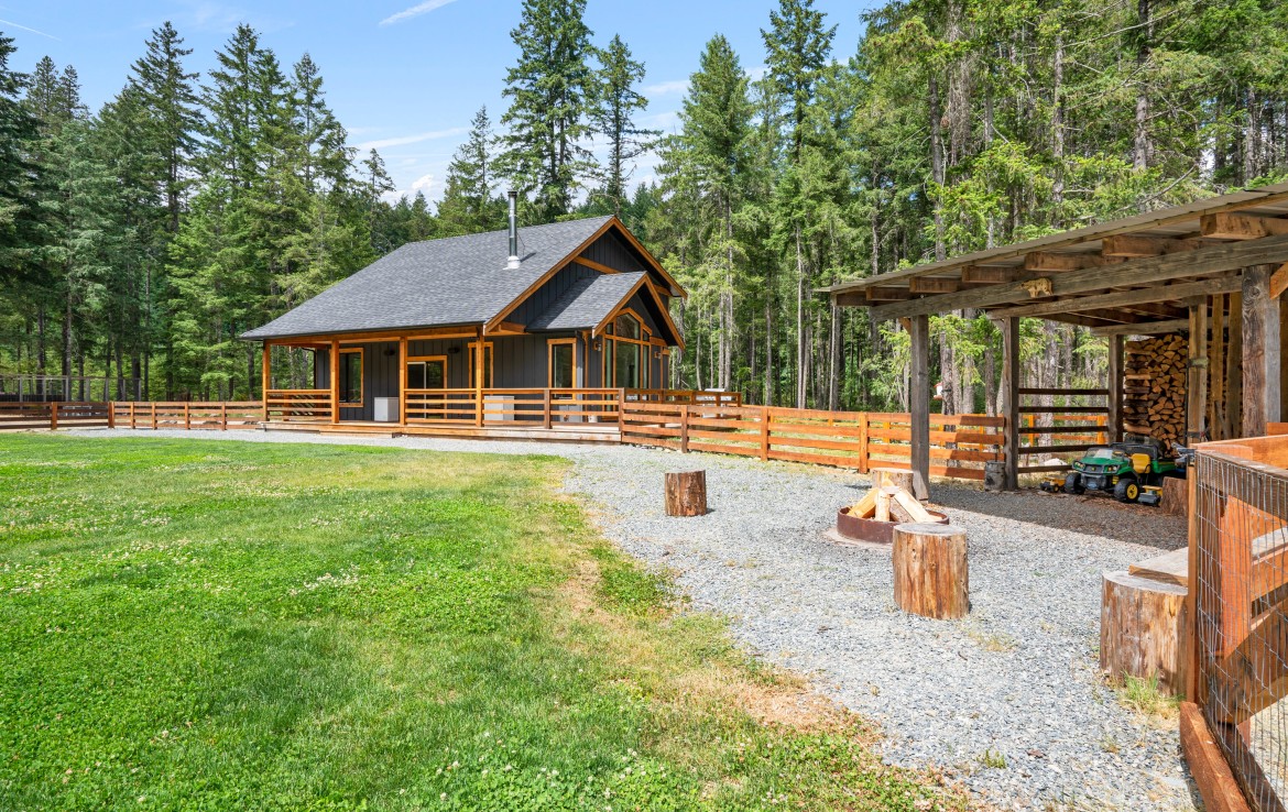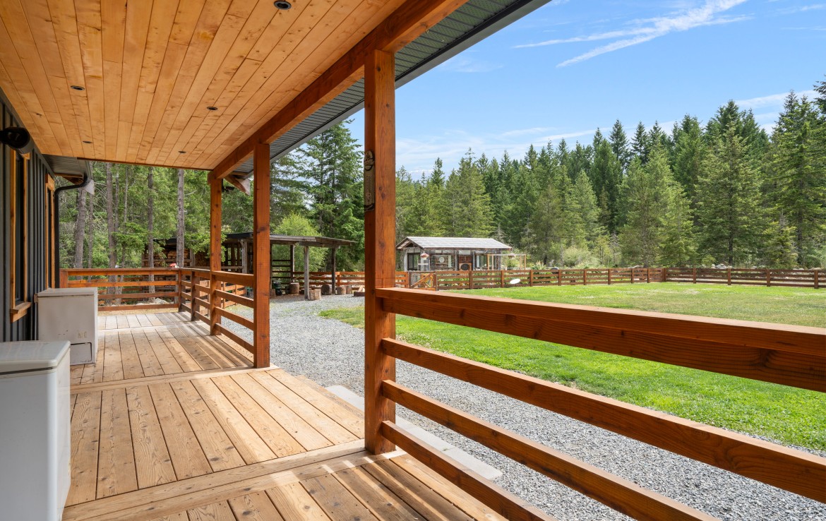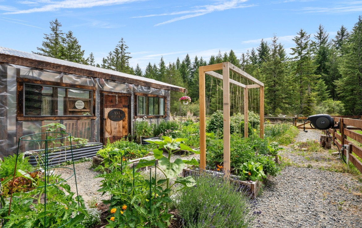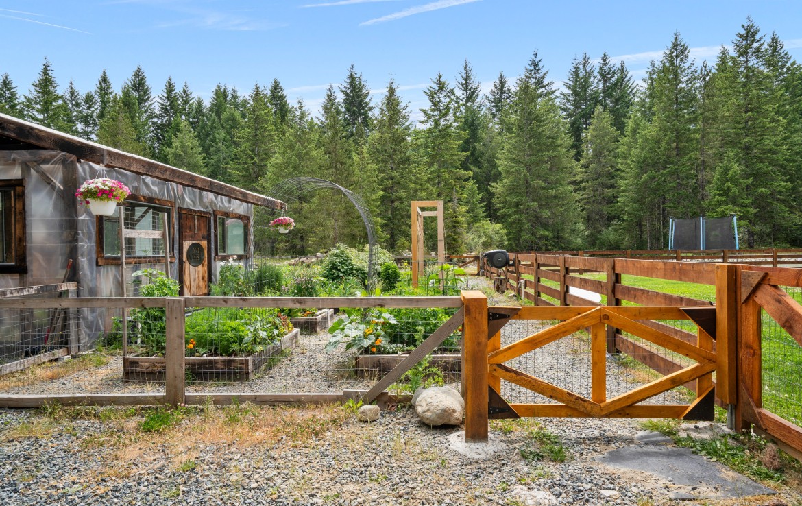Outdoors, the property shines with a fenced lawn and garden, expansive greenhouse, chicken coop, goat houses, and a 46×40 pole barn. Trails wind through the acreage, while an automated irrigation system keeps everything flourishing. Private and peaceful on a no-through road, this property is the perfect blend of new-home comfort and natural beauty.