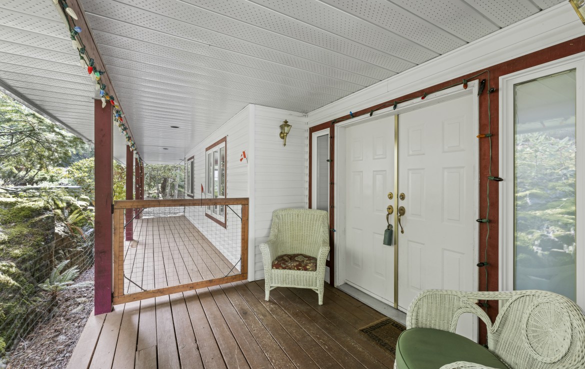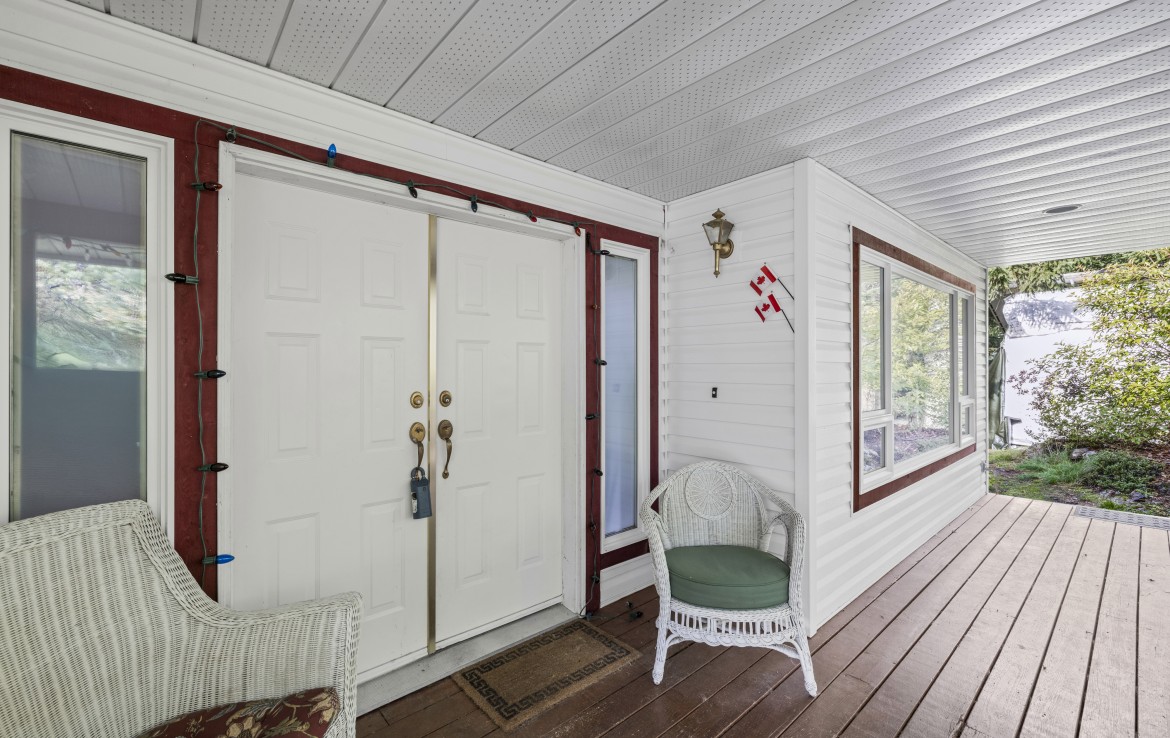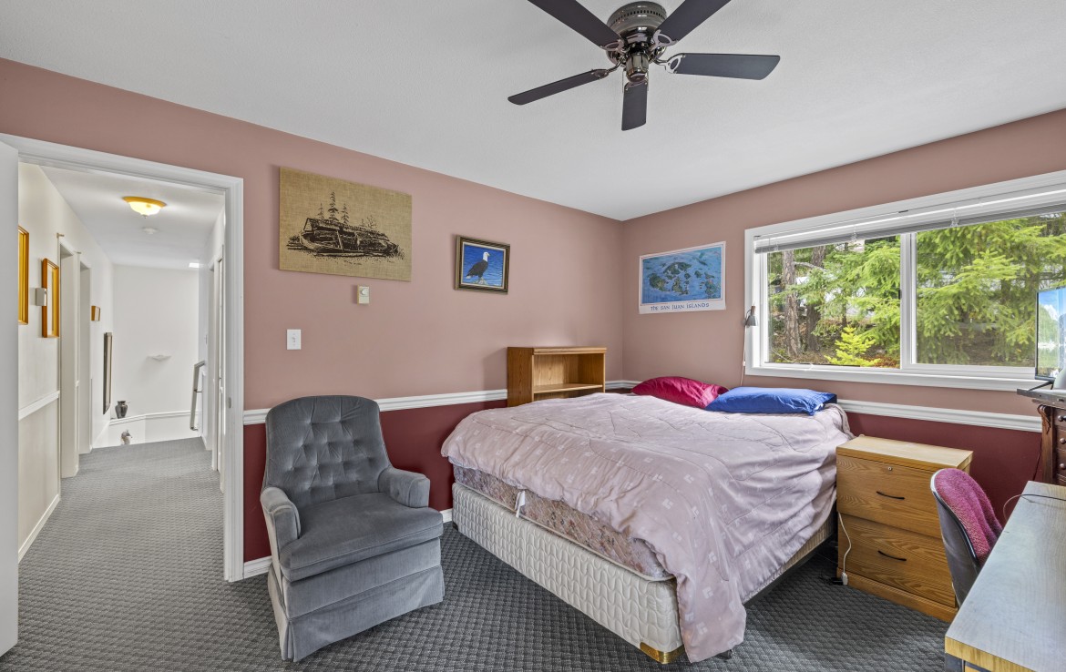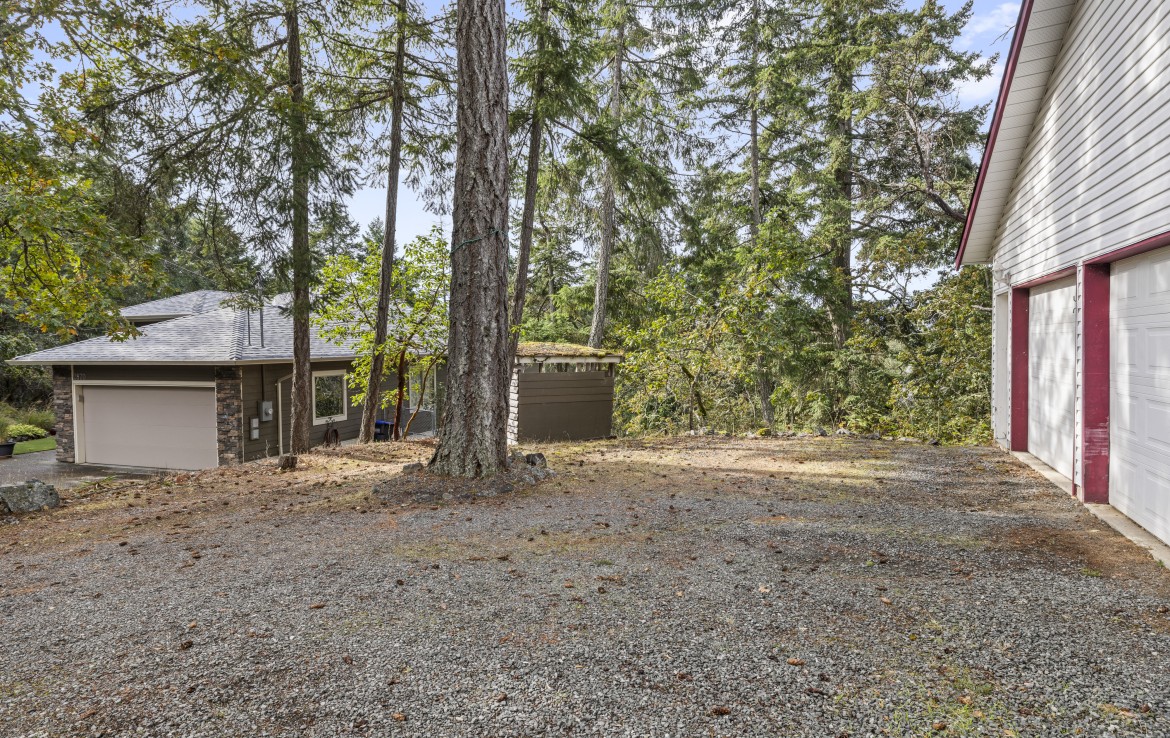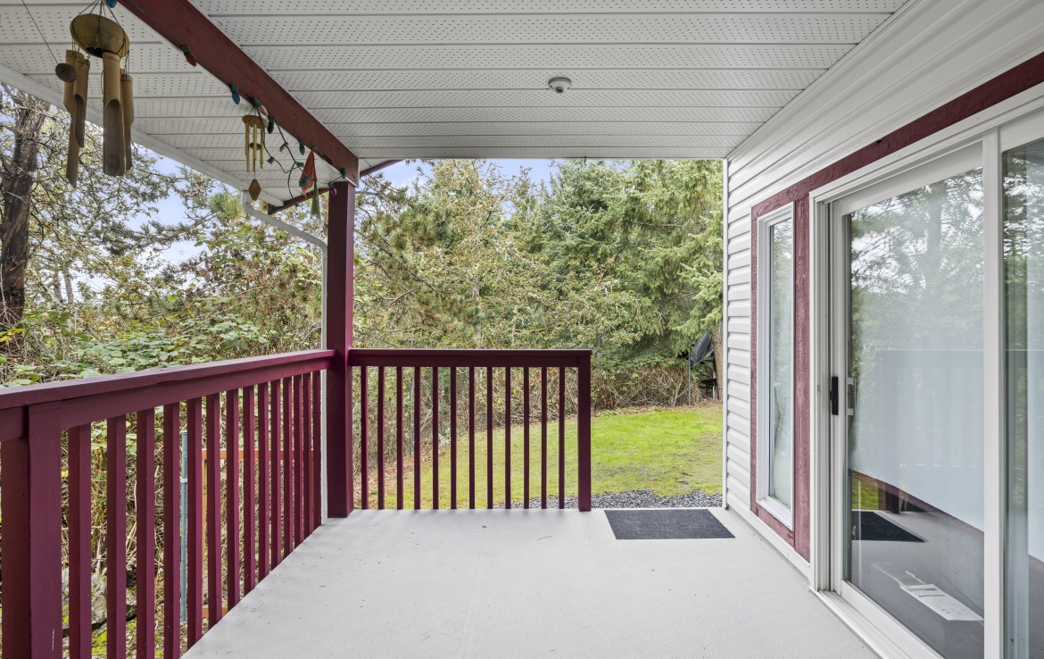 Upstairs, the primary bedroom includes a walk-in closet, four-piece ensuite and access to a partially covered deck. Three additional bedrooms and a four-piece main bathroom complete the upper level. Added features include a double garage, carport, multiple decks for outdoor enjoyment and two storey shed with potential use as a greenhouse. This home offers privacy and space in a peaceful setting close to parks, beaches, Fairwinds amenities, and a nearby school bus stop—perfect for family living.