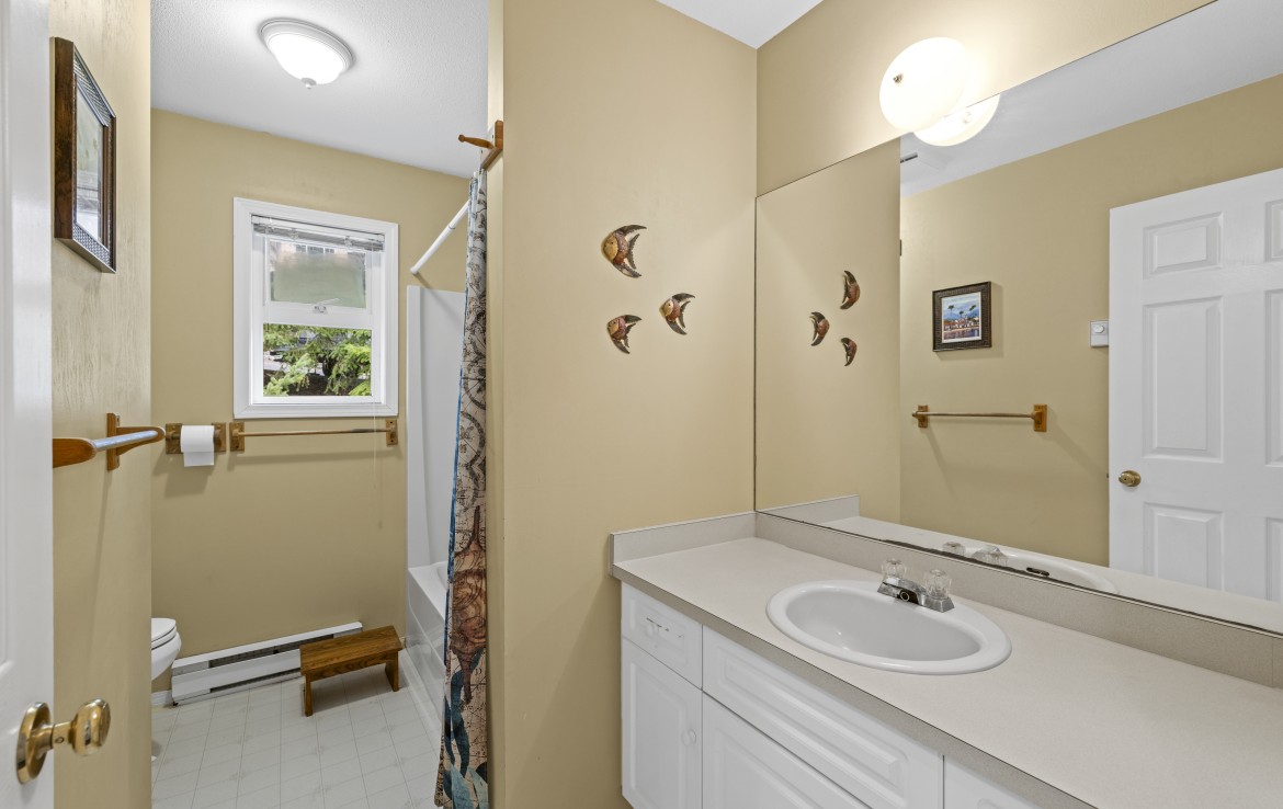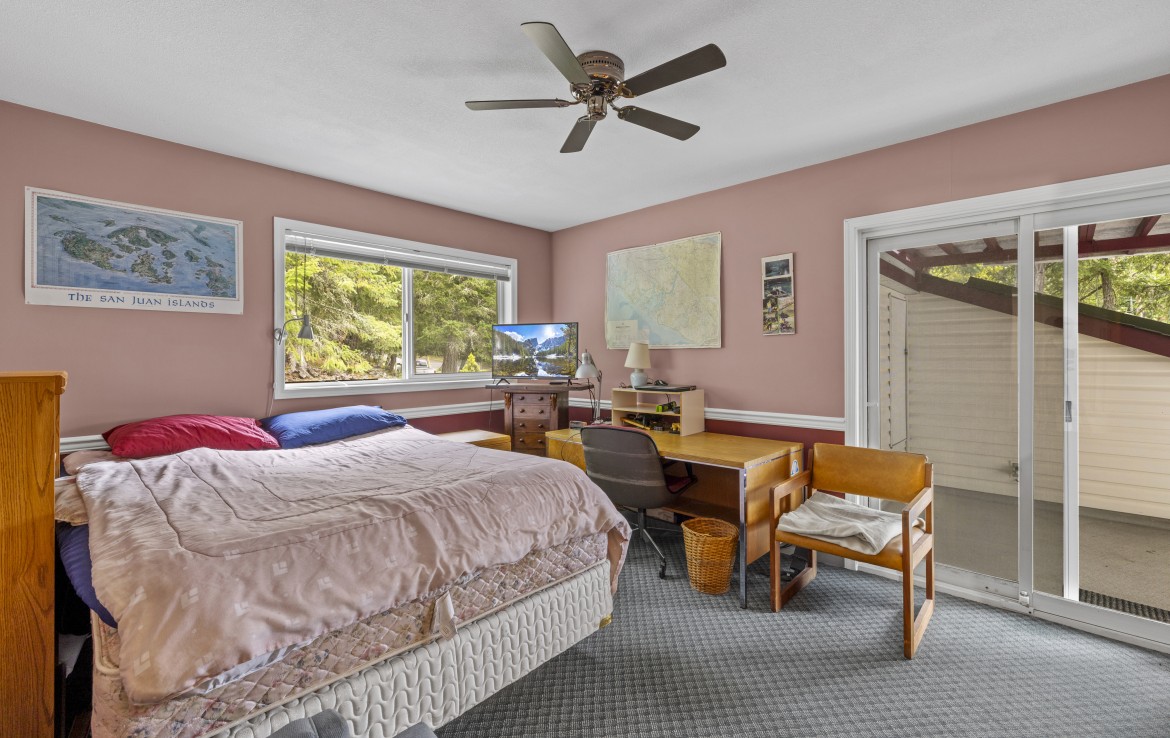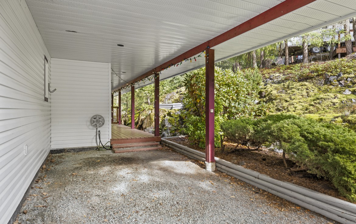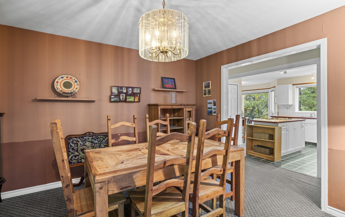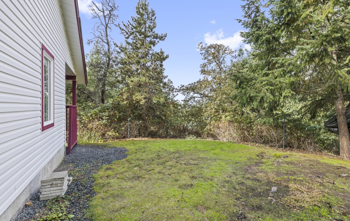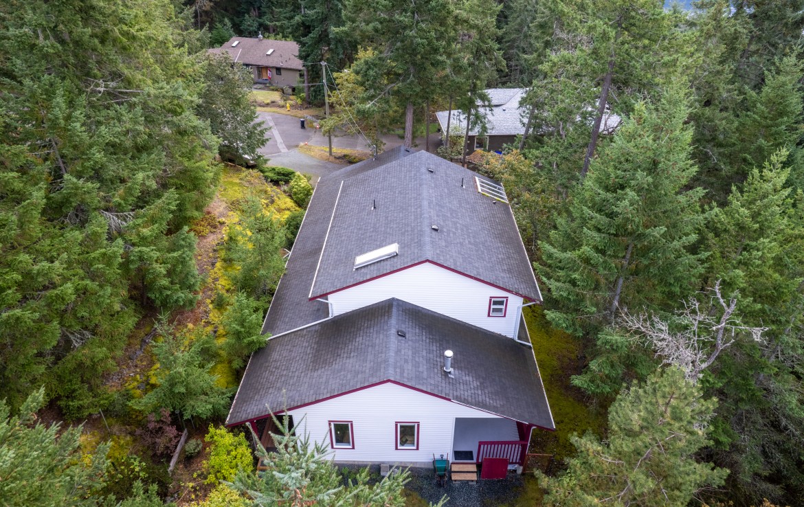 Upstairs, the primary bedroom includes a walk-in closet, four-piece ensuite and access to a partially covered deck. Three additional bedrooms and a four-piece main bathroom complete the upper level. Added features include a double garage, carport, multiple decks for outdoor enjoyment and two storey shed with potential use as a greenhouse. This home offers privacy and space in a peaceful setting close to parks, beaches, Fairwinds amenities, and a nearby school bus stop—perfect for family living.