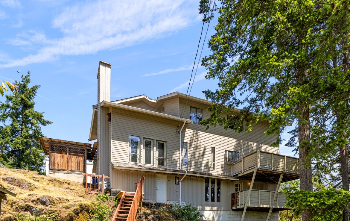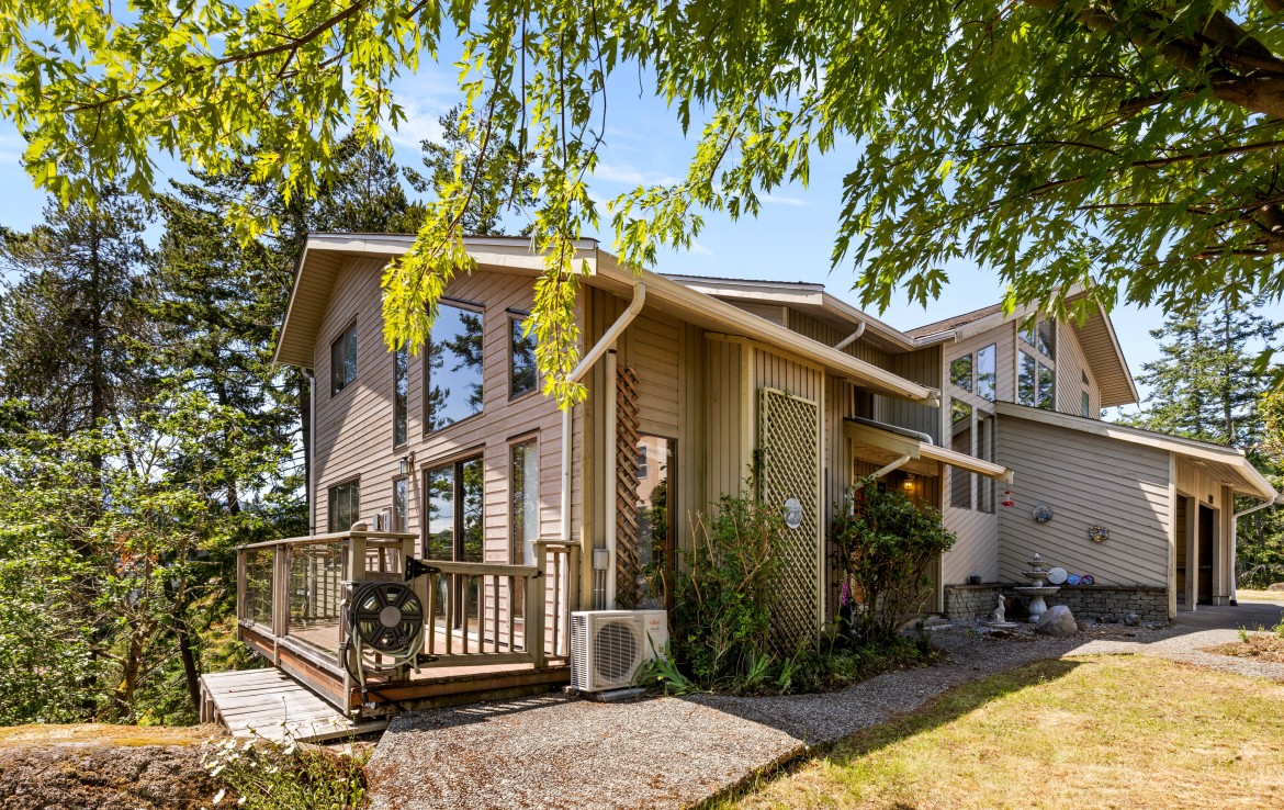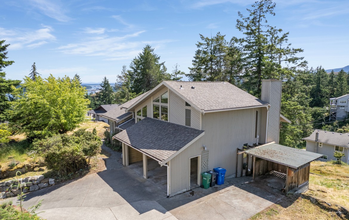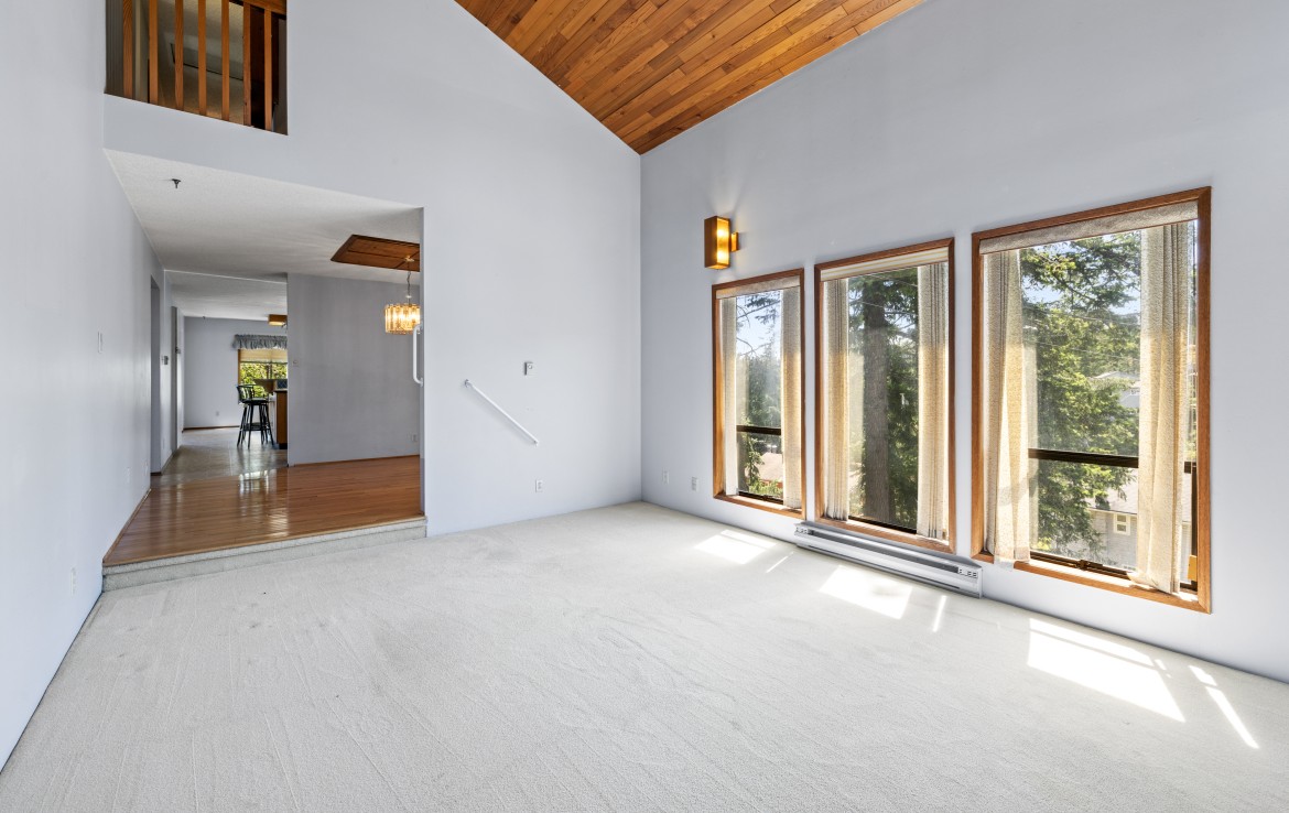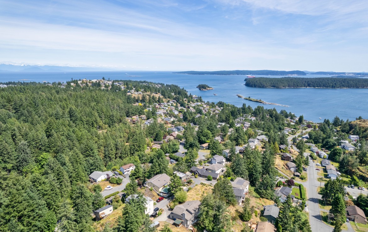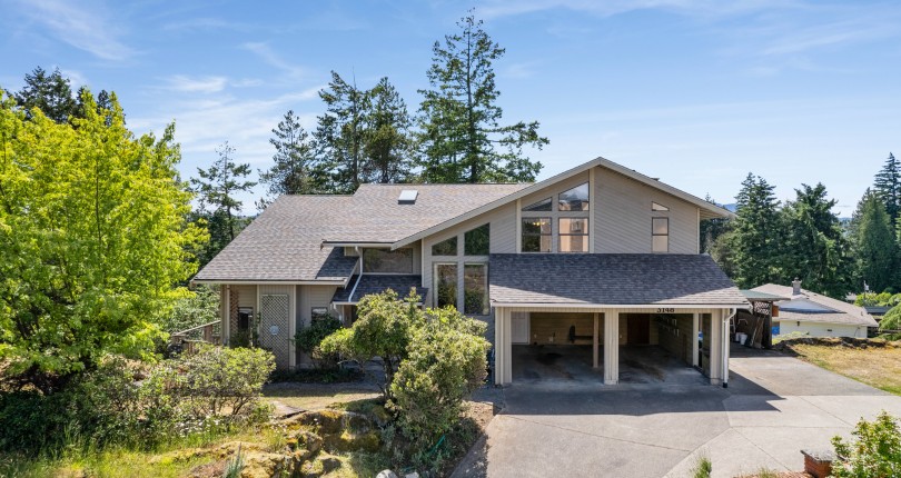 This custom-built ocean view West Coast-style home offers a rare opportunity to own in a peaceful, established neighbourhood near Linley Valley trails and beach access. Thoughtfully designed to reflect its natural surroundings, the home features soaring vaulted ceilings, warm wood accents, and abundant windows that bring in natural light. The main level includes a living room and family room—both with vaulted ceilings—a kitchen with eating nook, formal dining room, two-piece bathroom, and laundry.