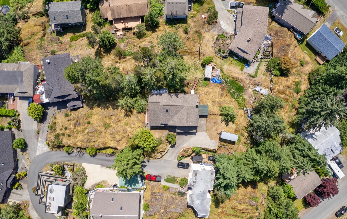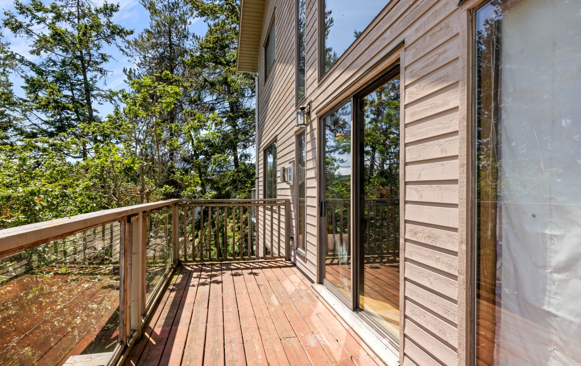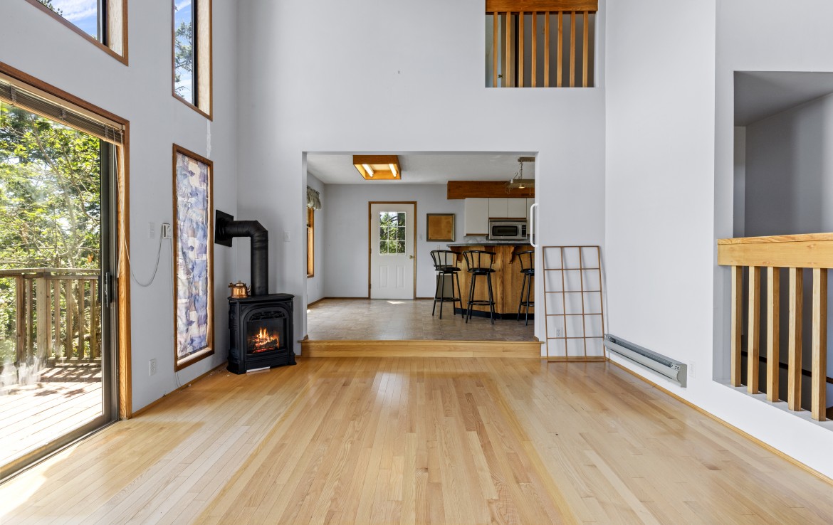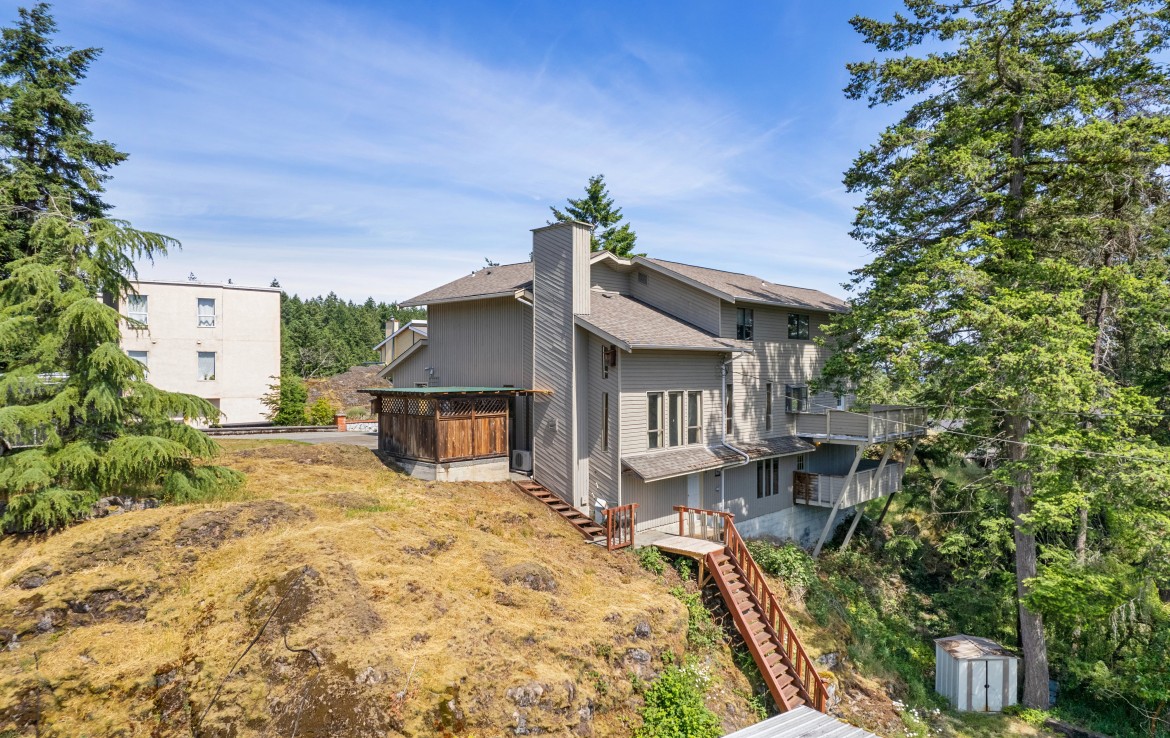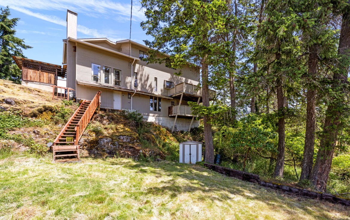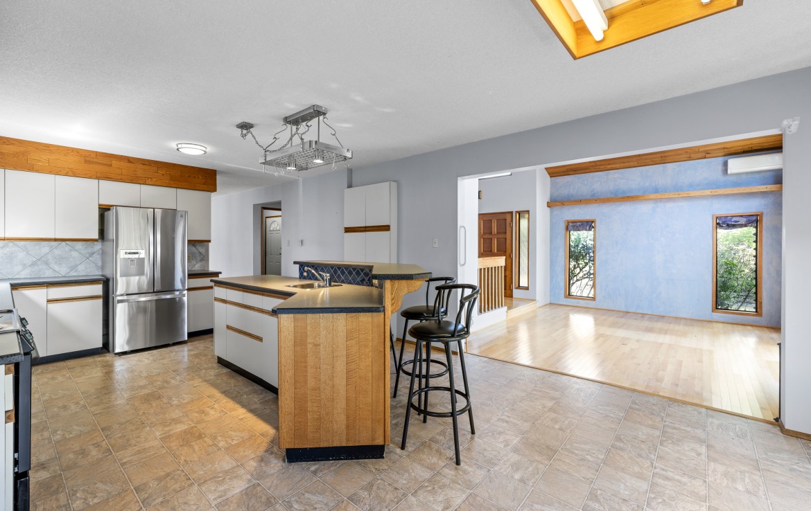 This custom-built ocean view West Coast-style home offers a rare opportunity to own in a peaceful, established neighbourhood near Linley Valley trails and beach access. Thoughtfully designed to reflect its natural surroundings, the home features soaring vaulted ceilings, warm wood accents, and abundant windows that bring in natural light. The main level includes a living room and family room—both with vaulted ceilings—a kitchen with eating nook, formal dining room, two-piece bathroom, and laundry.