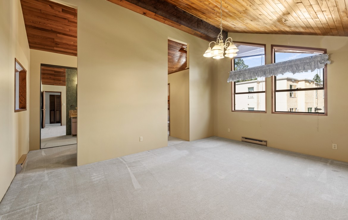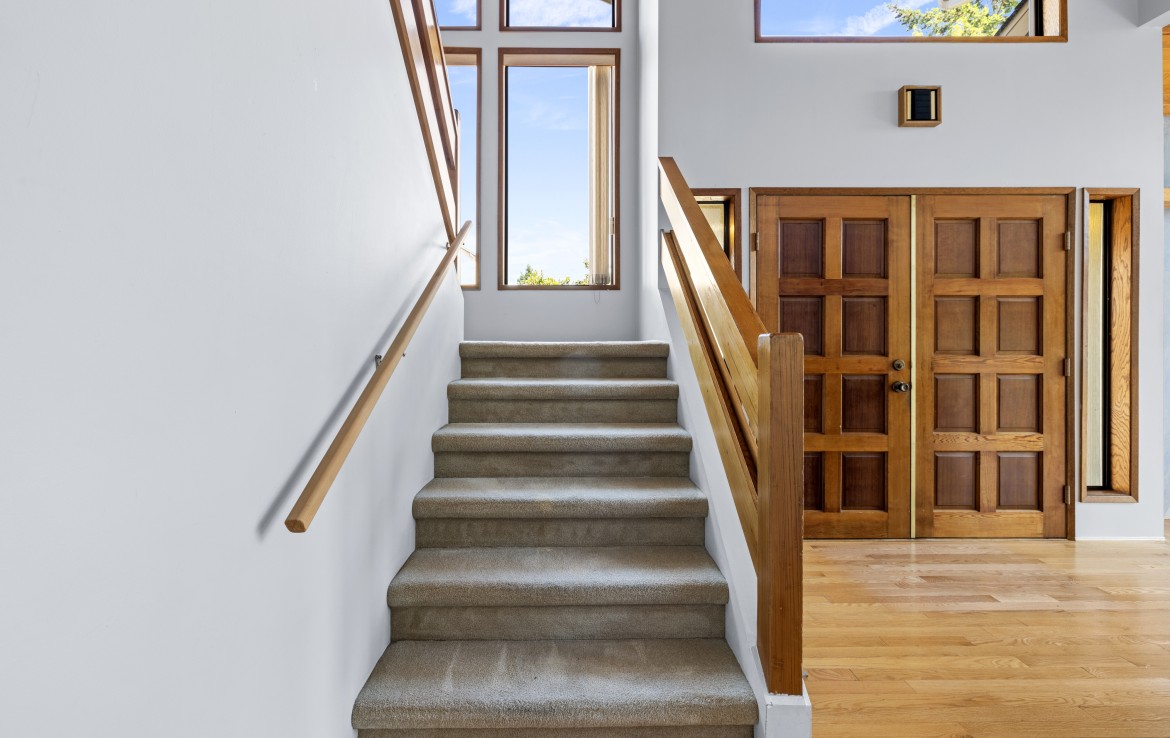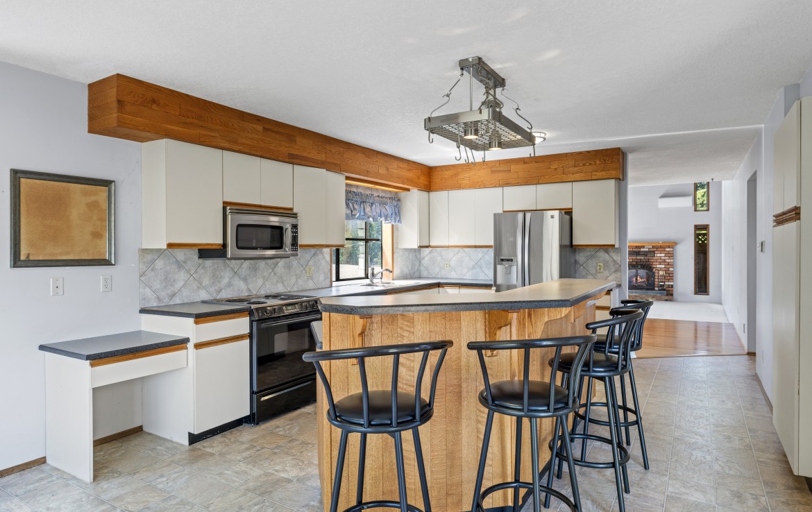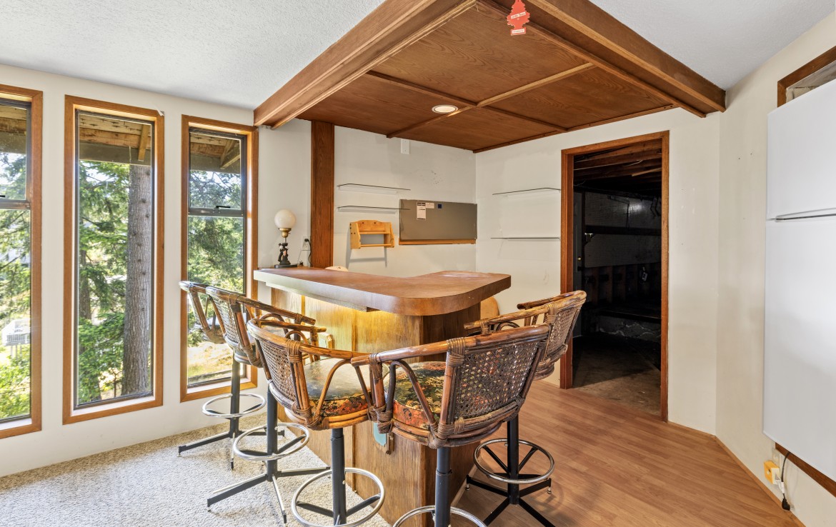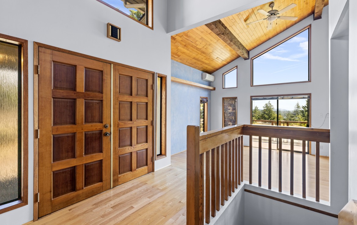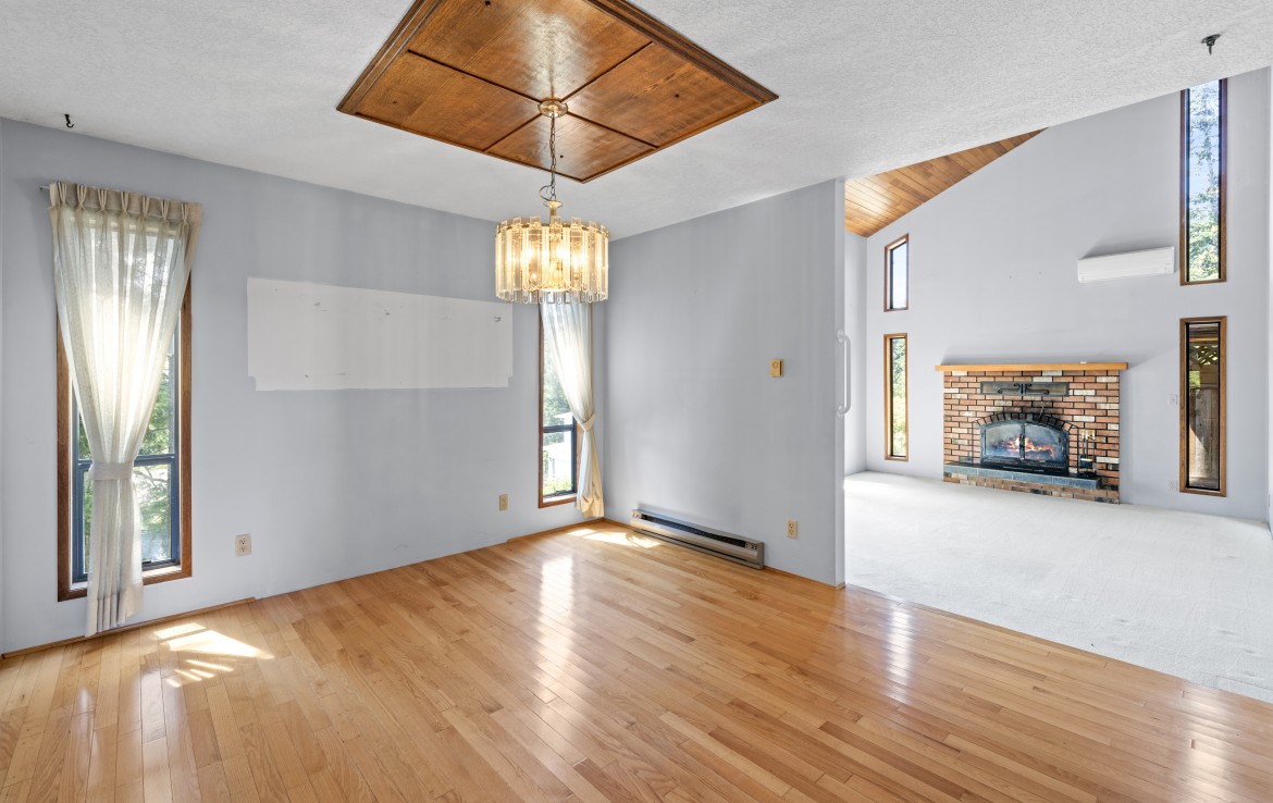 This custom-built ocean view West Coast-style home offers a rare opportunity to own in a peaceful, established neighbourhood near Linley Valley trails and beach access. Thoughtfully designed to reflect its natural surroundings, the home features soaring vaulted ceilings, warm wood accents, and abundant windows that bring in natural light. The main level includes a living room and family room—both with vaulted ceilings—a kitchen with eating nook, formal dining room, two-piece bathroom, and laundry.