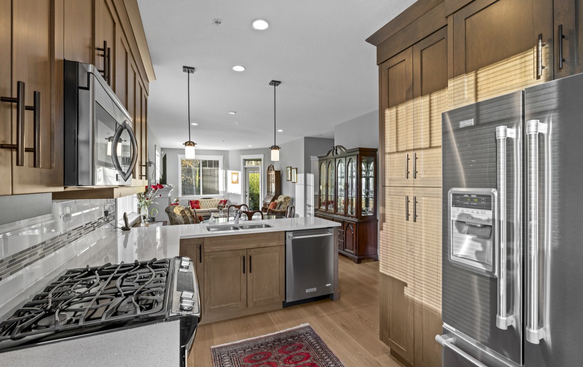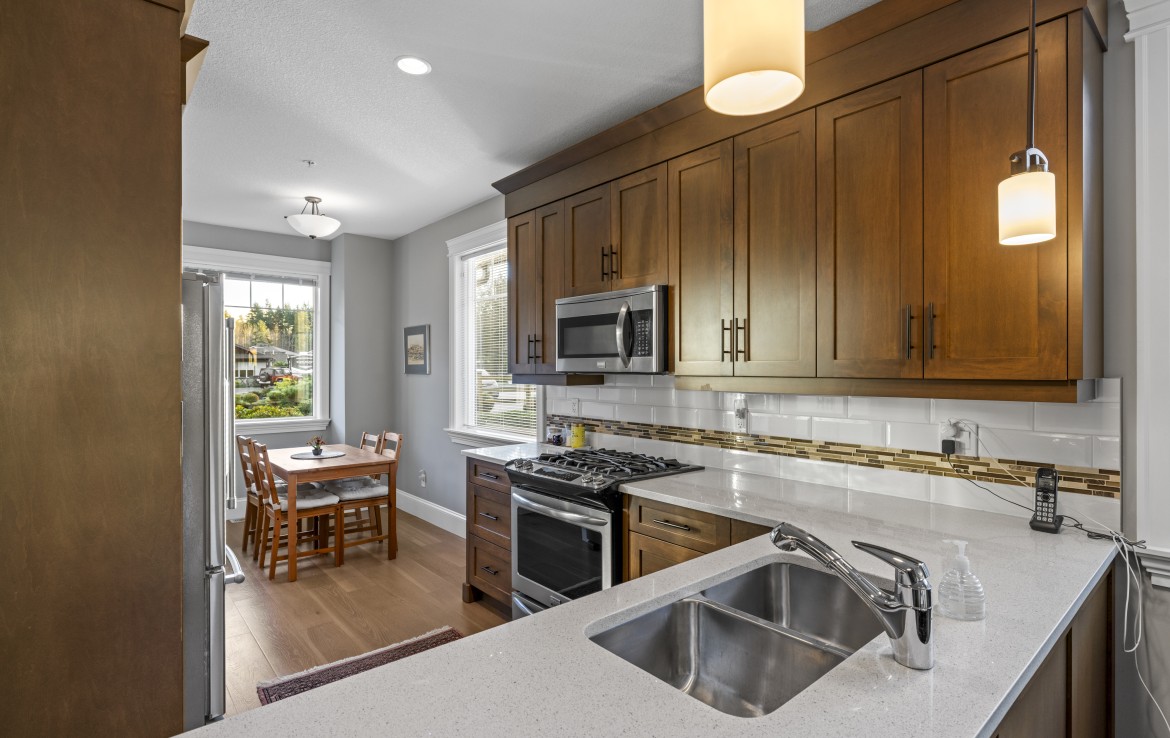 Upstairs offers excellent separation of space with a large family room, two additional bedrooms, and a three-piece bathroom—perfect for guests or family. The complex allows one cat or one dog. Enjoy an exceptional lifestyle just a short walk from the Linley Valley hiking trails. See brochure, 3D tour and video for more information. All data & measurements are approximate and must be verified if fundamental.