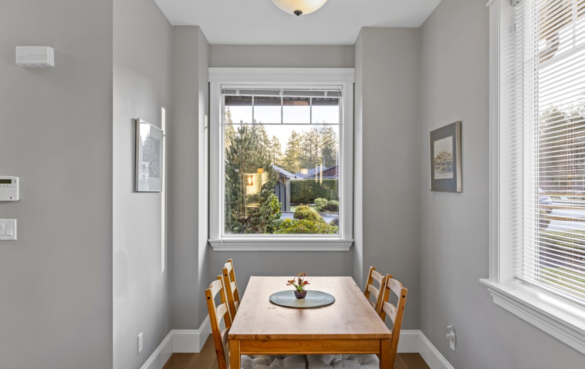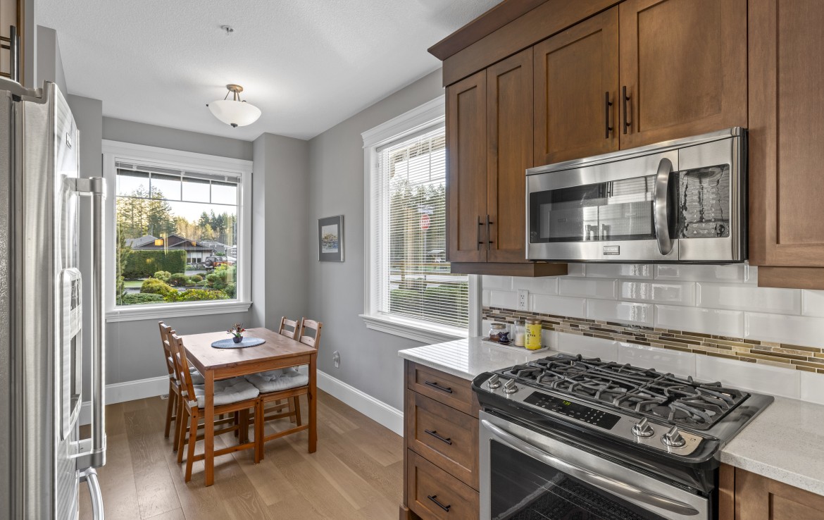 Welcome to this high-end two-storey detached townhouse in sought-after Cottle Creek Estates, ideally located in desirable Departure Bay. Designed for main-level living, the open-concept layout is complemented by 9’ ceilings and engineered hardwood flooring. The spacious primary bedroom is conveniently located on the main level and features a walk-in closet and four-piece ensuite with heated floors. Also on the main are a versatile den, laundry area, and a two-piece bathroom with heated floors.