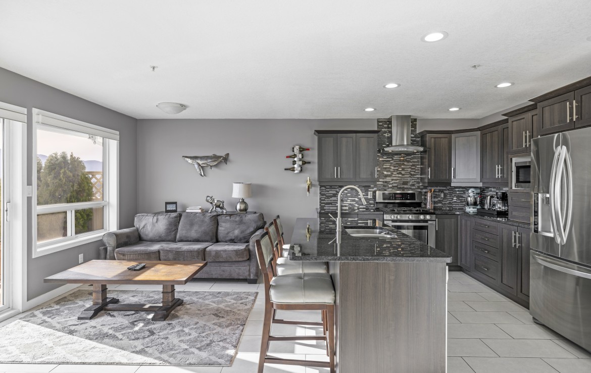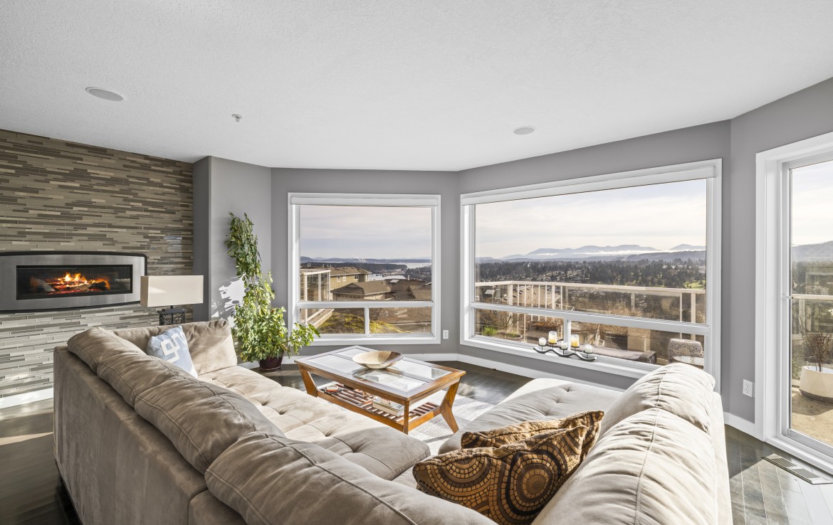 Soak in breathtaking ocean, mountain and golf course views from this beautifully updated home, where abundant windows and a sunny southern exposure make the scenery the star. The expansive deck is the perfect place to relax and take in endless vistas, while inside you’ll find a spacious main living area with hardwood flooring and a stylish gas fireplace.
