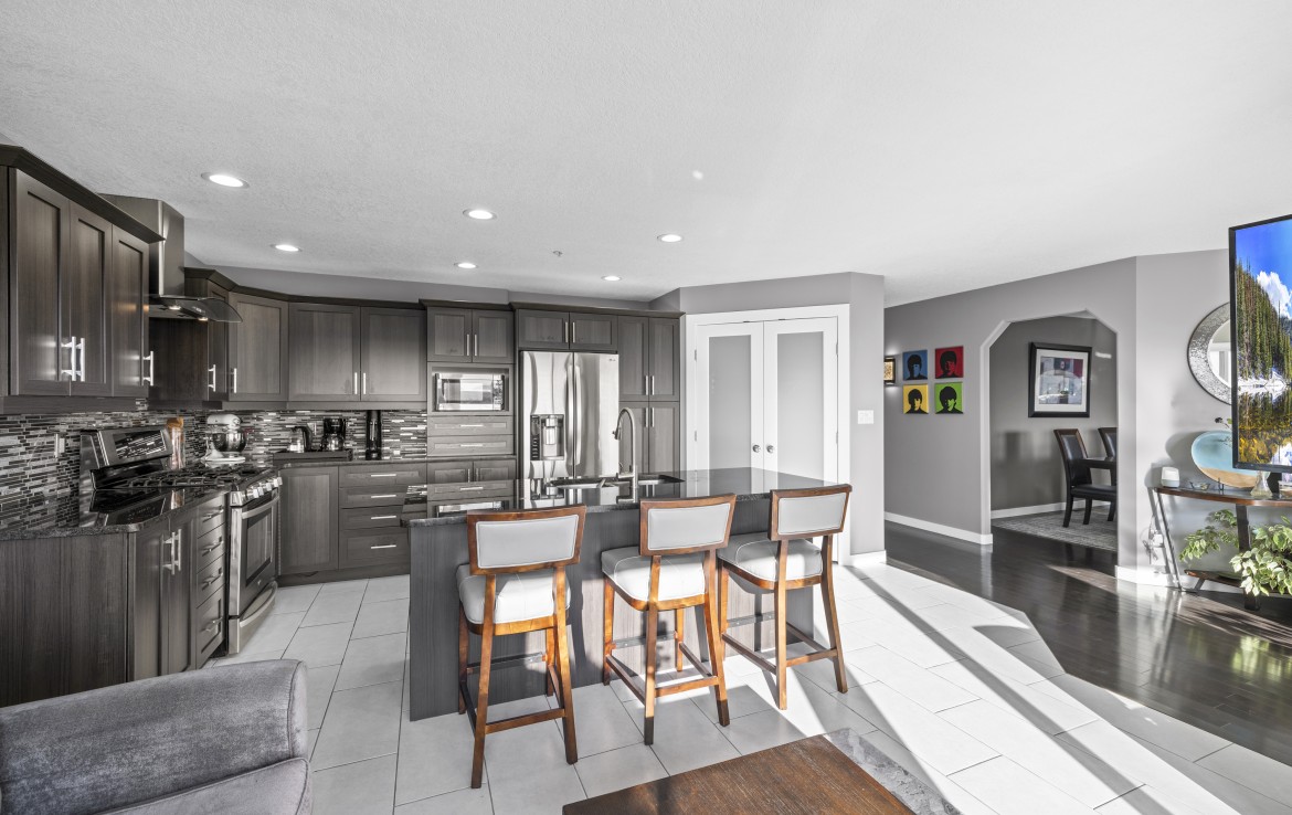 The updated kitchen features stainless steel appliances and flows seamlessly for everyday living and entertaining. The primary bedroom is a true retreat, offering two separate ensuites, each with its own walk-in closet, plus access to a covered deck overlooking Linley Valley.