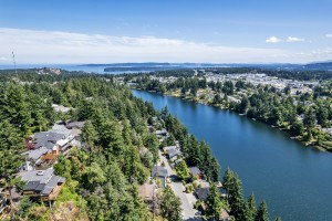 The area of Uplands is well-known for its beautiful views, including sights of Long Lake, Mount Benson and the nearby ocean. Uplands Drive is a major residential road that starts at the end of Departure Bay Road and curves northwest past the Nanaimo North Town Centre. This area is popular with professionals and families for its standard house styles and easy access to local parks, most notably the natural area of Linley Valley and the new Oliver Woods Community Centre. Properties in the Uplands area are mainly residential, with many properties including large lot sizes due to the hillside landscape.