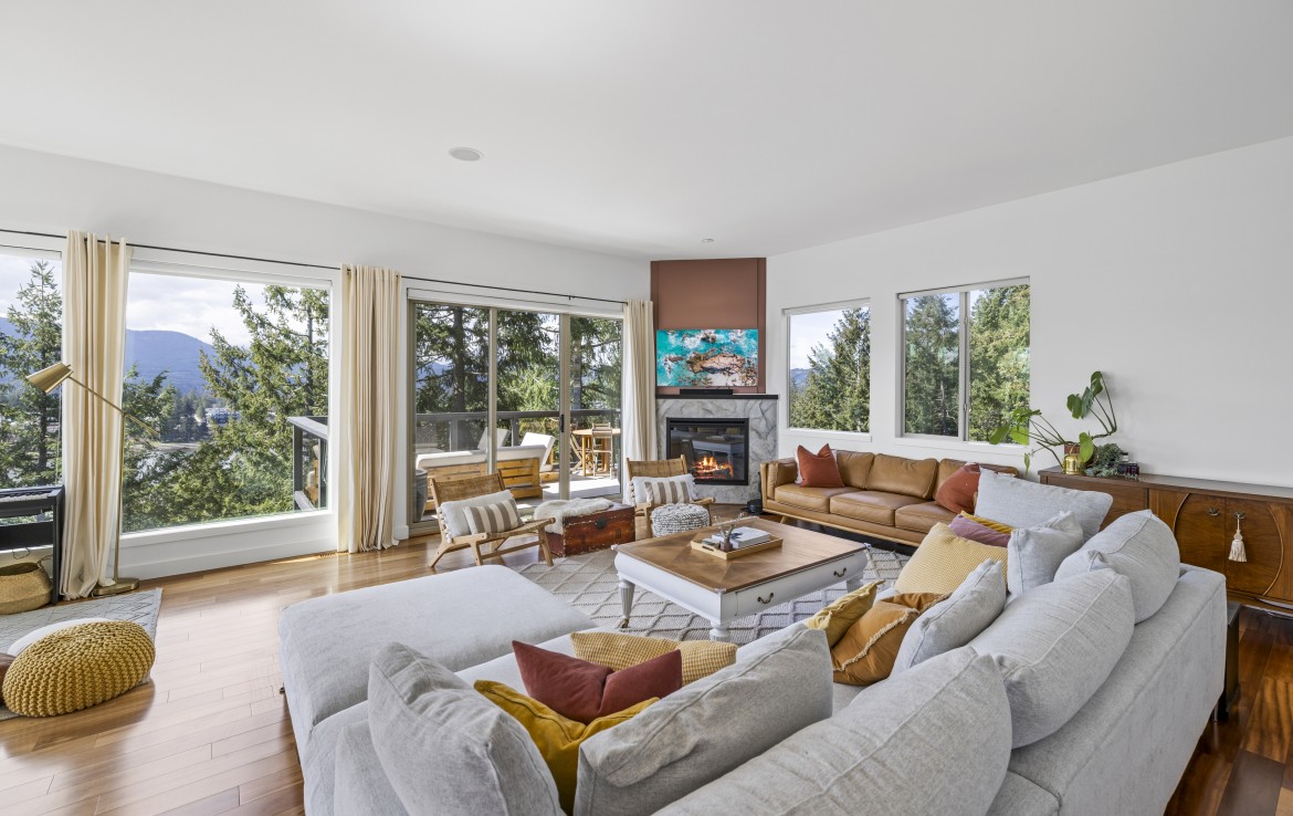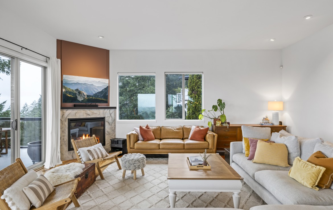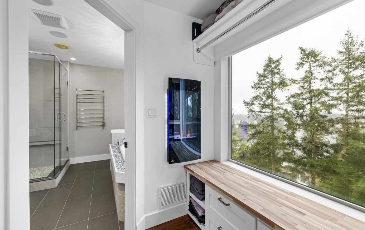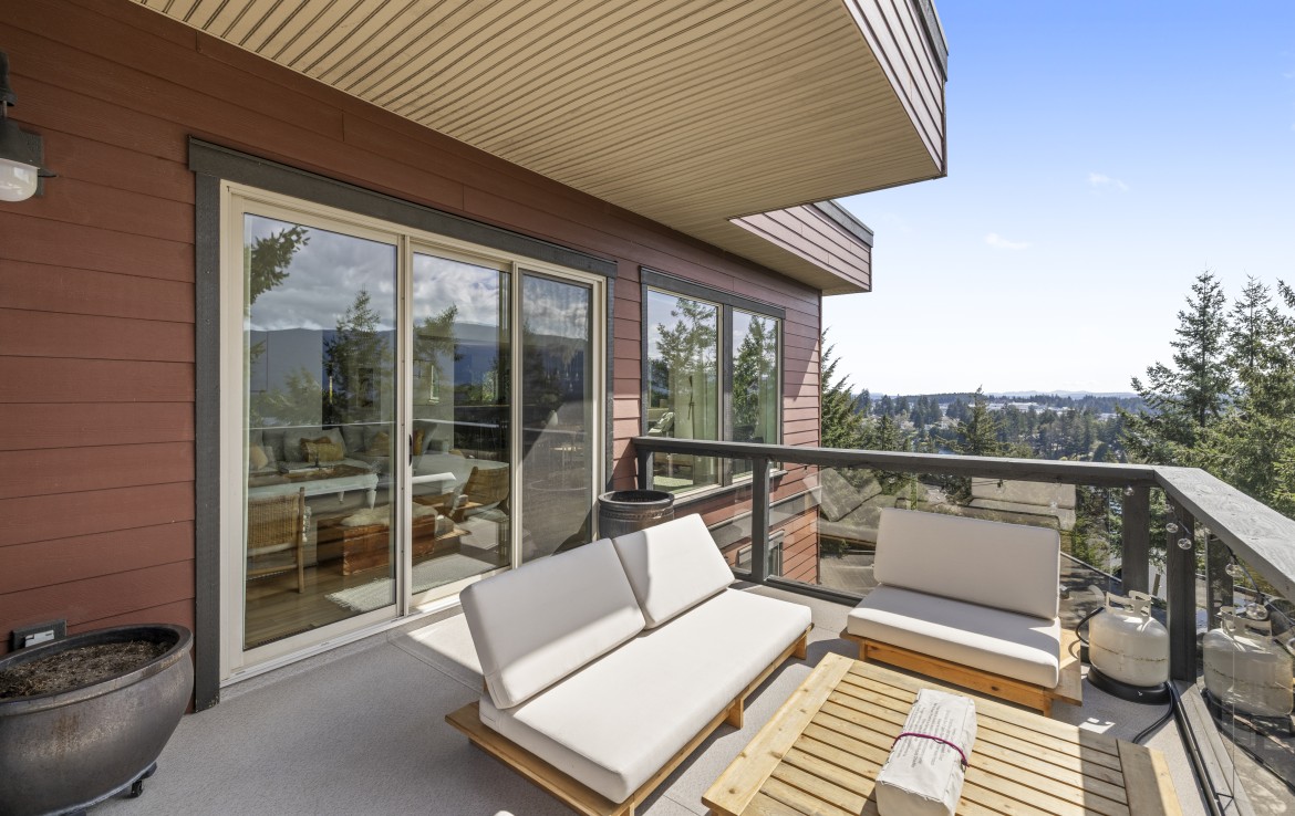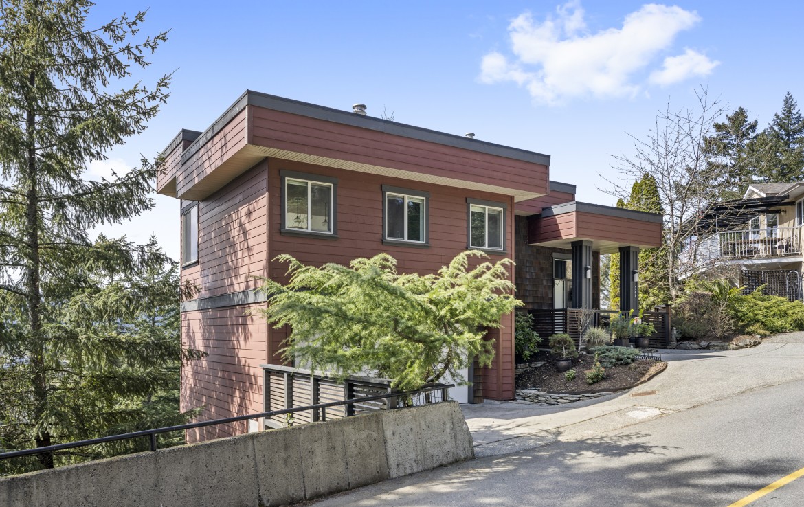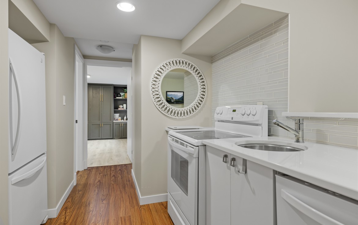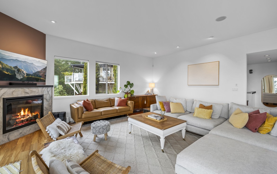 The lower level hosts the primary suite, complete with a private covered deck with sauna, nursery and dressing area with built-ins, plus a five-piece ensuite with dual sinks, jetted tub and separate shower. The third level offers two bedrooms including a one-bedroom legal suite with it’s own laundry and covered deck. Attached double garage and an abundance of storage space complete the home.