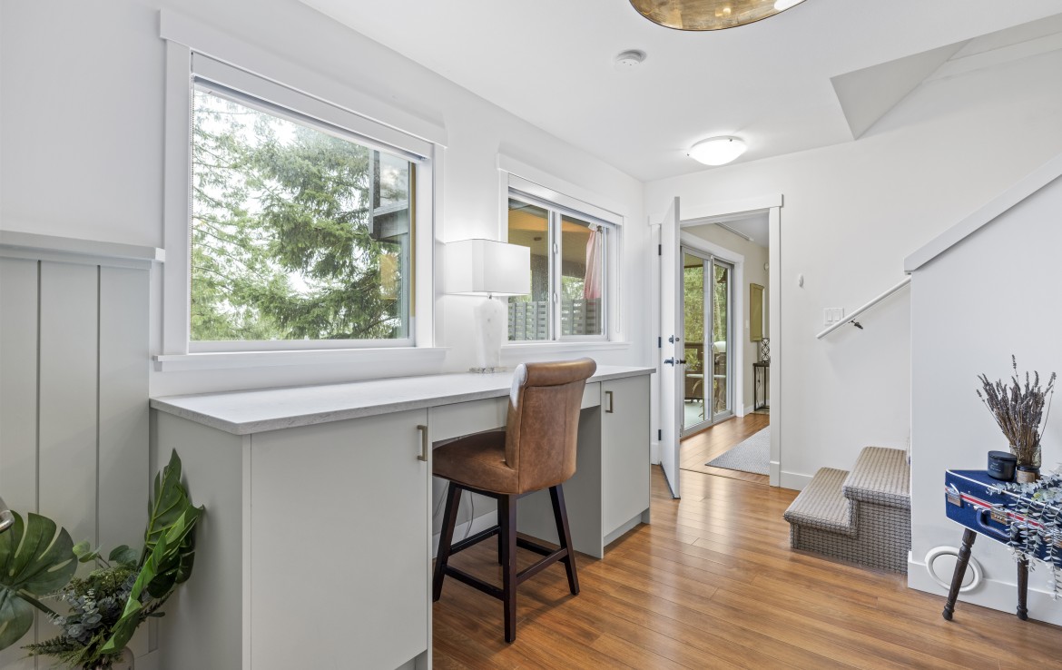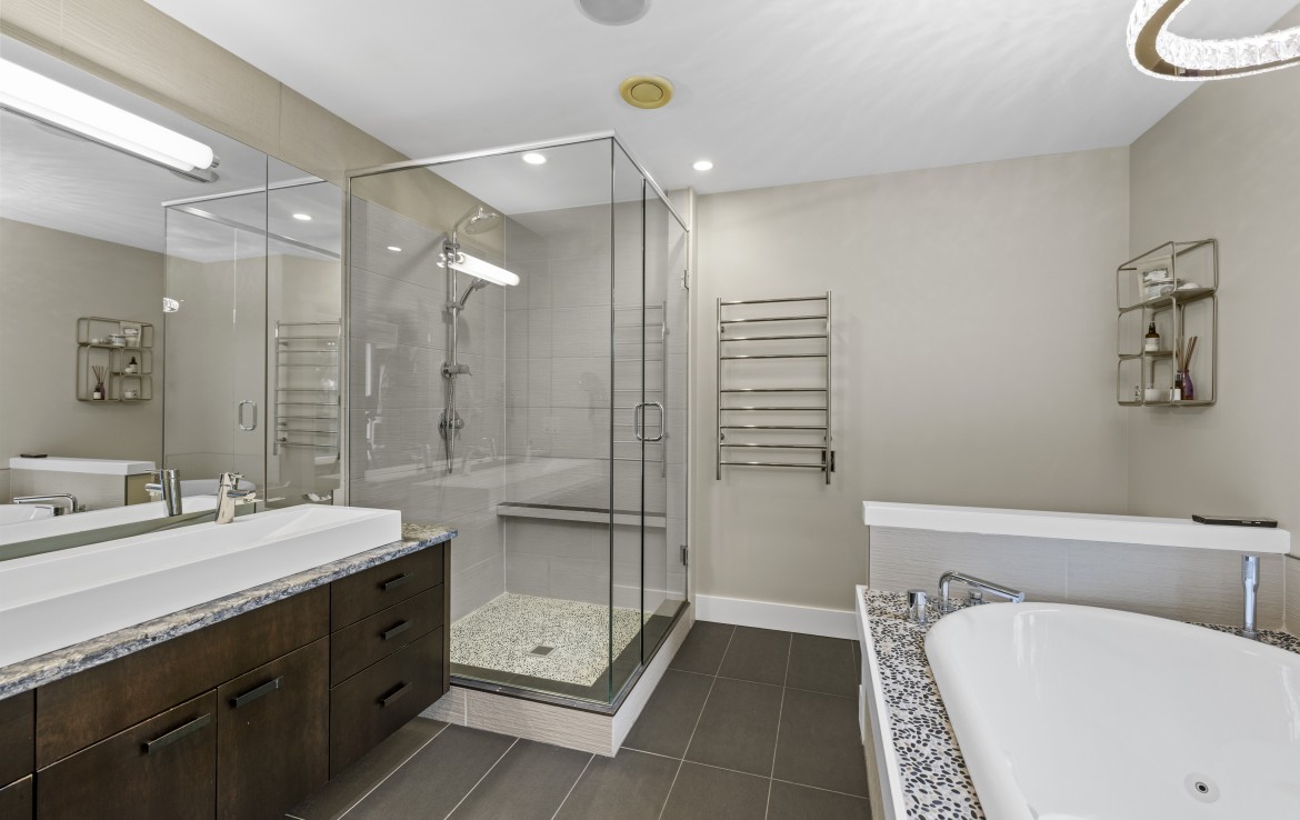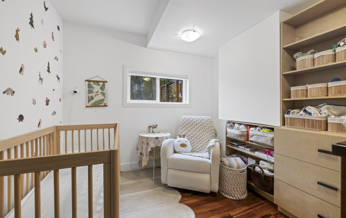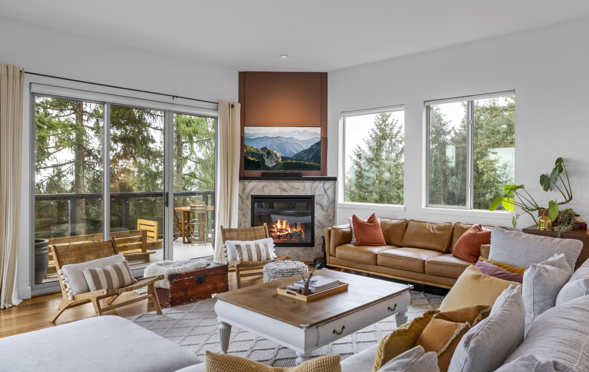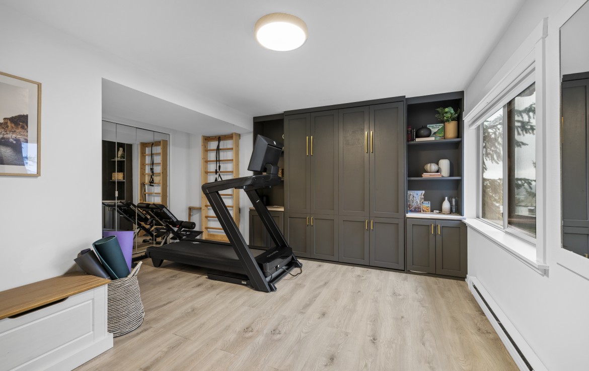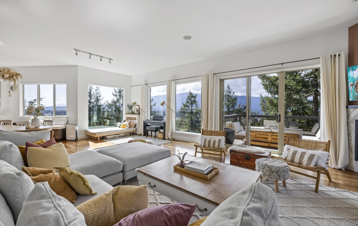 The lower level hosts the primary suite, complete with a private covered deck with sauna, nursery and dressing area with built-ins, plus a five-piece ensuite with dual sinks, jetted tub and separate shower. The third level offers two bedrooms including a one-bedroom legal suite with it’s own laundry and covered deck. Attached double garage and an abundance of storage space complete the home.