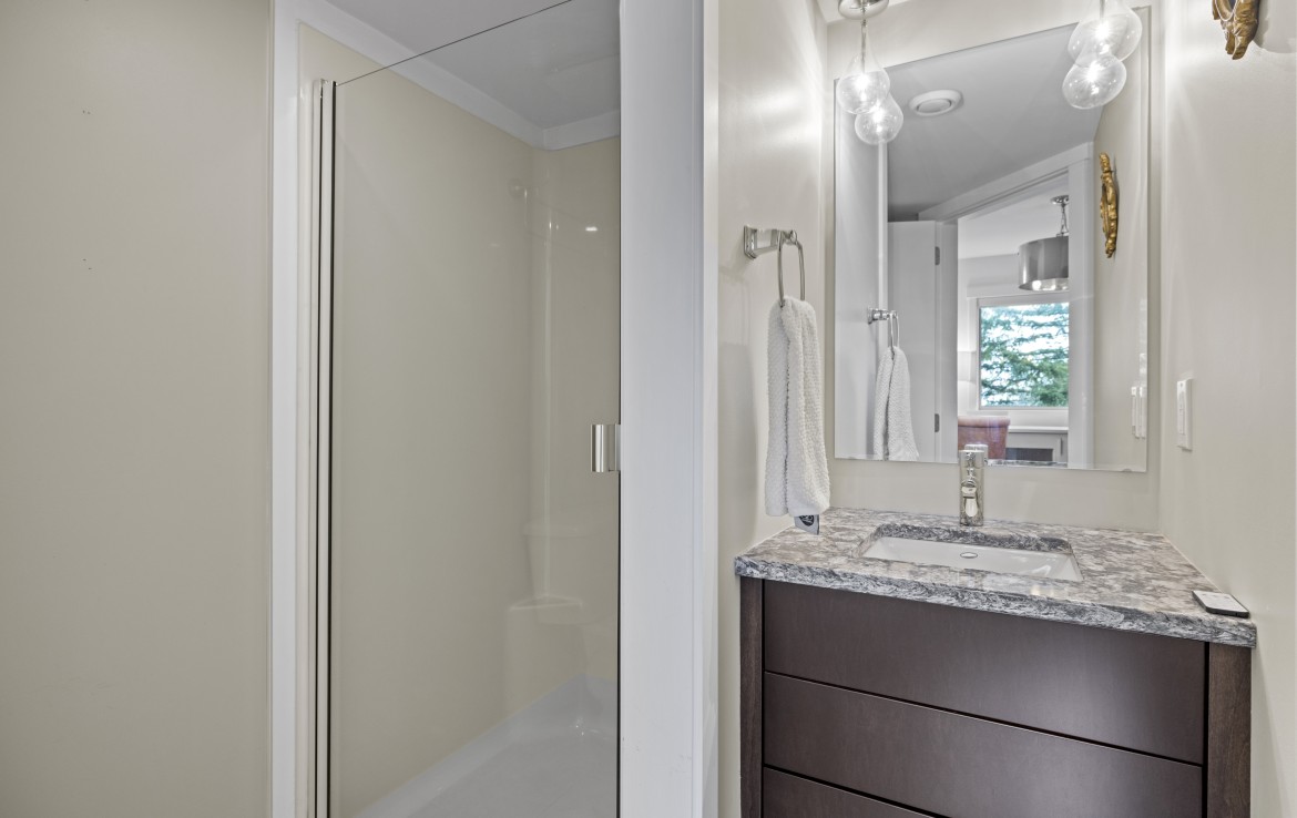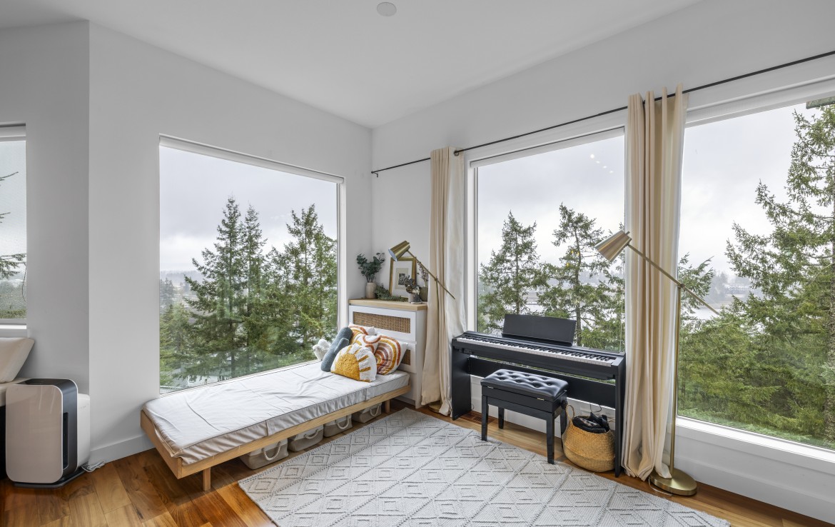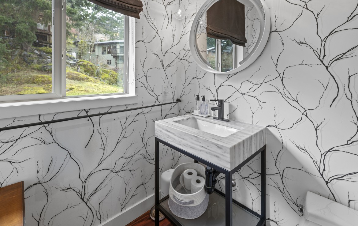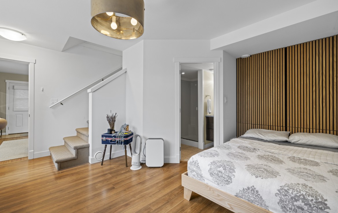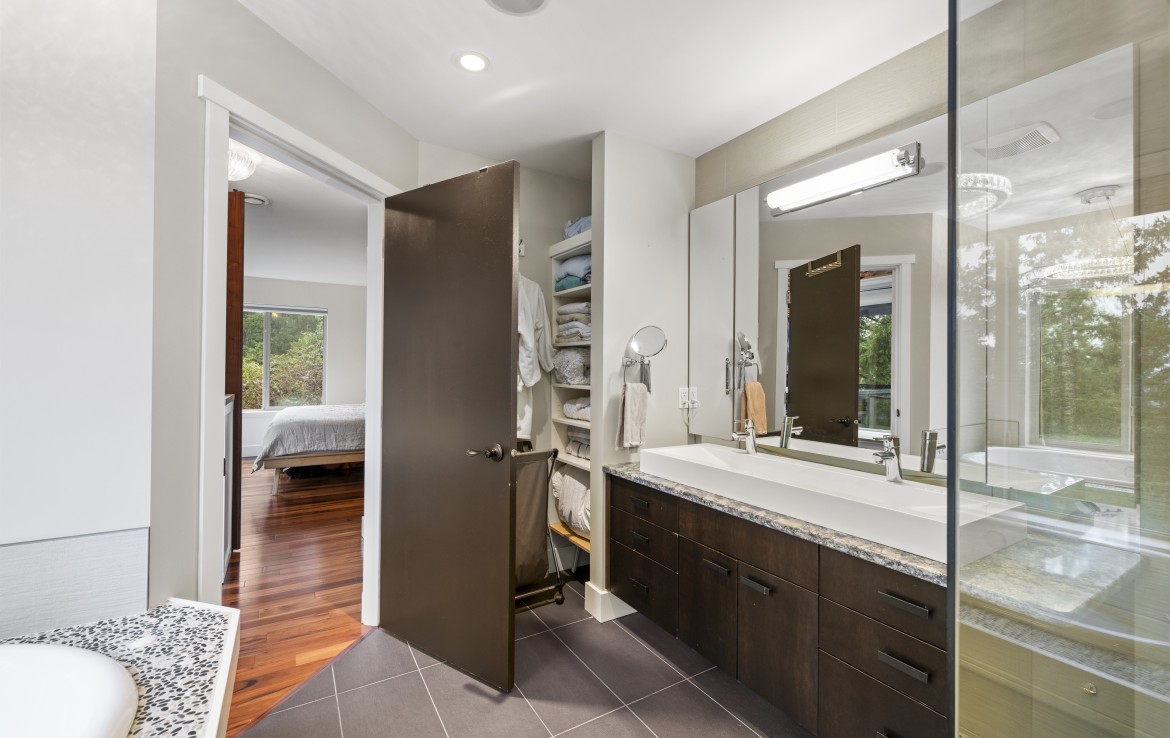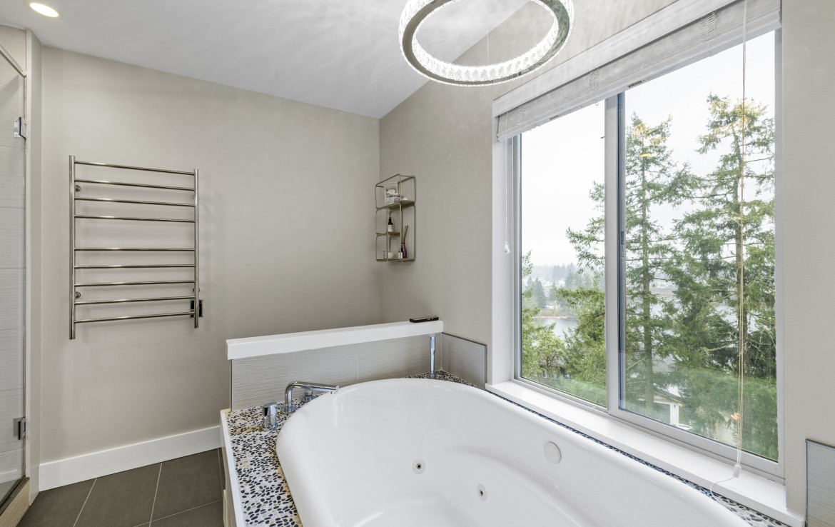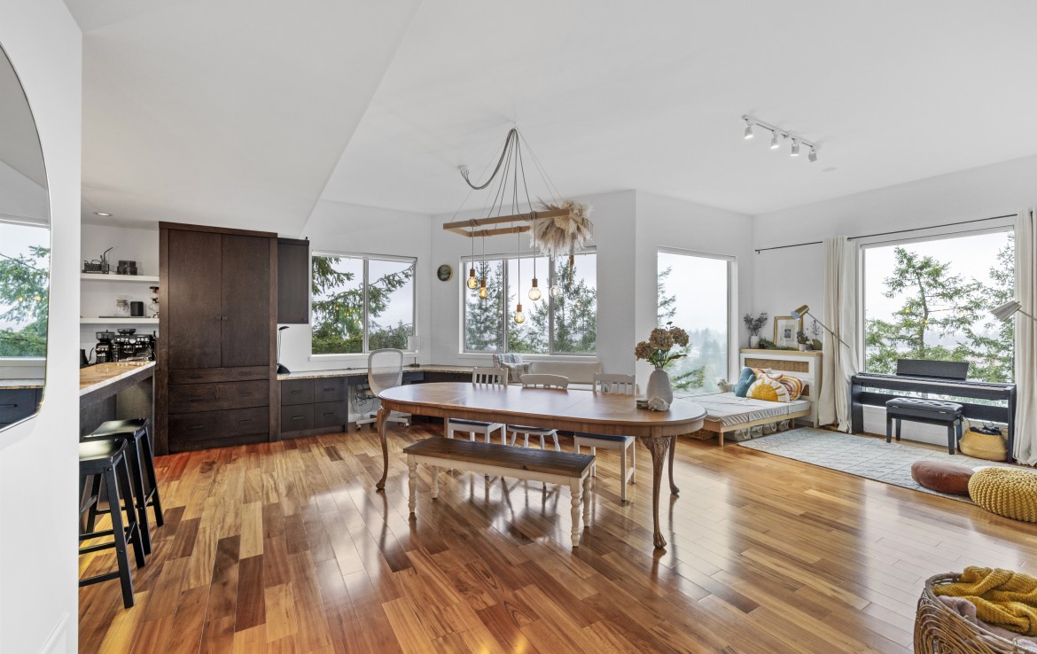 The lower level hosts the primary suite, complete with a private covered deck with sauna, nursery and dressing area with built-ins, plus a five-piece ensuite with dual sinks, jetted tub and separate shower. The third level offers two bedrooms including a one-bedroom legal suite with it’s own laundry and covered deck. Attached double garage and an abundance of storage space complete the home.