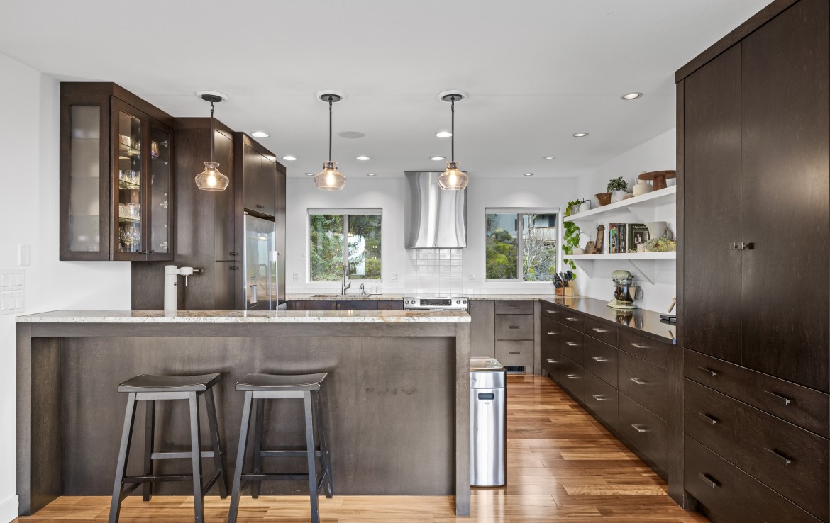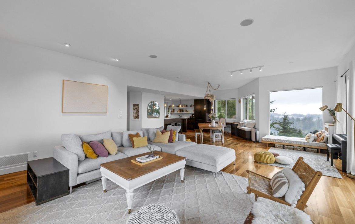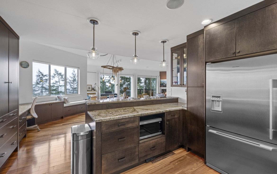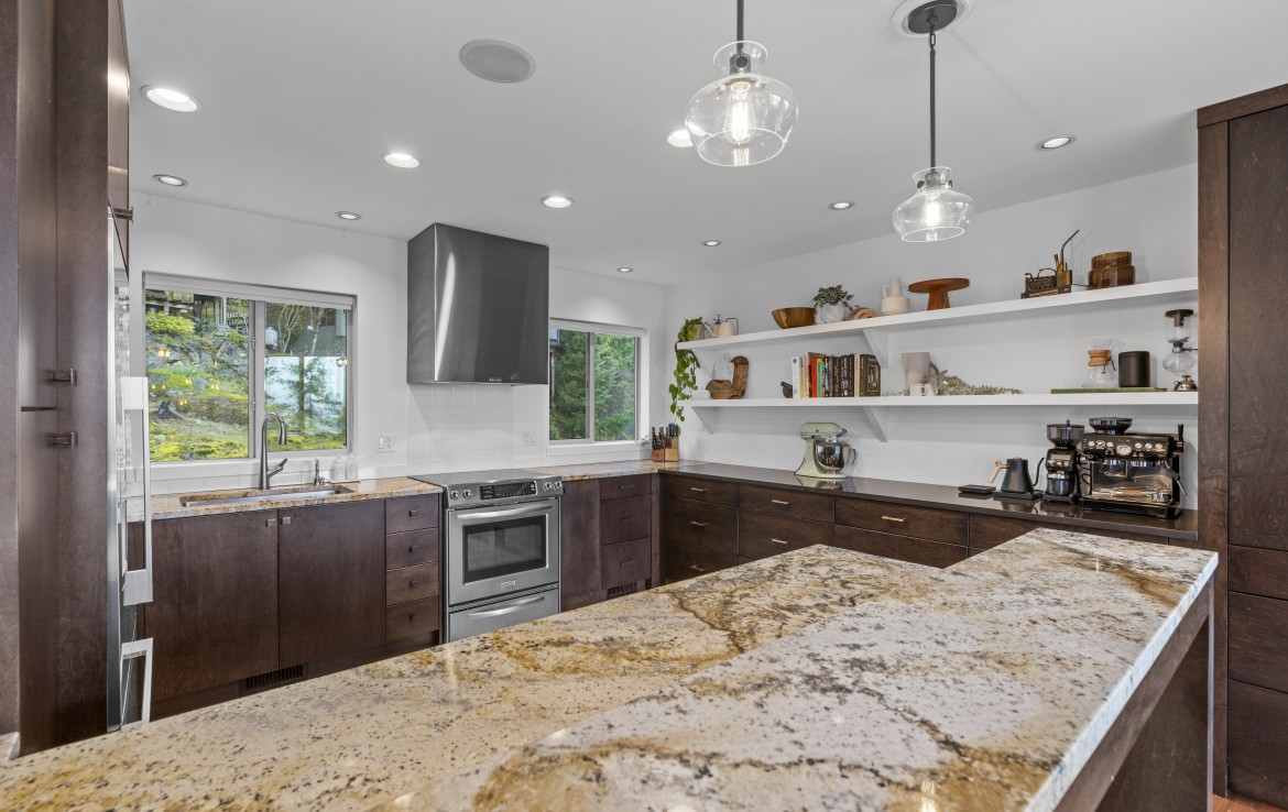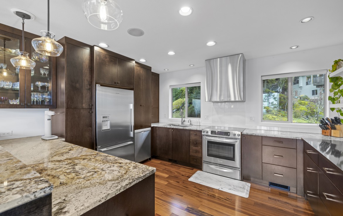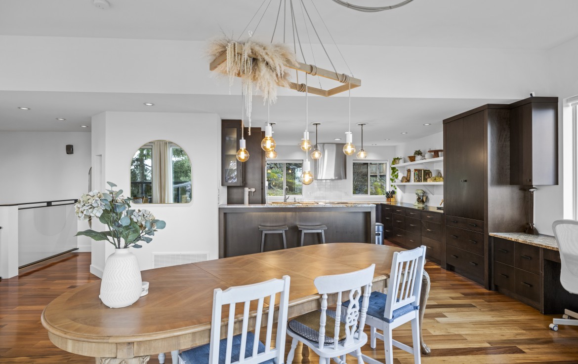 Perched in a much sought-after Nanaimo location, this unique, immaculate, custom home offers a spacious multi-level design with excellent versatility and stunning lake views is truly an entertainer’s dream. The main level features an open-concept great room with high ceilings, wood flooring and a gas fireplace. The stunning kitchen includes stainless appliances, great counter space, open shelving and plenty of storage and a seamless flow into the dining and living areas.