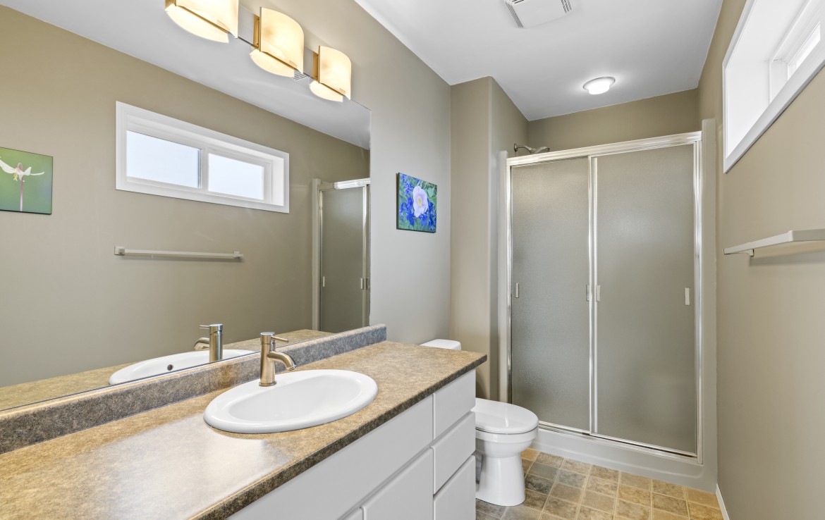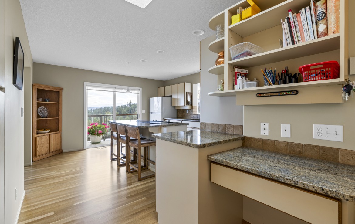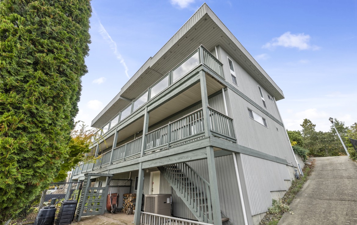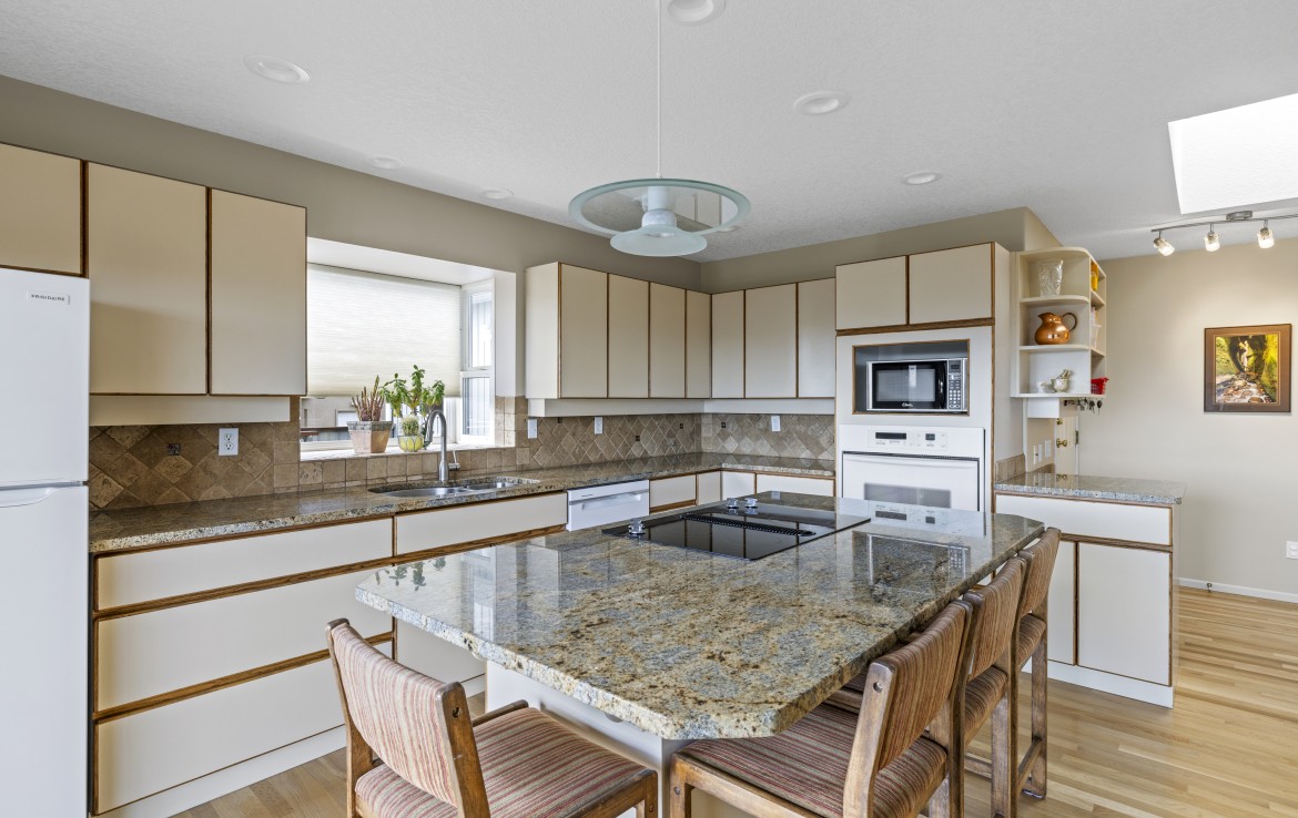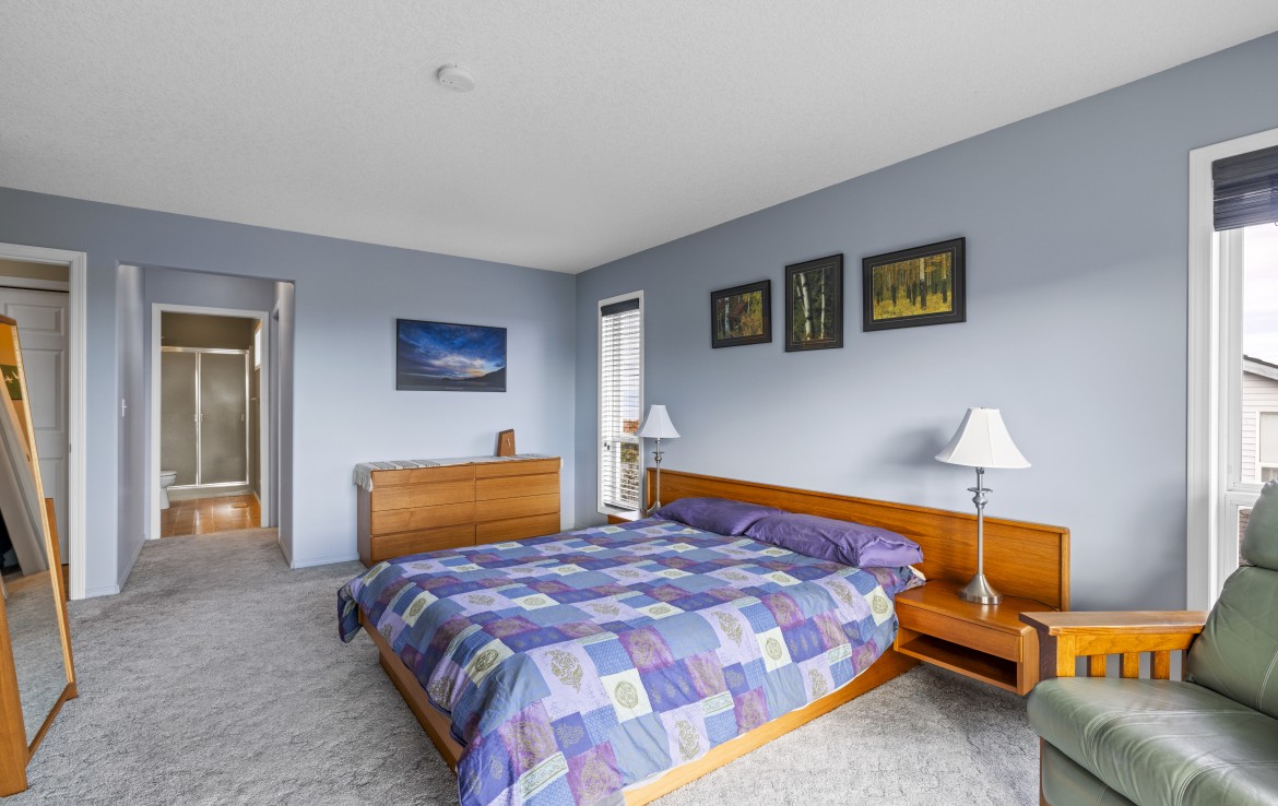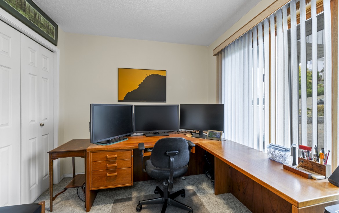 Enjoy stunning panoramic views stretching from the ocean to Mount Benson from this impressive home. Floor-to-ceiling windows and refinished hardwood flooring enhance the main living areas. The spacious kitchen features a large centre island with an eating bar leading to a generous dining room and living room with gas fireplace. The main level includes three bedrooms, including a primary with a three-piece ensuite and walk-in closet, plus a three-piece main bathroom.