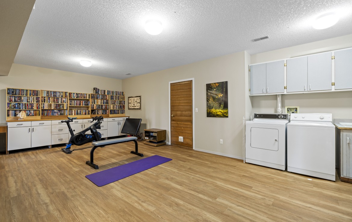 The lower level offers excellent flexibility with a fourth bedroom, family room, hobby room, large rec room with laundry, sauna, and three-piece bathroom. An additional unfinished level provides workshop space and storage.