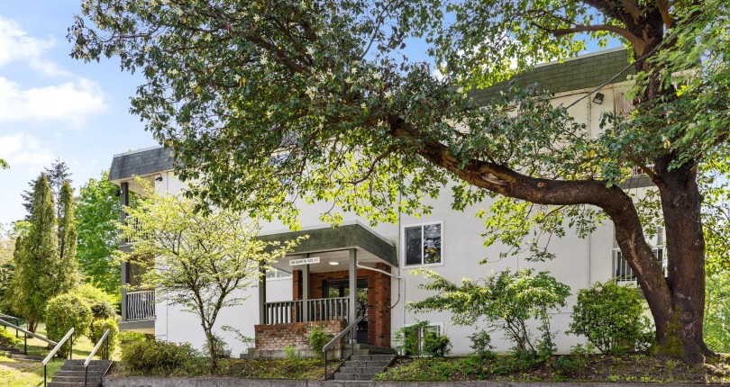 The functional kitchen features two appliances, a stylish backsplash, and white cabinetry. The bright living room opens onto a covered deck, perfect for enjoying your morning coffee. An in-unit storage room provides added convenience. The pet-friendly complex allows up to two cats OR one dog (max 50 lbs). The strata fee includes heat and hot water. For more information, see the 3D tour, video and floor plan. All data and measurements are approx. and must be verified if fundamental.