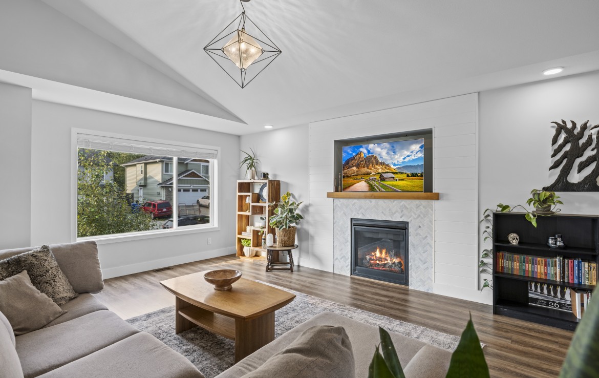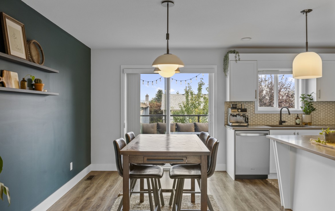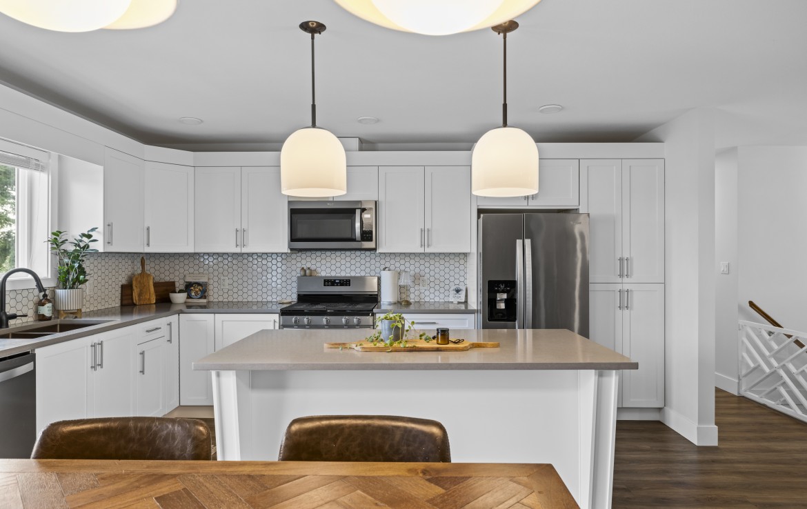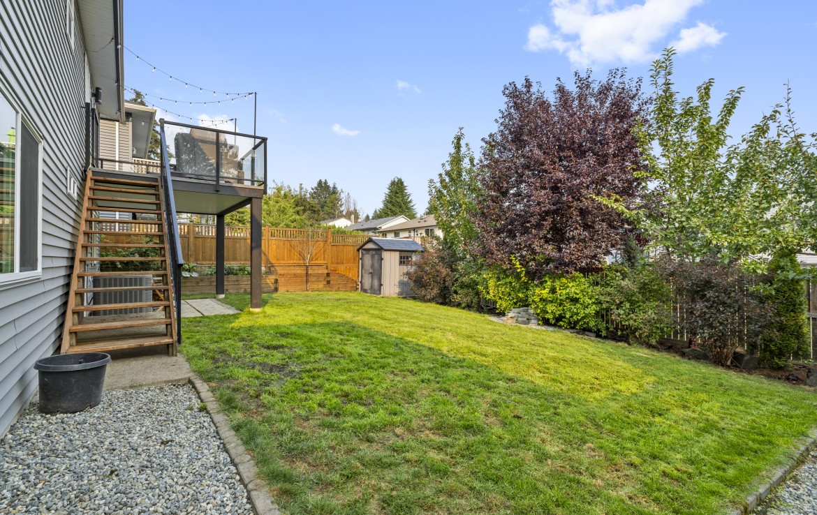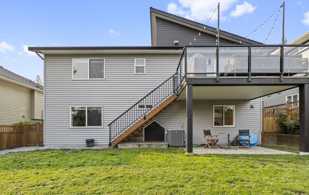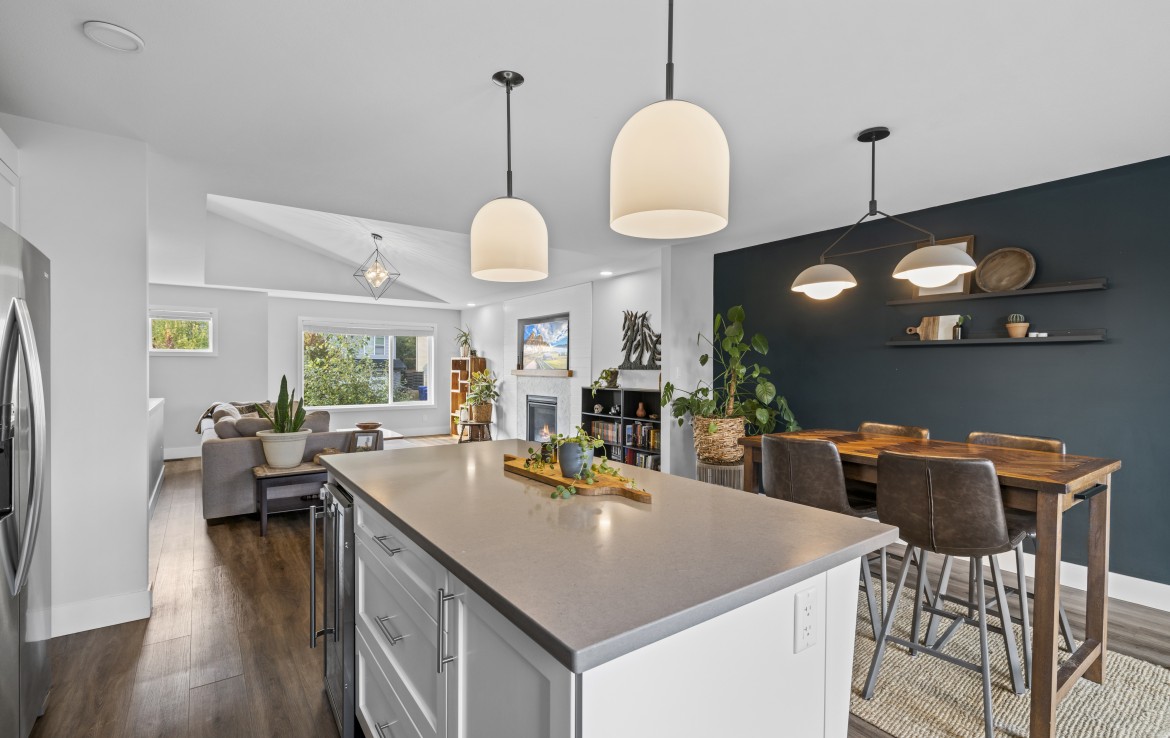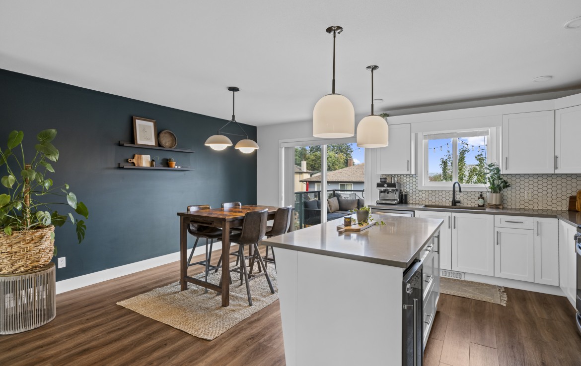 Located on a desirable cul-de-sac, this newer home offers an open concept main level with Westcoast-style vaulted ceilings. The kitchen features four stainless appliances, abundant white cabinetry, a stylish backsplash, and an island with eating bar. A gas fireplace warms the living room, while the dining area provides access to a deck with stairs leading to the backyard. The main level includes three bedrooms, with the spacious primary offering a walk-in closet and three-piece ensuite.