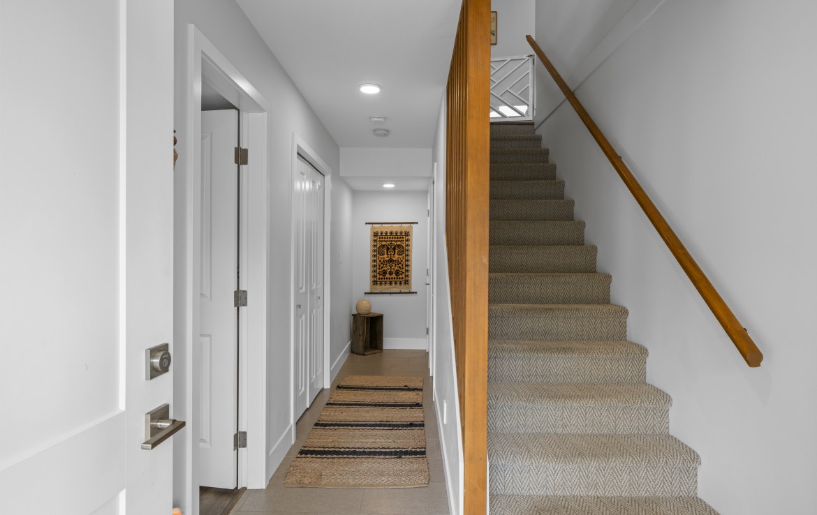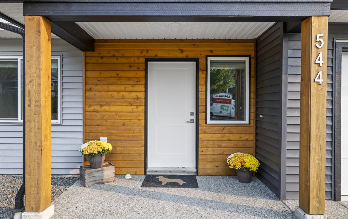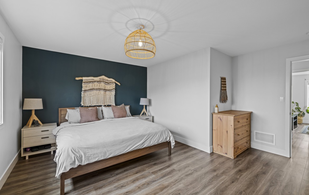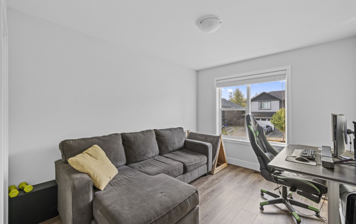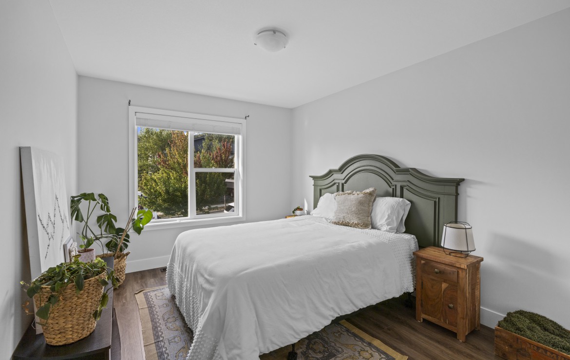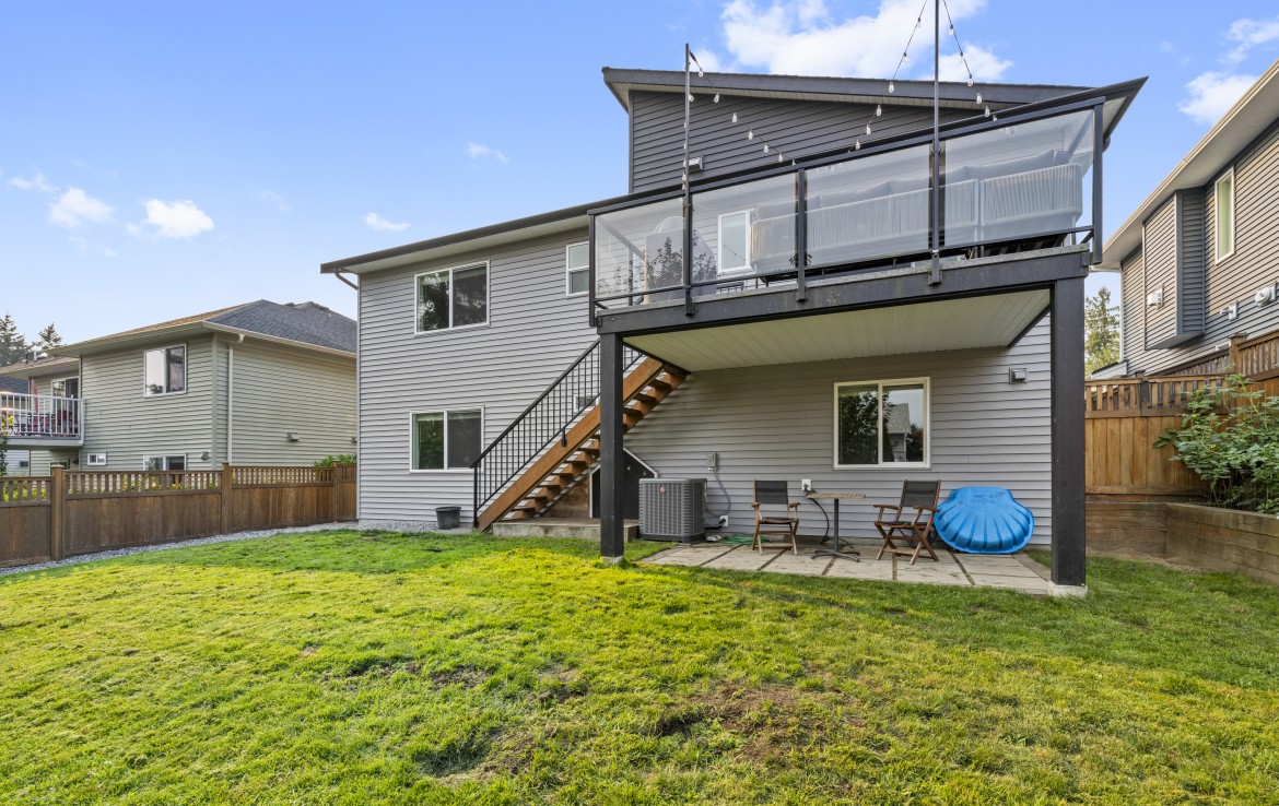Located on a desirable cul-de-sac, this newer home offers an open concept main level with Westcoast-style vaulted ceilings. The kitchen features four stainless appliances, abundant white cabinetry, a stylish backsplash, and an island with eating bar. A gas fireplace warms the living room, while the dining area provides access to a deck with stairs leading to the backyard. The main level includes three bedrooms, with the spacious primary offering a walk-in closet and three-piece ensuite.