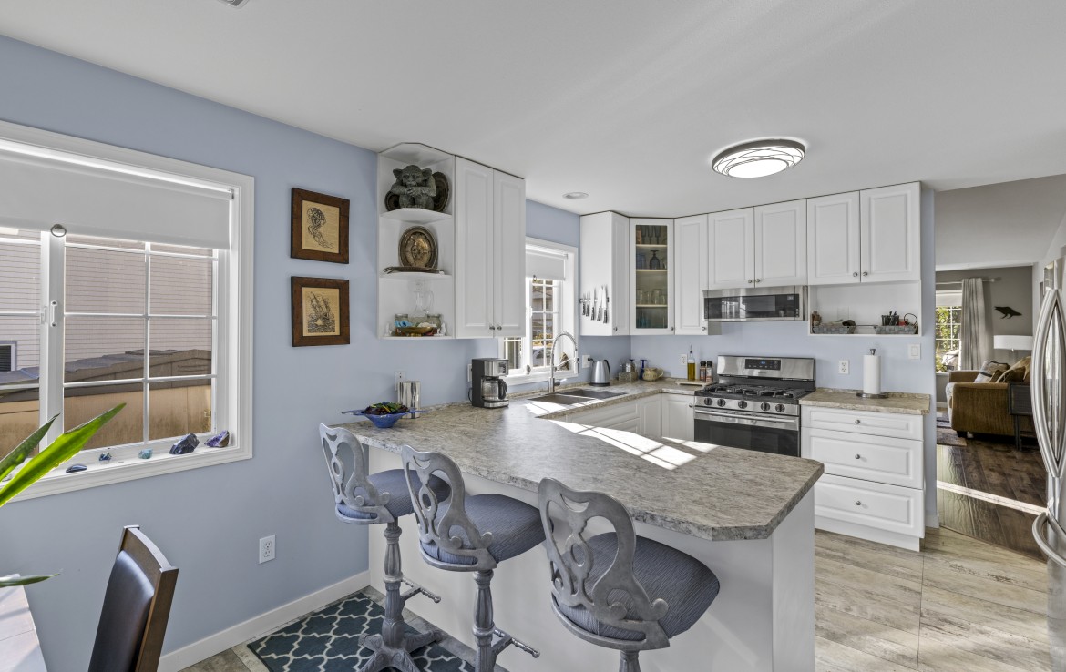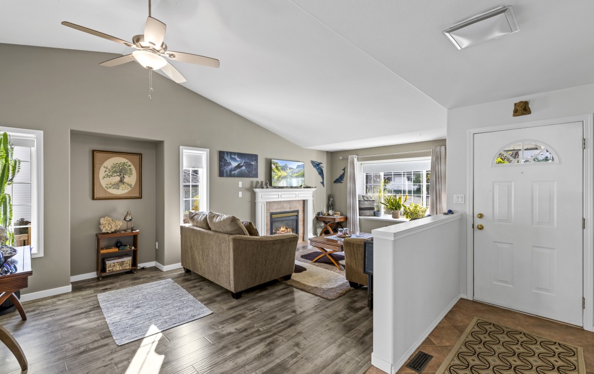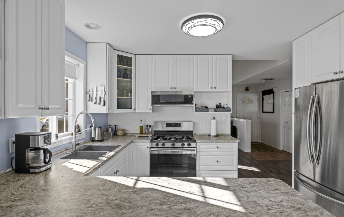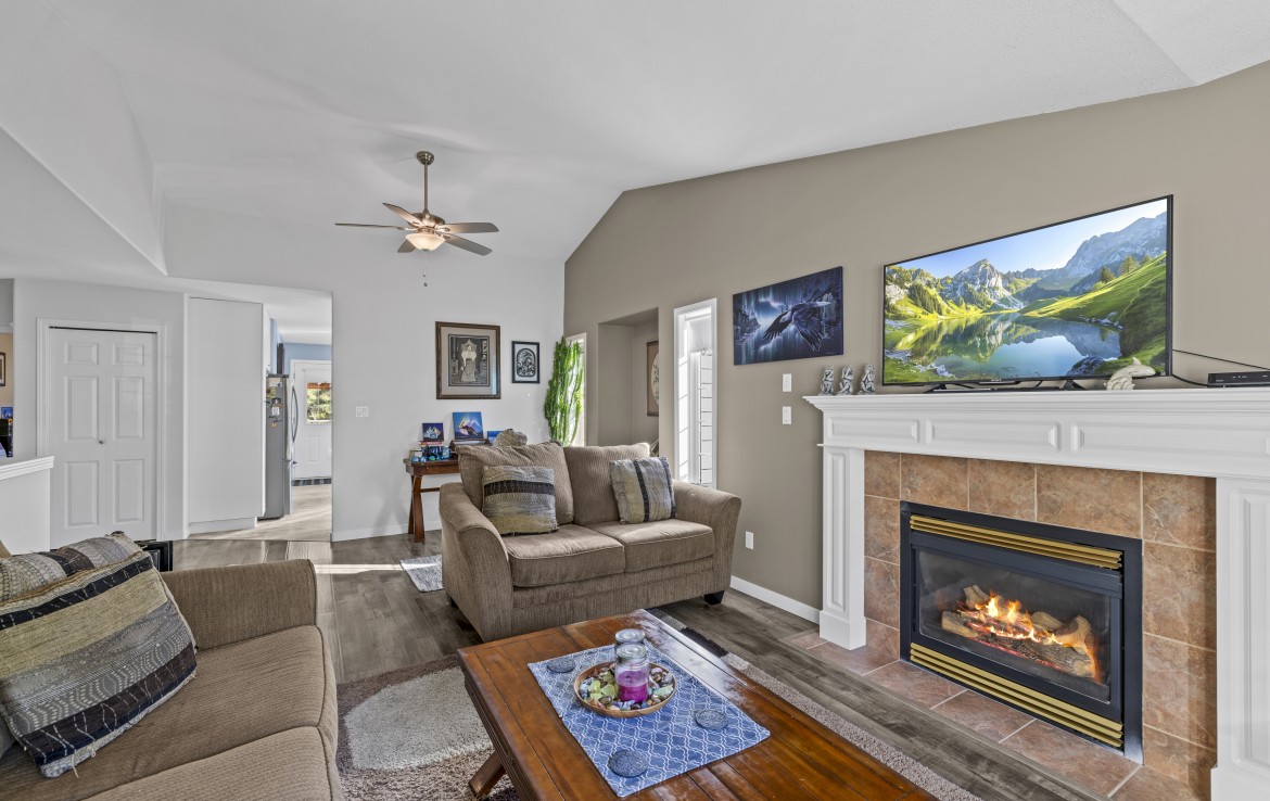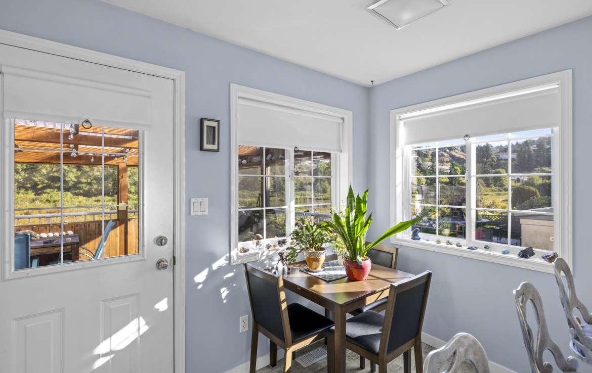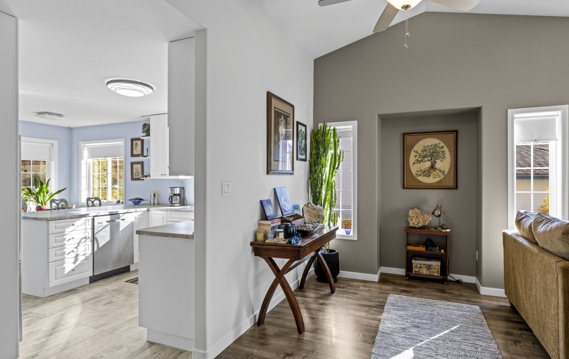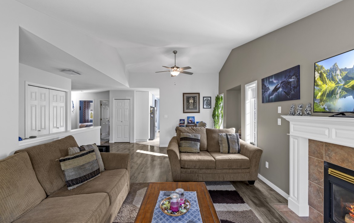 This half duplex in desirable Sunshine Ridge backs onto parkland and offers peaceful pond views. The vaulted ceiling in the living and dining rooms creates a spacious feel, complemented by a gas fireplace in the living room. The kitchen boasts stainless appliances including a gas stove, an eating bar, and a breakfast nook.