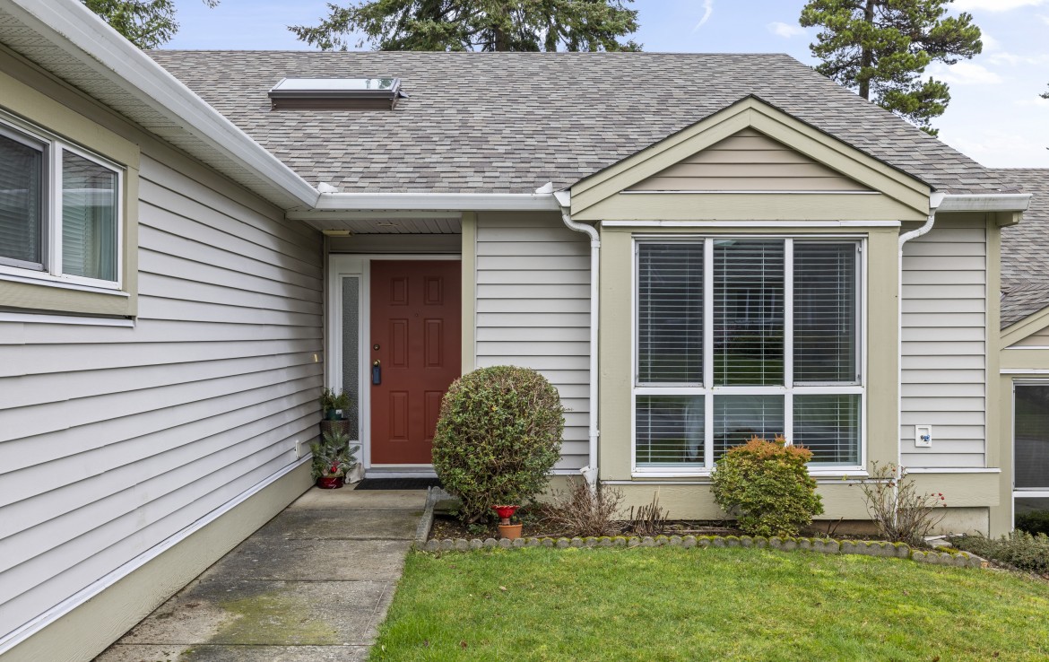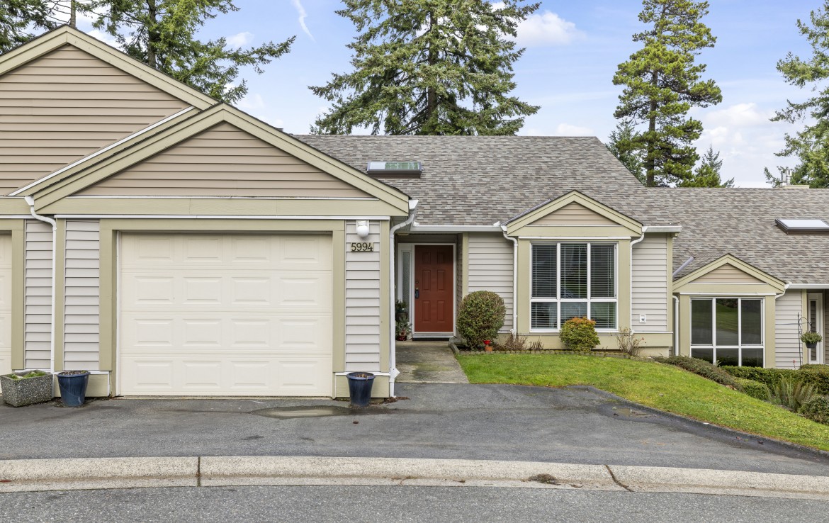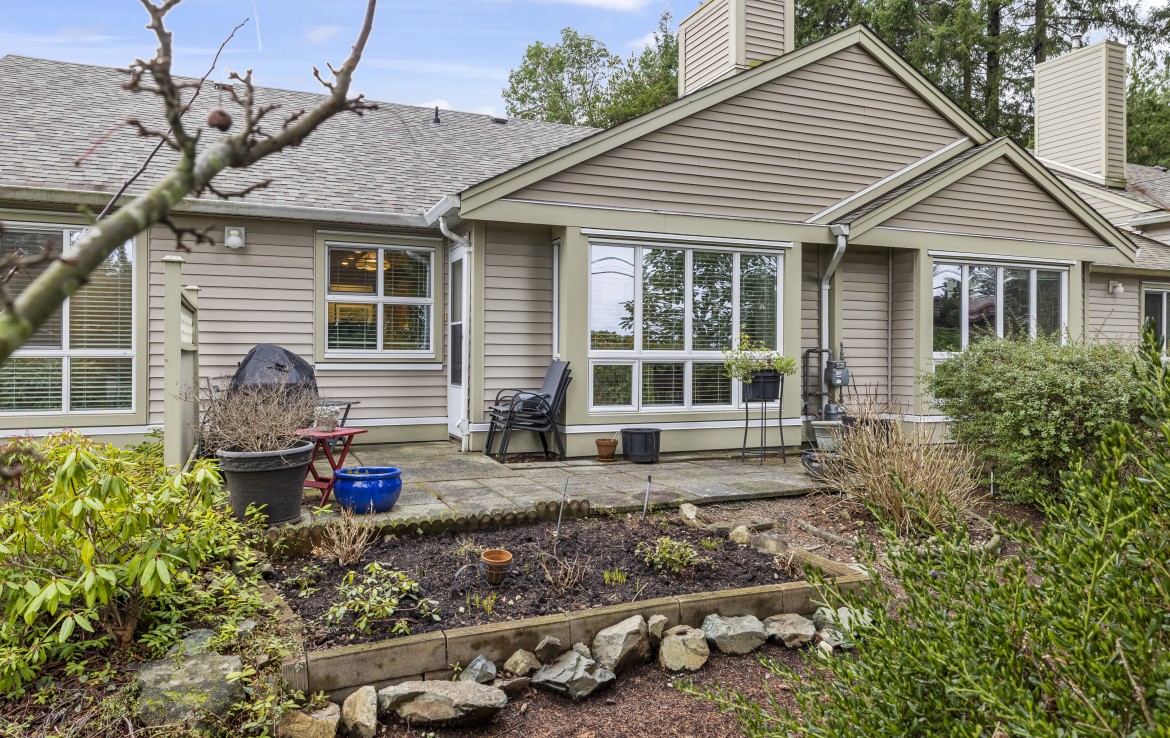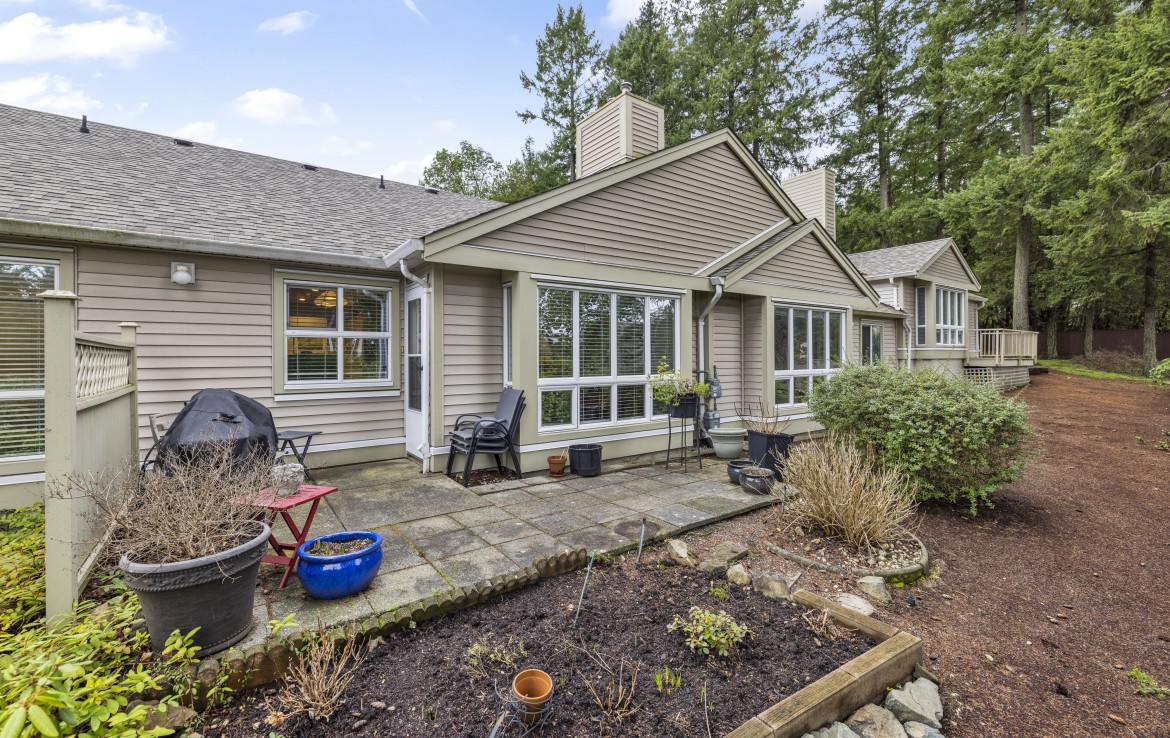 Welcome to this two bedroom North Nanaimo patio home. The unit offers a large open concept living and dining room area with gas fireplace. The kitchen features three appliances and eating nook overlooking the rear yard. The patio with garden area is accessed from the living room. The primary bedroom boasts dual closets and a four piece ensuite. Completing the home are a second bedroom, three piece bathroom, large laundry room and skylit foyer with vaulted ceiling.