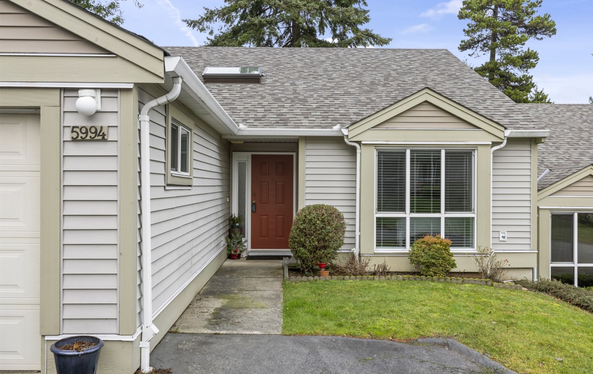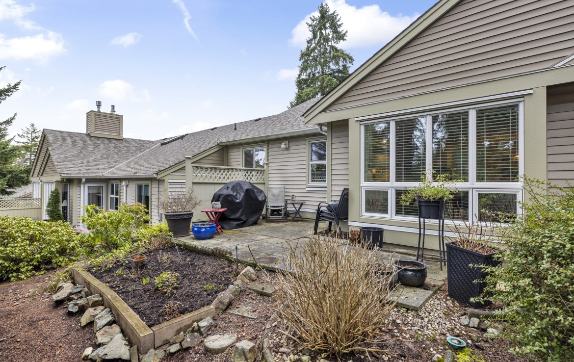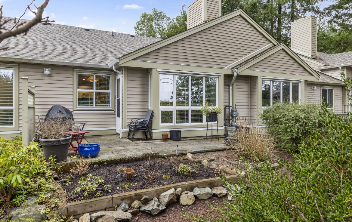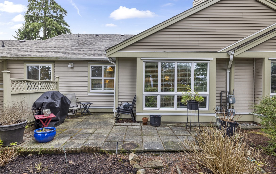 Welcome to this two bedroom North Nanaimo patio home. The unit offers a large open concept living and dining room area with gas fireplace. The kitchen features three appliances and eating nook overlooking the rear yard. The patio with garden area is accessed from the living room. The primary bedroom boasts dual closets and a four piece ensuite. Completing the home are a second bedroom, three piece bathroom, large laundry room and skylit foyer with vaulted ceiling.