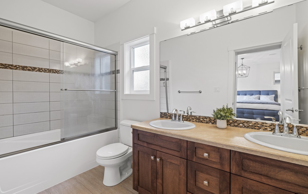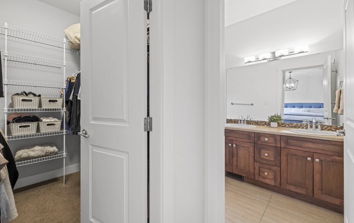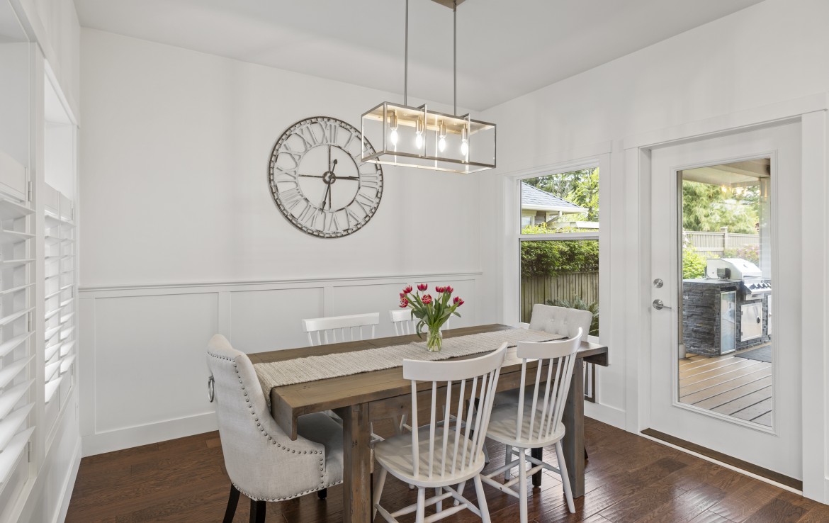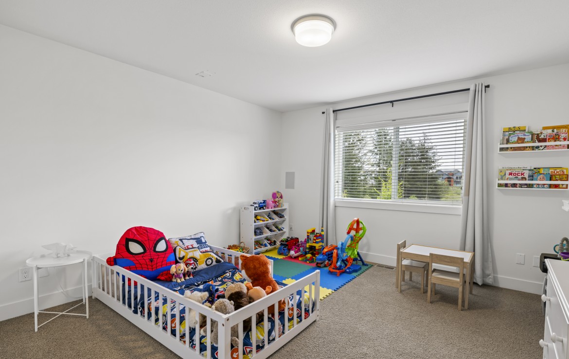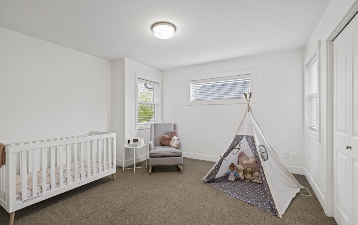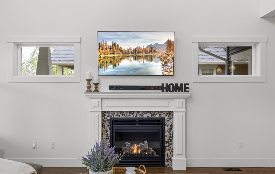 Inside, the open concept main level features a bright living room with 18’ ceilings, gas fireplace, and abundant windows. The kitchen is a standout with granite counters, double islands, and a walk-in pantry. The primary bedroom on the main includes deck access, walk-in closet, and a 5-piece ensuite. A two piece bathroom, laundry and double garage complete the main.