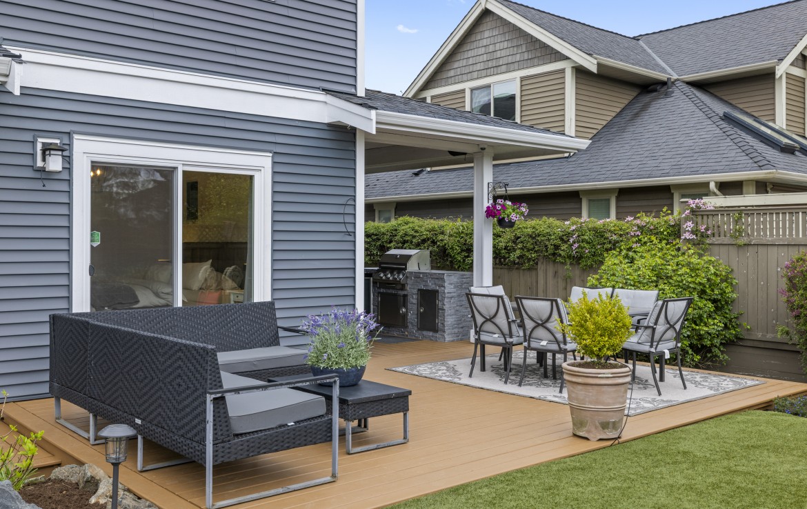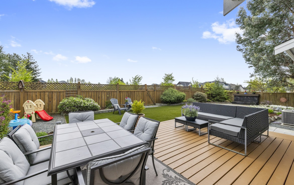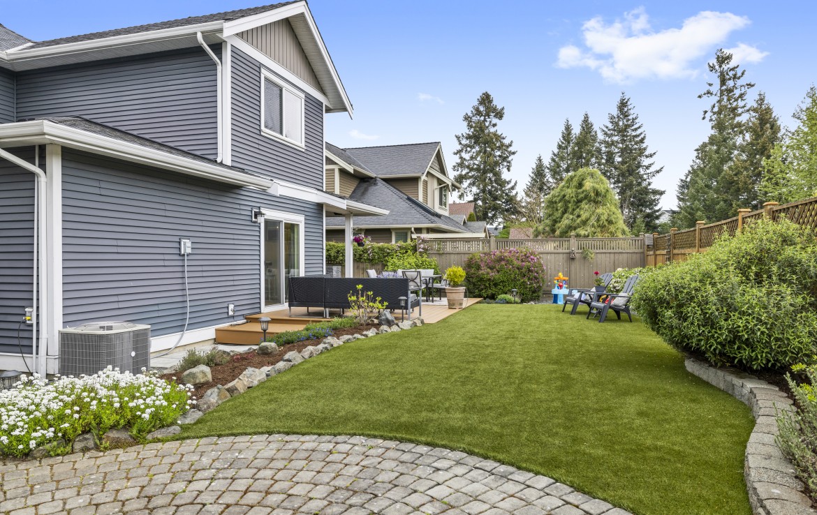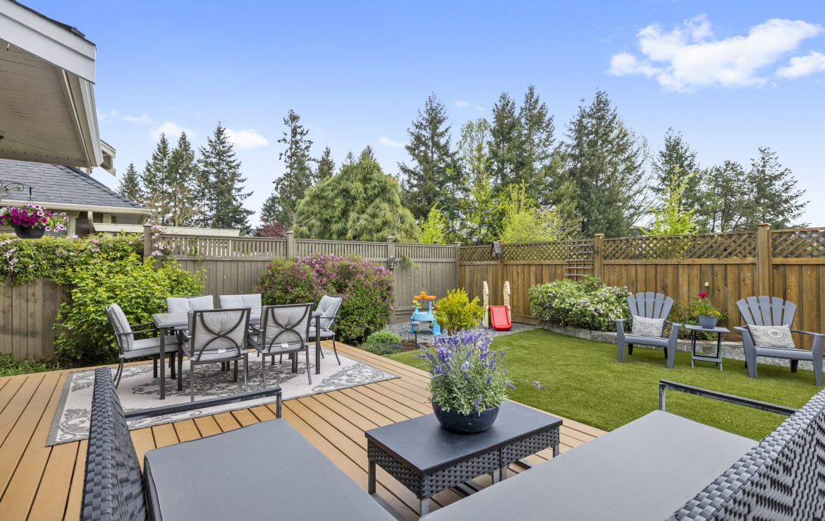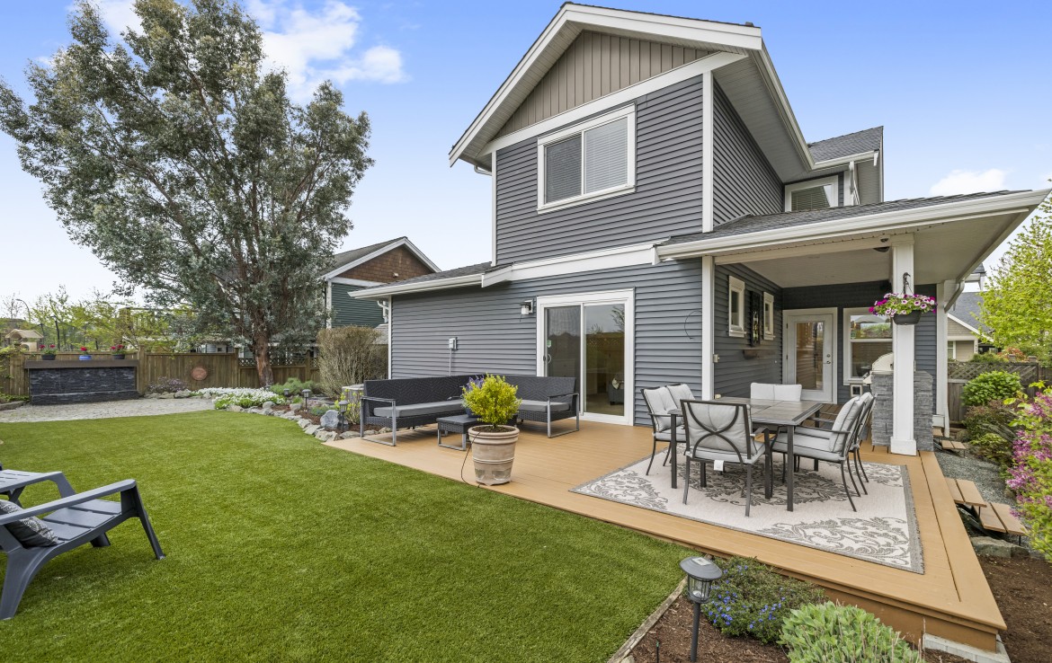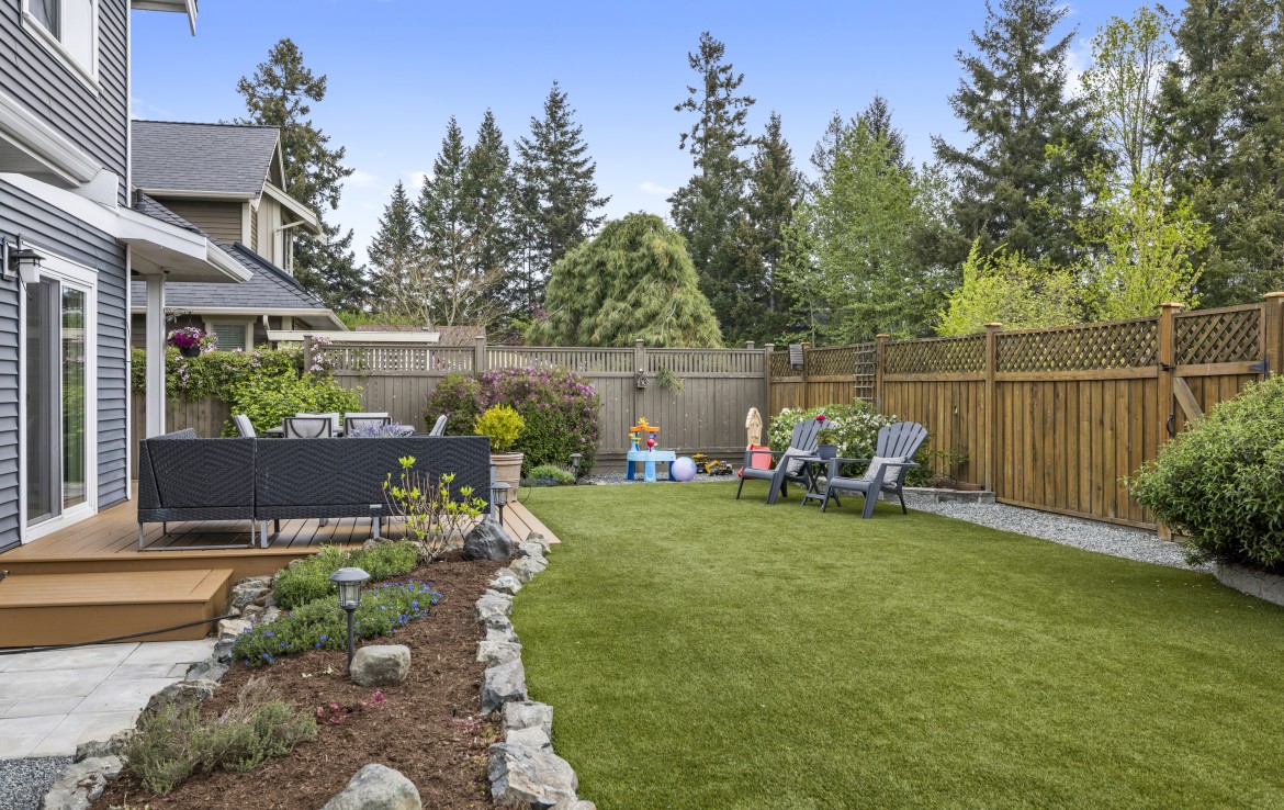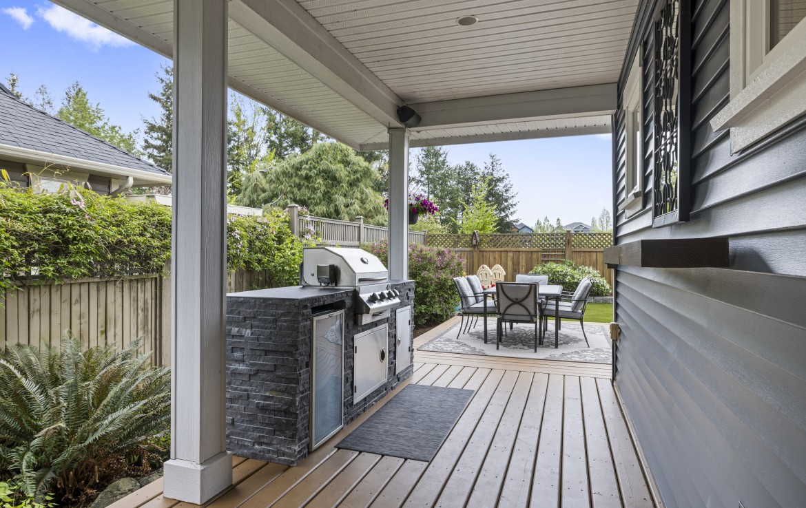 Backing onto a park with direct gate access, this impressive home offers an incredible outdoor lifestyle in a sought-after neighbourhood with tree-lined boulevards. The stunning yard is an entertainer’s dream with a new deck, covered outdoor kitchen with built-in BBQ, fridge and storage, artificial turf, custom water feature, and hot tub-ready pad.