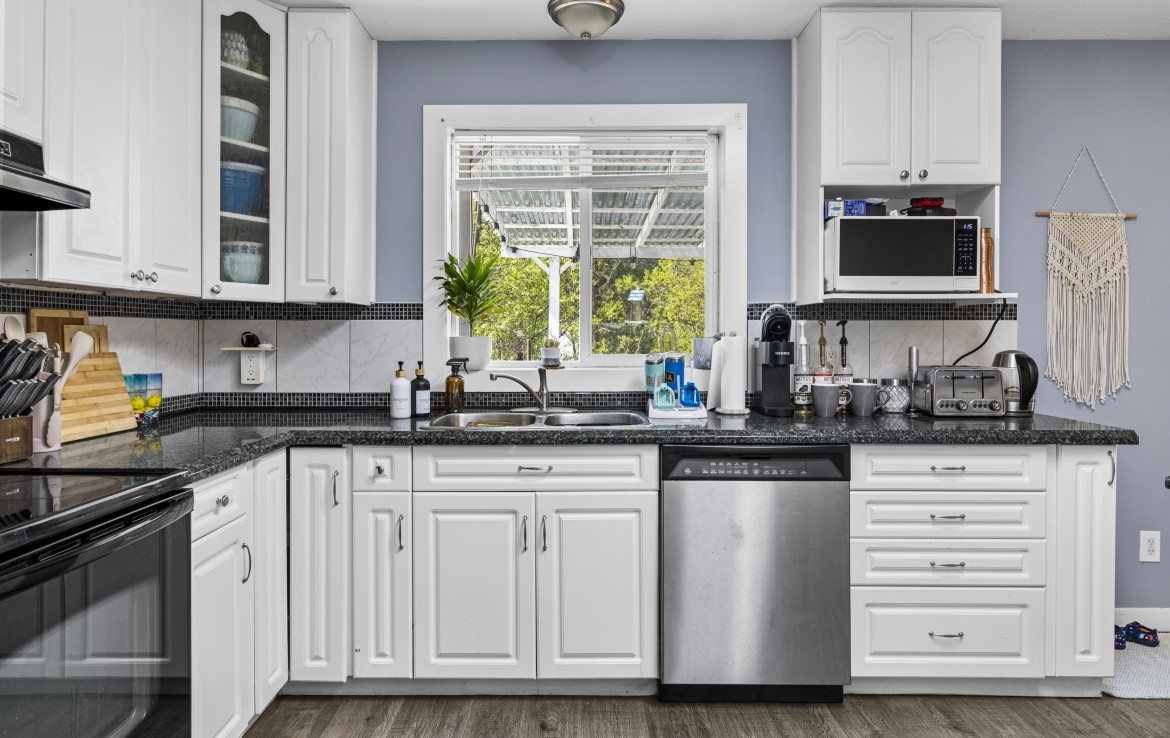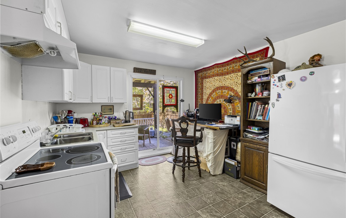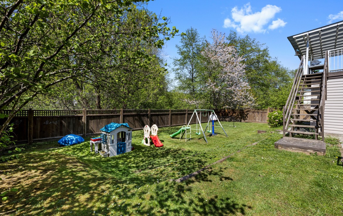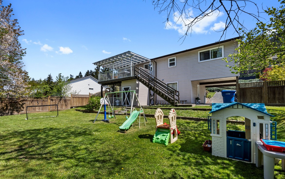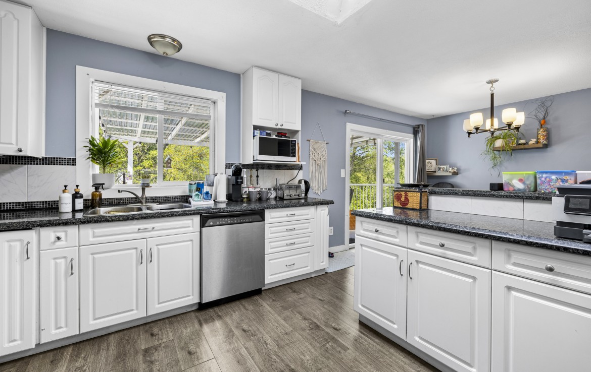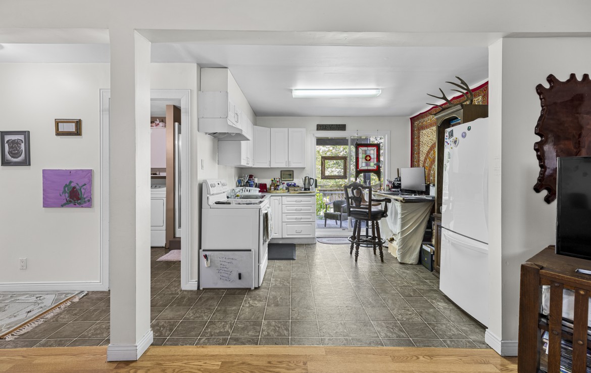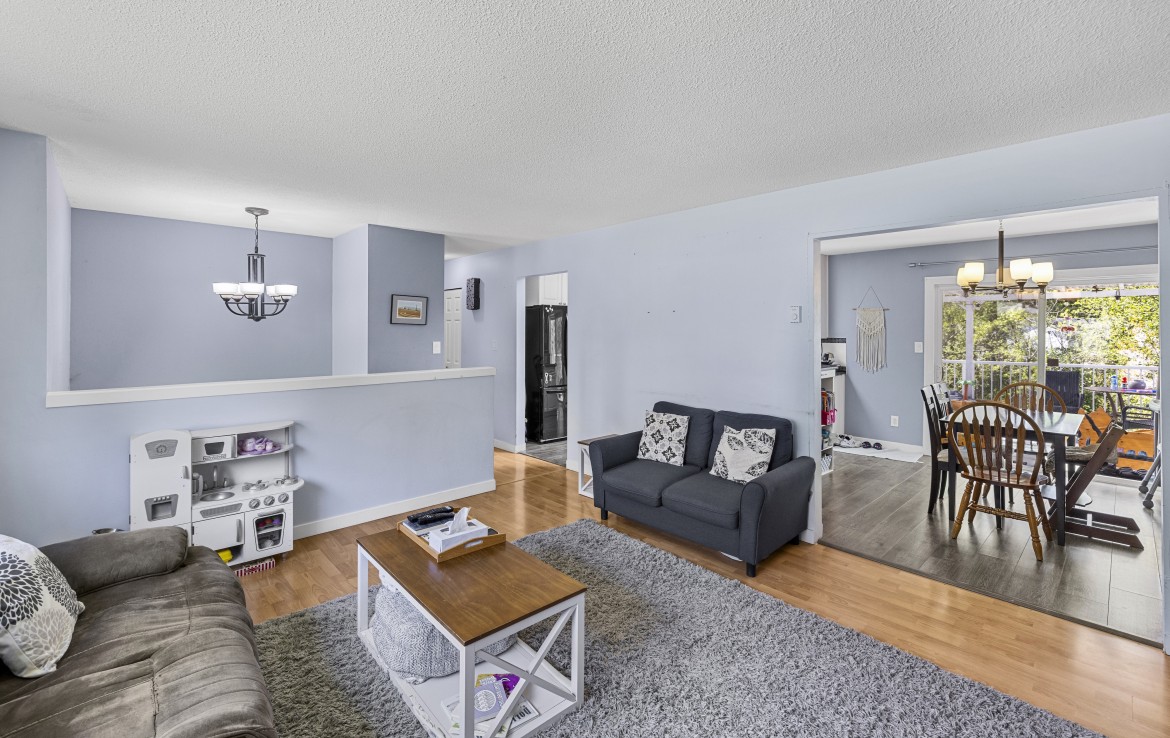 Welcome to this versatile five-bedroom home in a desirable family-friendly neighborhood, complete with a two-bedroom authorized suite. The main level offers a bright and spacious living room, a dining area, and a functional kitchen with an eating bar and three included appliances. Three bedrooms and a four-piece bathroom complete the main floor layout. Enjoy outdoor living with a covered deck overlooking the private, fenced yard that backs onto peaceful parkland.