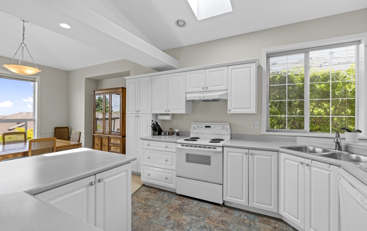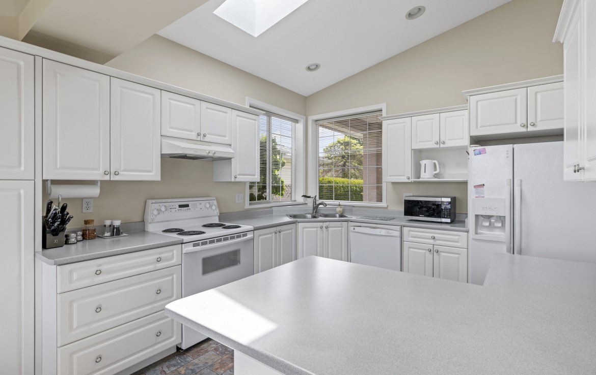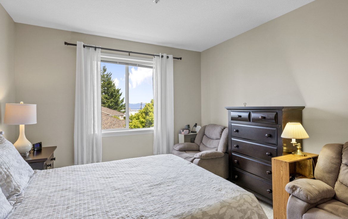 Situated in the desirable 55+ community of The Terraces, this main-level entry townhouse with a walk-out basement offers a practical and inviting layout in a convenient North Nanaimo location close to all amenities. The open-concept main floor boasts a living room with a gas fireplace, dining area, and kitchen equipped with eating bar and three appliances. A balcony off the living room with distant ocean views provides a peaceful outdoor space. On this level, you’ll also find two bedrooms, including the primary with dual closets and three-piece ensuite, as well as a four-piece main bathroom and laundry area.