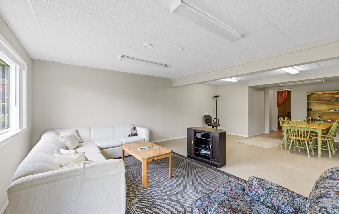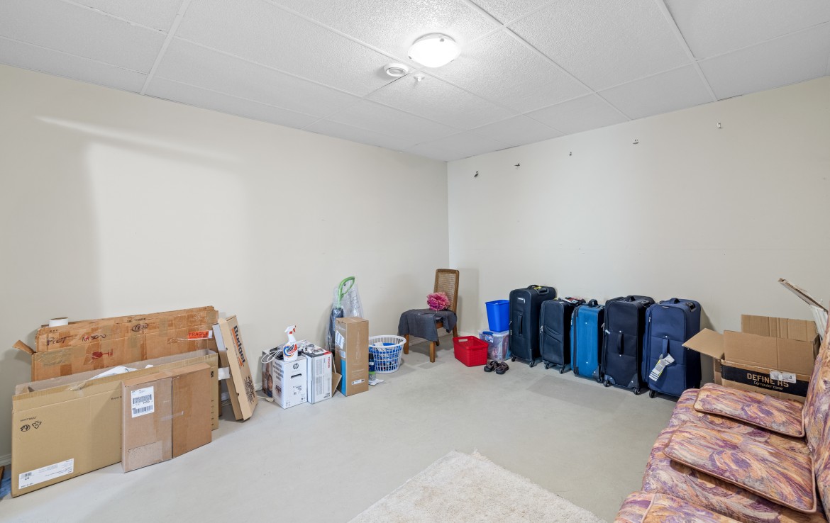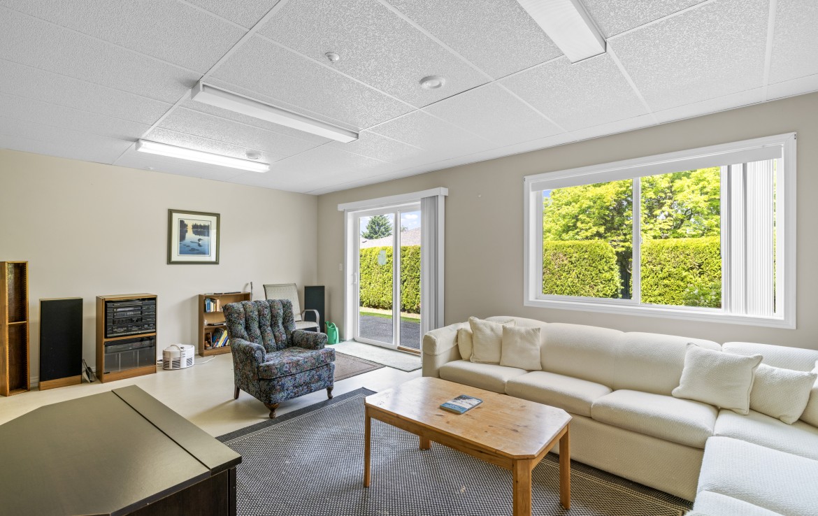 The lower level includes a spacious family room, third bedroom, and three-piece bathroom—ideal for guests. Additional features include a storage area and a dark room with a sink, perfect for creative projects. The complex features a strong sense of community, a clubhouse, and permits one dog or cat up to 12kg. All data and measurements are approx and must be verified if fundamental.