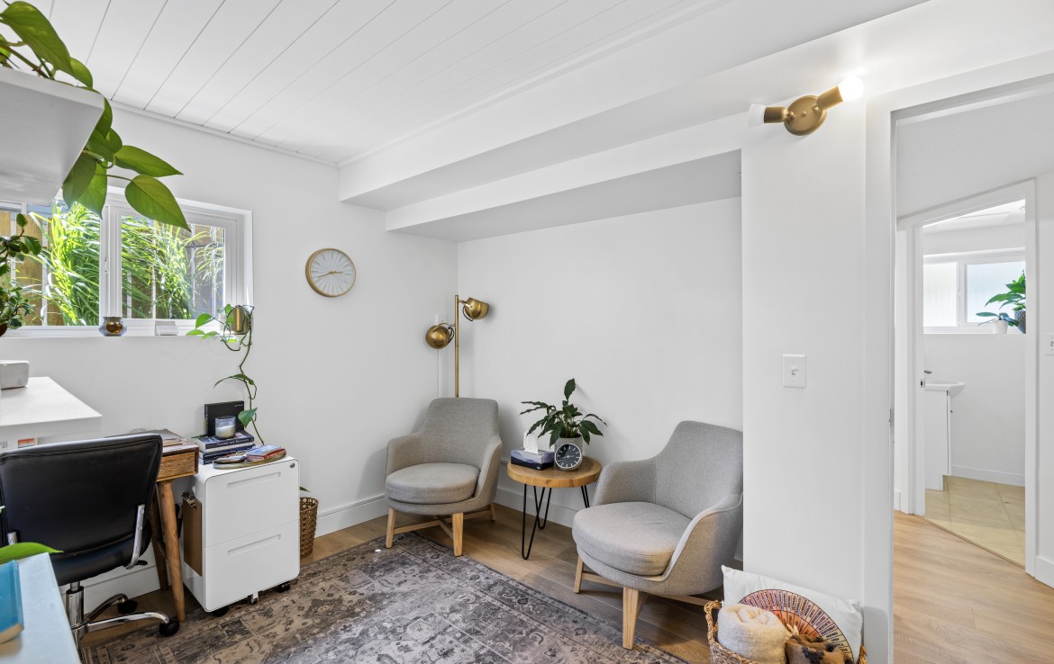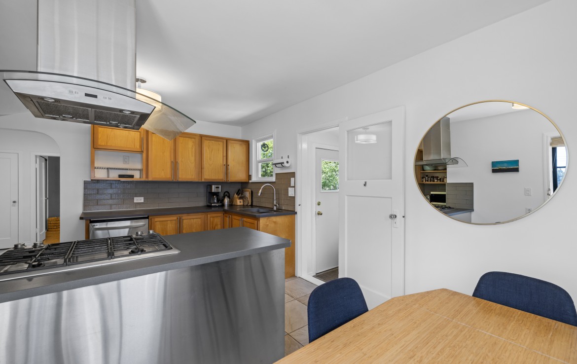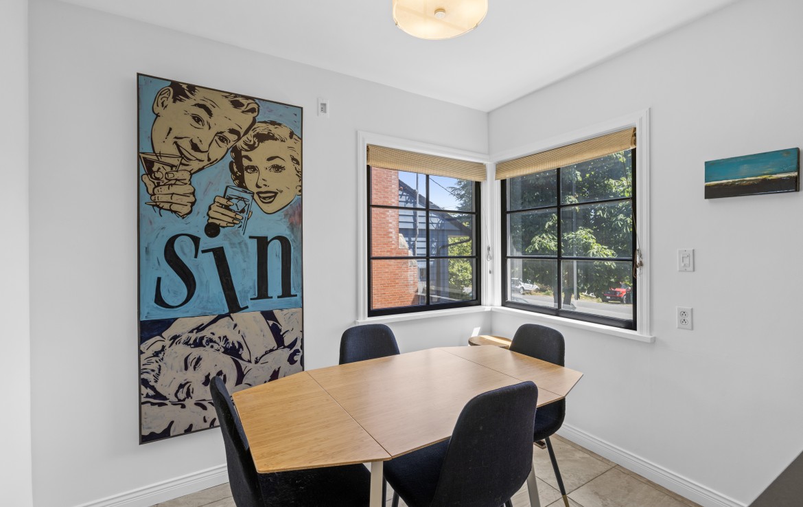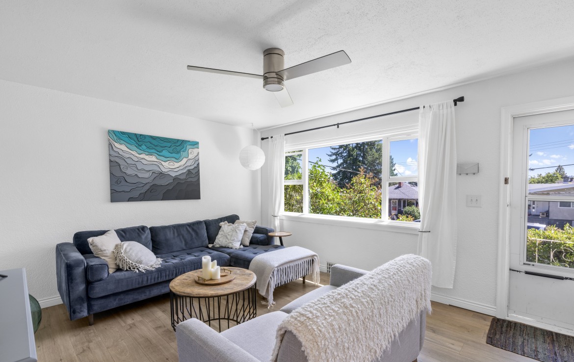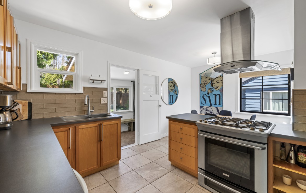 Welcome to this versatile charming home in a convenient location near VIU, shopping, and recreation. The main level offers a spacious living room, a stylish kitchen with stainless steel appliances including a gas stove, and an adjoining dining room. A mudroom off the kitchen provides access to the serene and private back patio and yard – ideal for relaxing or entertaining. Two bedrooms and a four-piece bathroom complete the main floor.