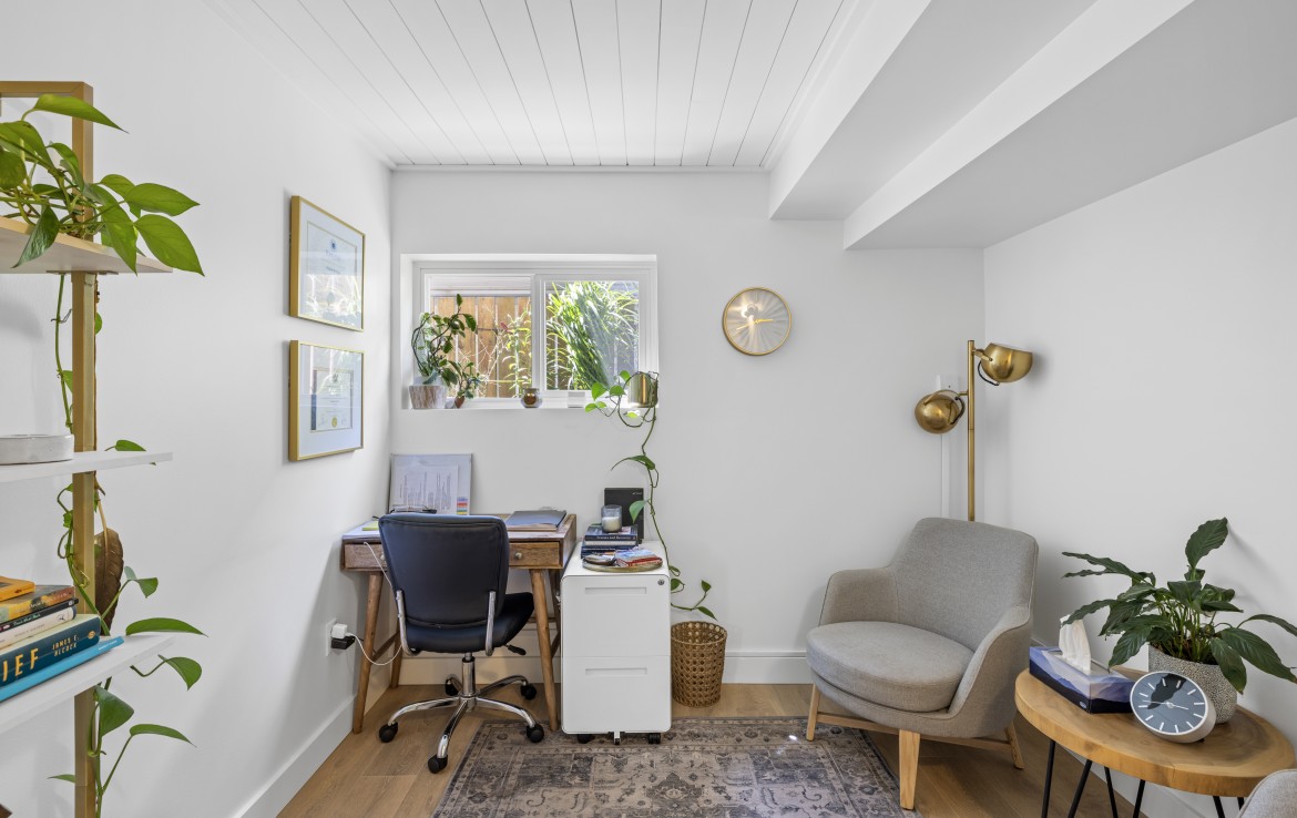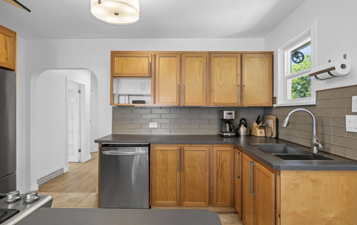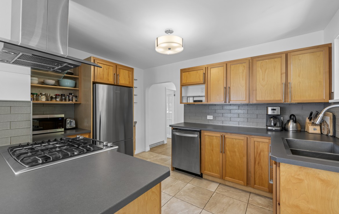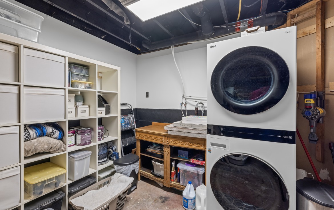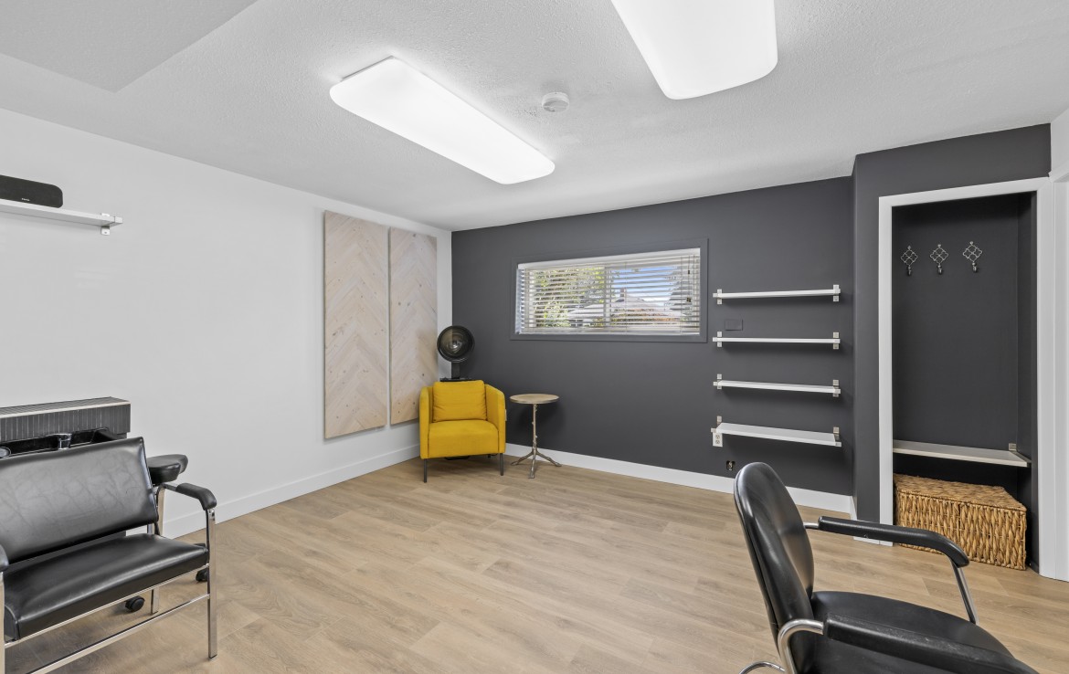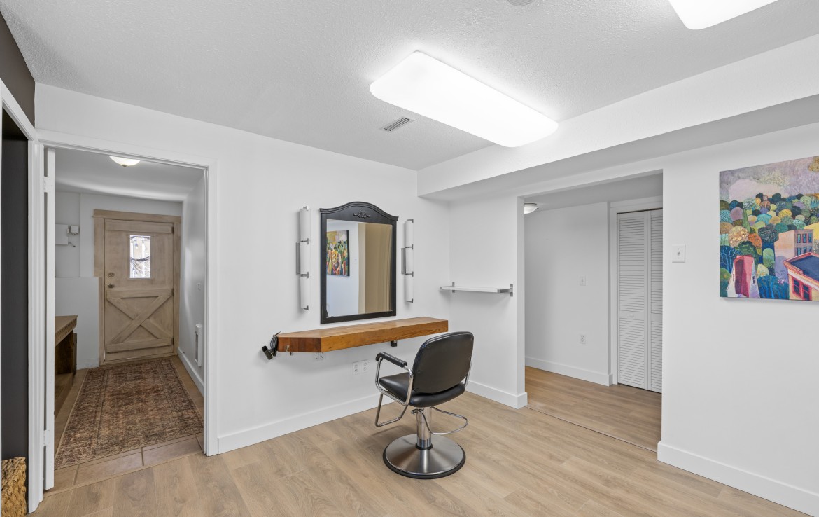 The lower level, with its own exterior access, offers incredible flexibility. Ideal for a home-based business or use as an unauthorized one-bedroom suite, it includes a secondary kitchen, three-piece bathroom, den/bedroom, family room, and laundry area.