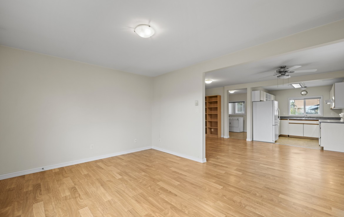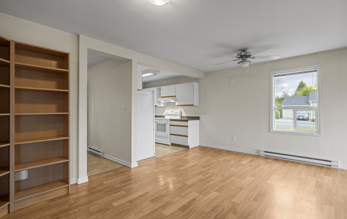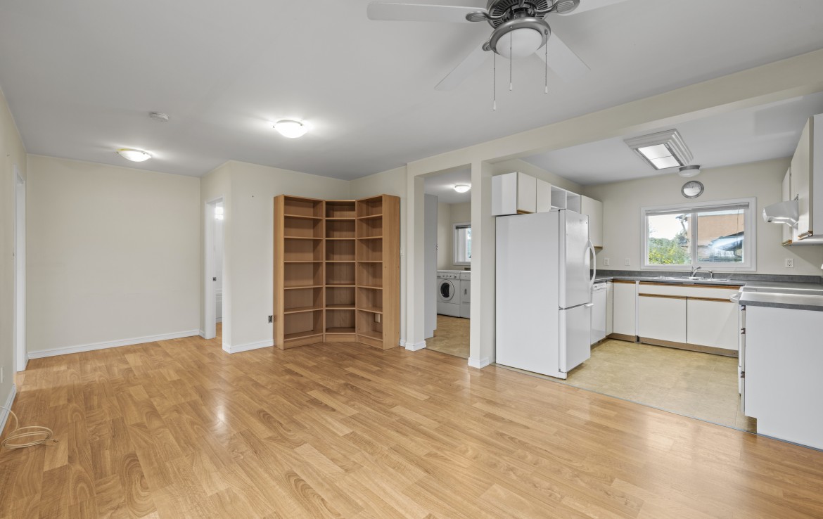 Centrally located rancher situated on a desirable corner lot, offering a functional and easy-care layout. The open-concept living and dining area provides a comfortable space for everyday living and entertaining. The kitchen is equipped with three appliances and ample cabinetry.