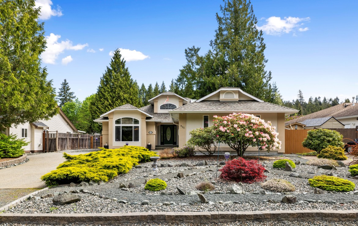 Located in one of Qualicum Beach’s most sought-after neighbourhoods, this custom-built three-bedroom, three-bathroom rancher offers single-level living with comfort, space, and functionality. Lovingly maintained by its original owner, the home features a spacious layout that includes a generous primary bedroom complete with a four-piece ensuite and walk-in closet. The well-designed kitchen boasts stainless steel appliances, a wall oven, cooktop, an island with an eating bar, and a bright breakfast nook.